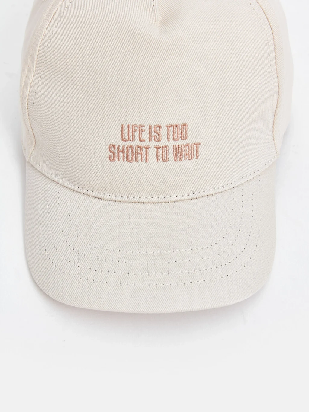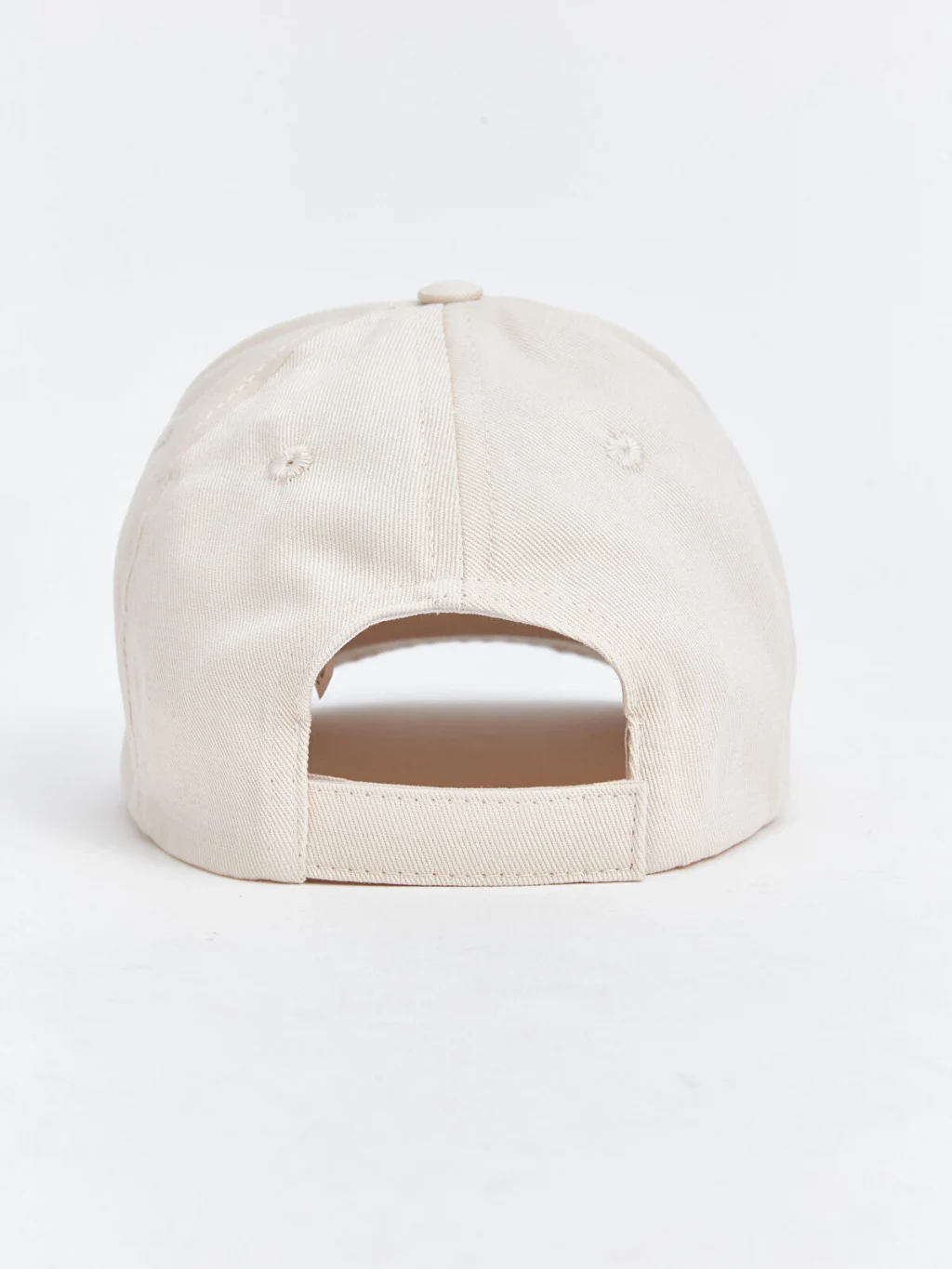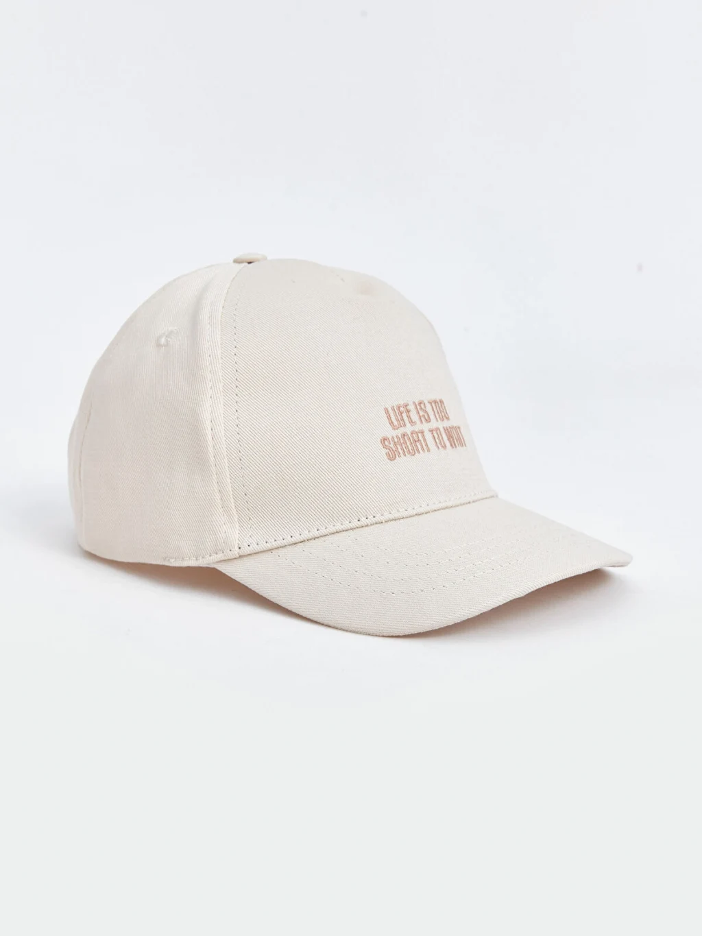 LCW ACCESSORIES Ekru Yazı Nakışlı Kız Çocuk Kep Şapka
