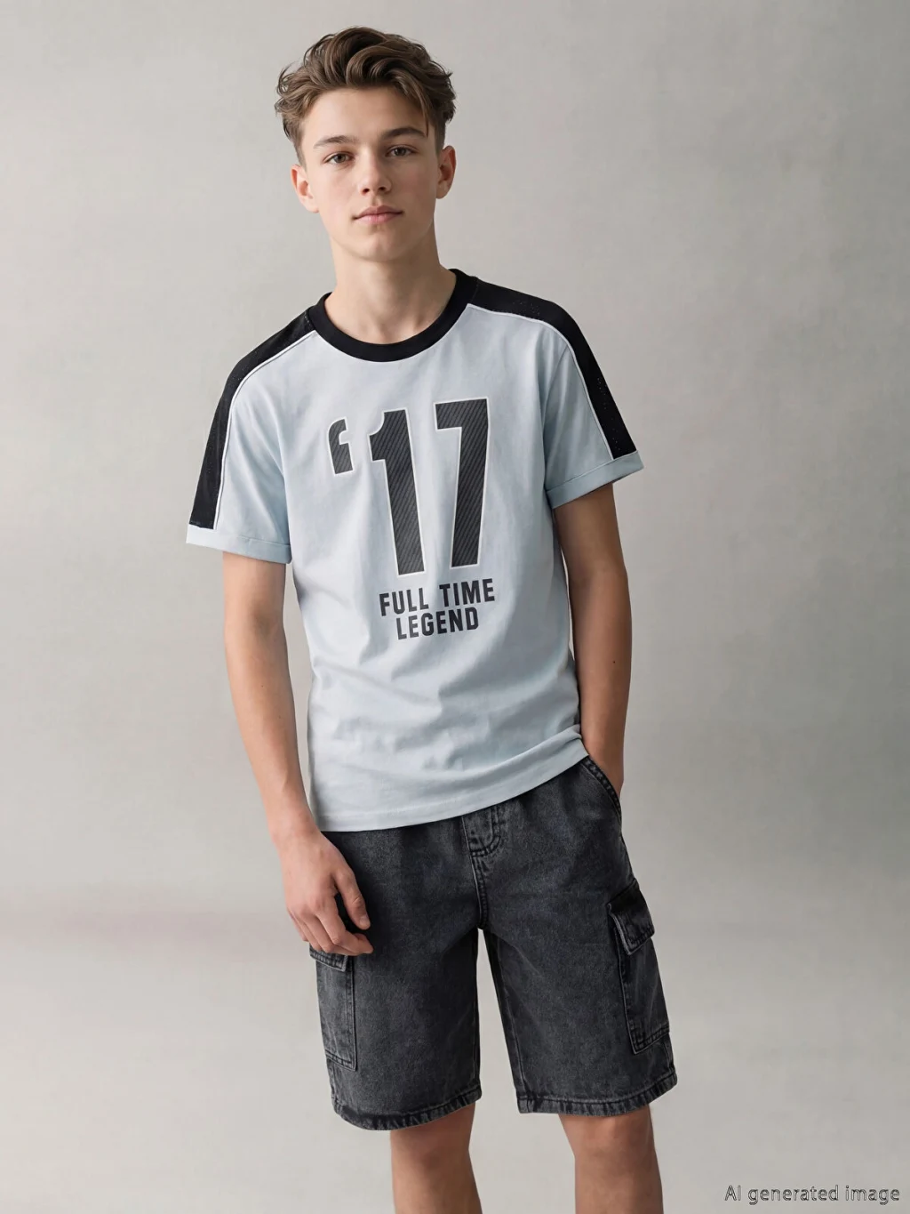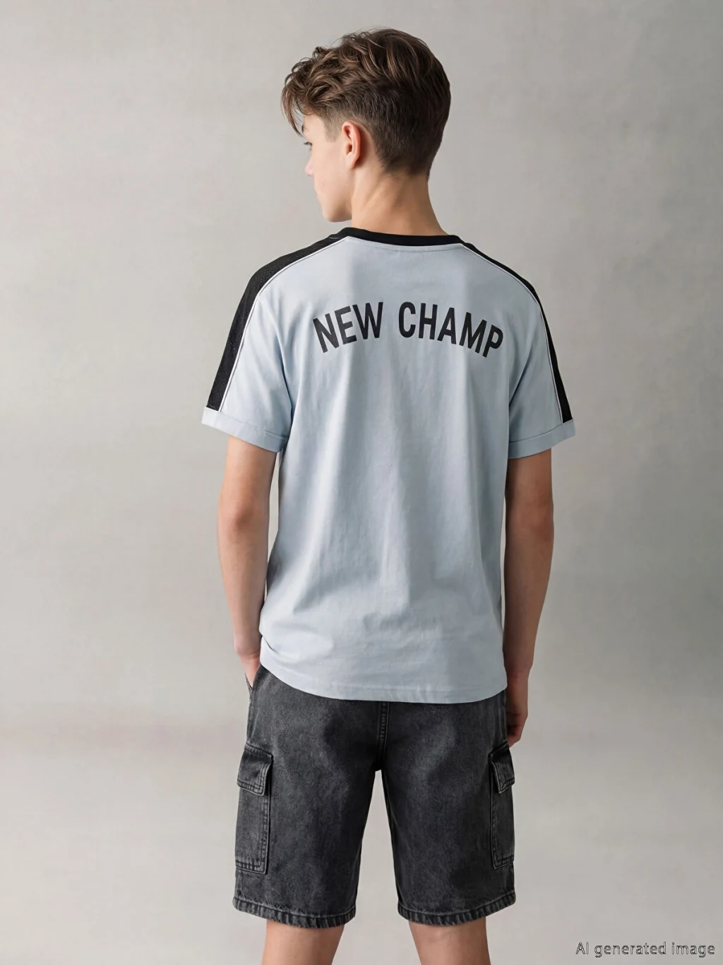 Bisiklet yaka ve kısa kollu erkek çocuk tişört, %100 pamuk kumaştan üretilmiştir. Önü baskılıdır ve omuzları file detaylıdır.