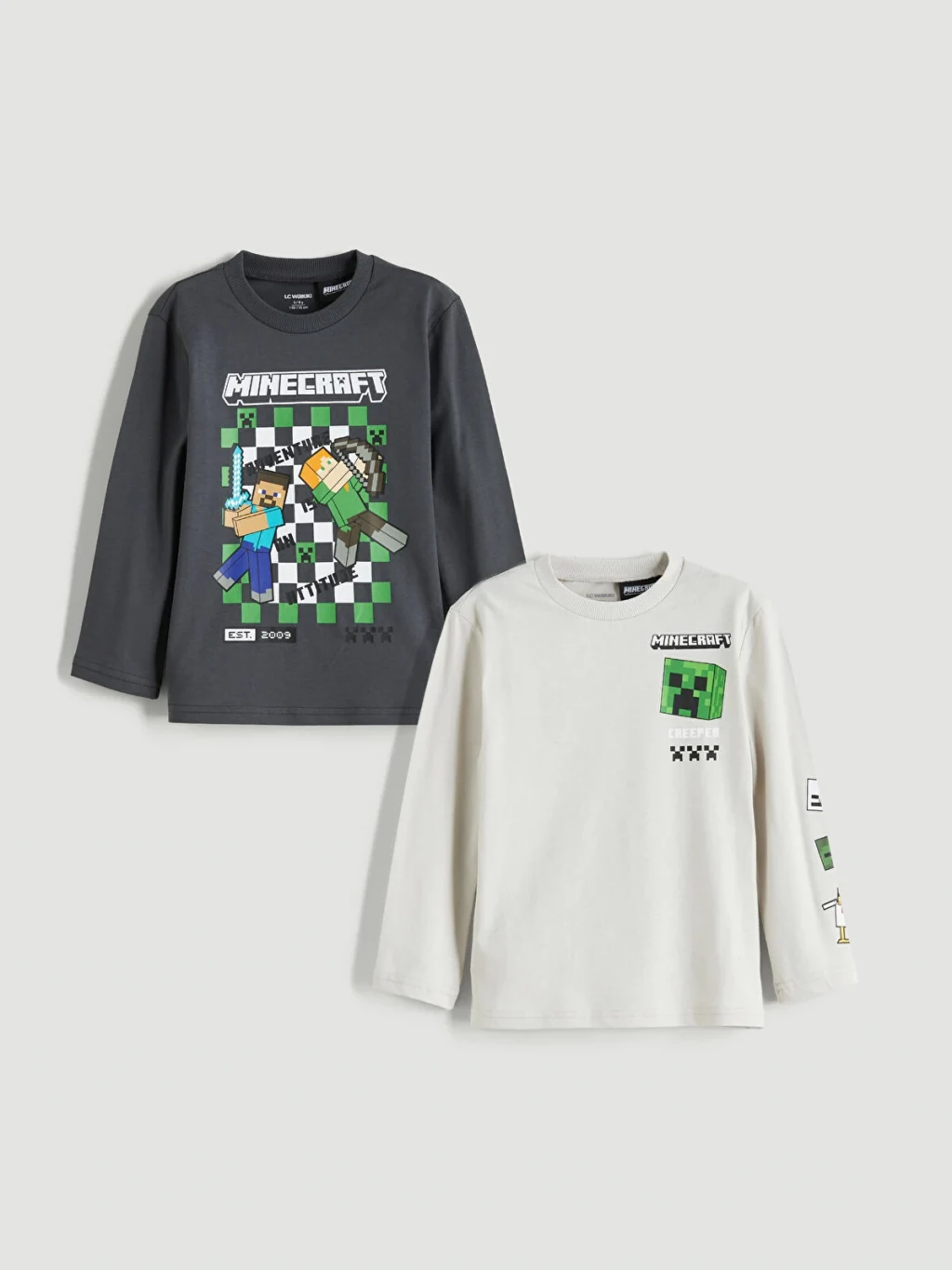 Minecraft lisanslı 2'li erkek çocuk tişört, pamuklu kumaştan üretilmiştir. Uzun kollu ve bisiklet yaka tasarımlıdır.