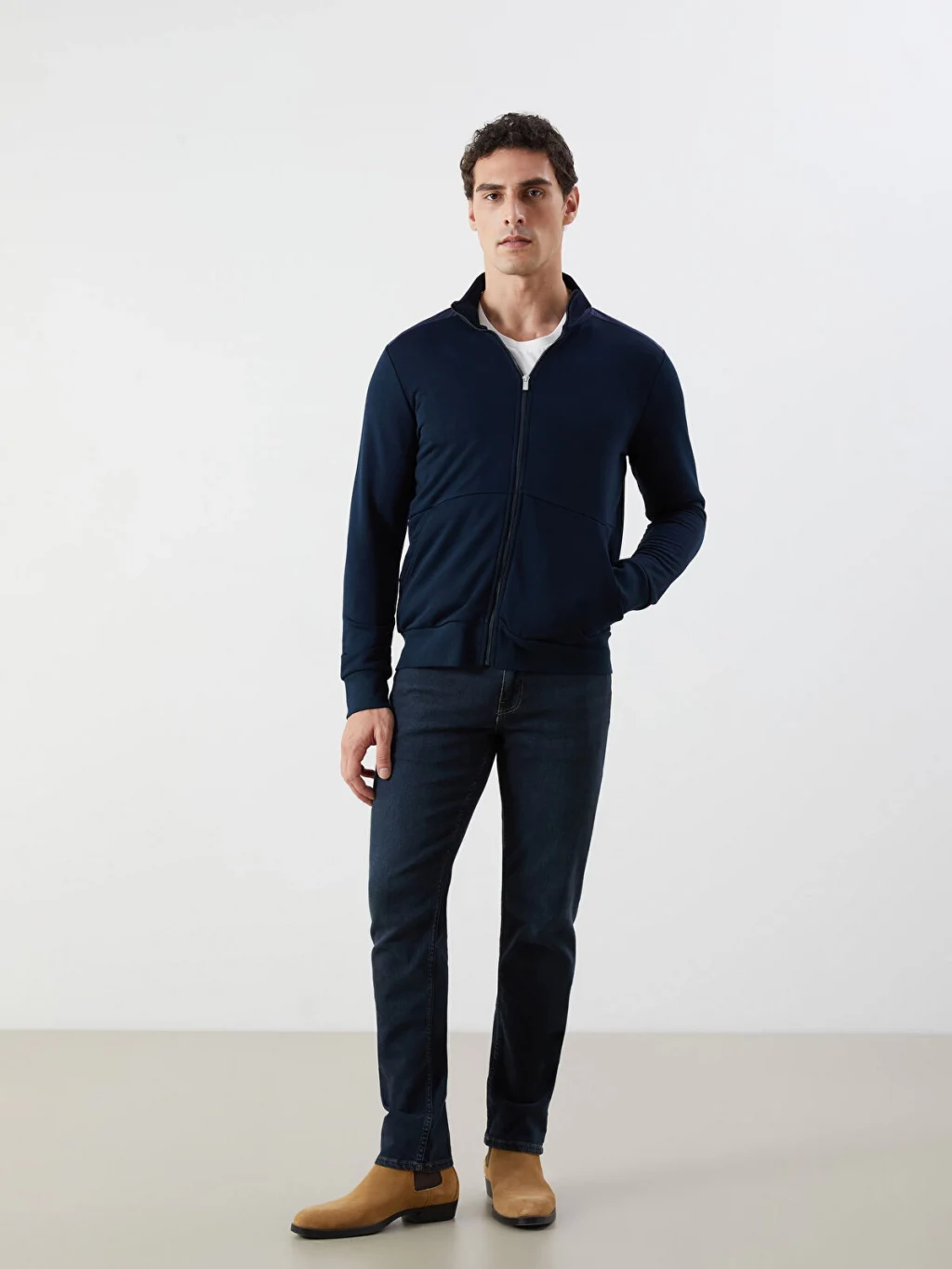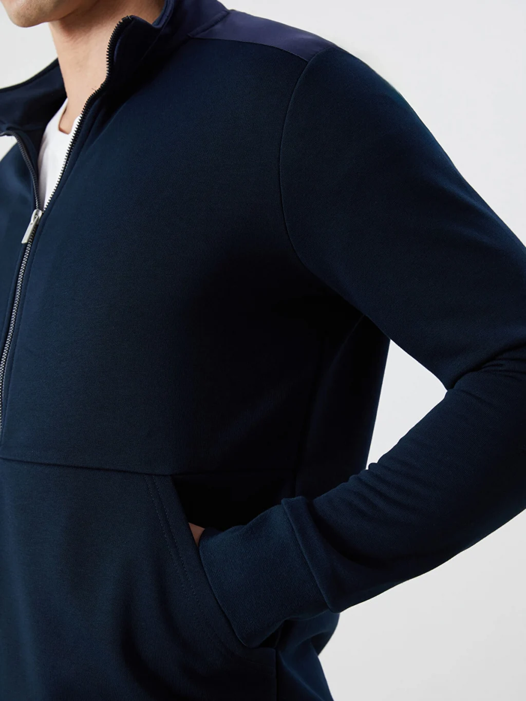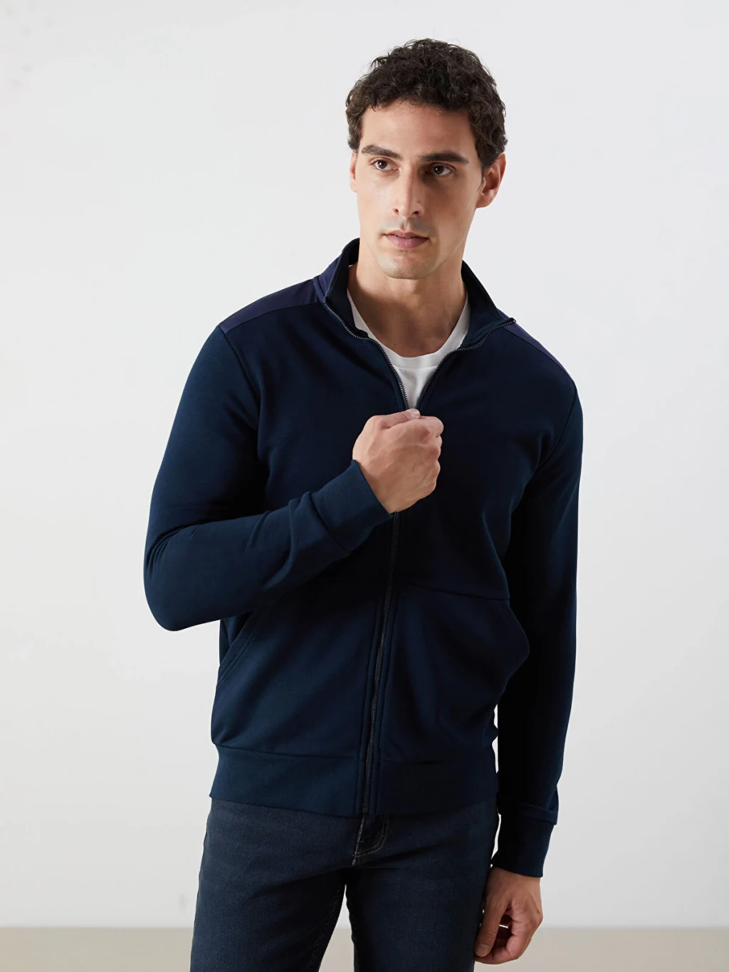 Sweatshirt, kaliteli sweatshirt kumaşından üretilmiş olup, sıcak ve rahat bir deneyim sunar. Dik yaka tasarımı, hem modern bir görünüm sağlar hem de ekstra boyun koruması sunar.
