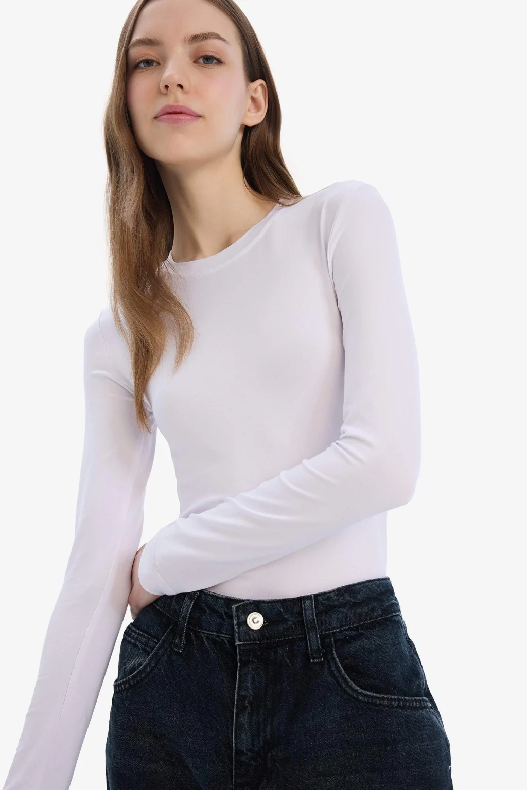 Yetişkin kadınlar için ideal olan bu beyaz uzun kollu tişört, ilkbahar ve yaz mevsimleri için mükemmel bir seçimdir. Bisiklet yaka detayıyla şık bir görünüm sunarken, fitted kalıbıyla da vücuda tam oturur. Gardırobunuzdaki ana çeşit parçalar arasında yer alacak bu örme tişört, tarzınızı yansıtmanıza yardımcı olacaktır.
