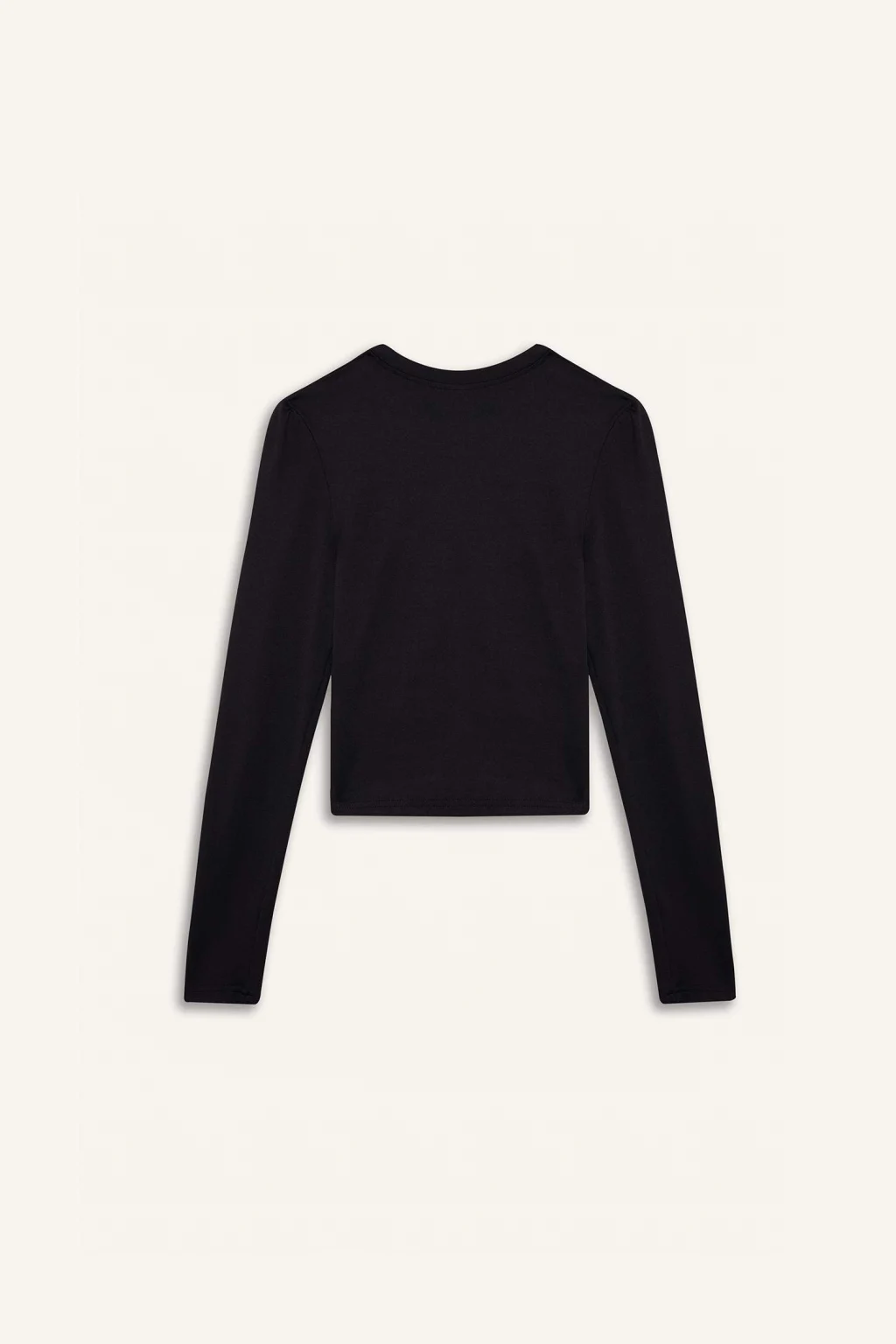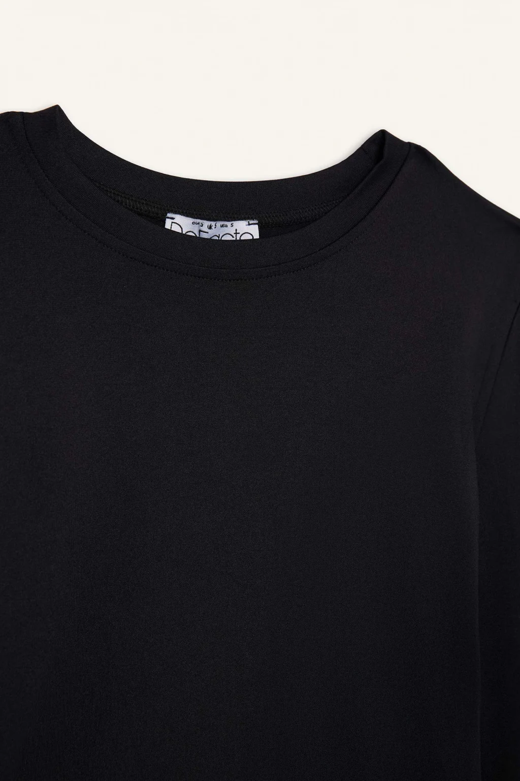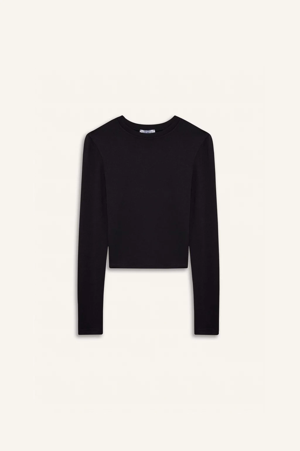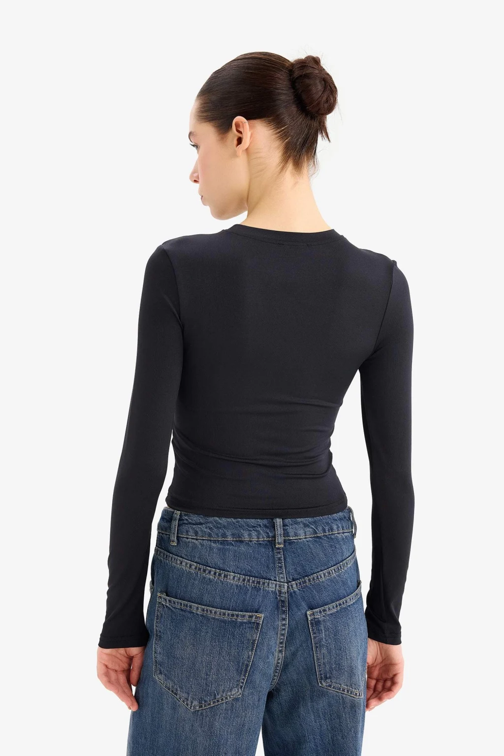 Yetişkin kadınlar için ideal bir seçenek olan Siyah Uzun Kollu Bisiklet Yaka Tişört, ilkbahar/yaz mevsim koşullarında şıklığı ve konforu bir araya getiriyor. Fitted kalıbı sayesinde vücuda tam oturan bu tişört, örme giyim tutkunları için mükemmel bir seçim olacak.