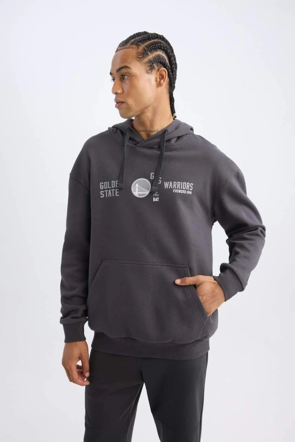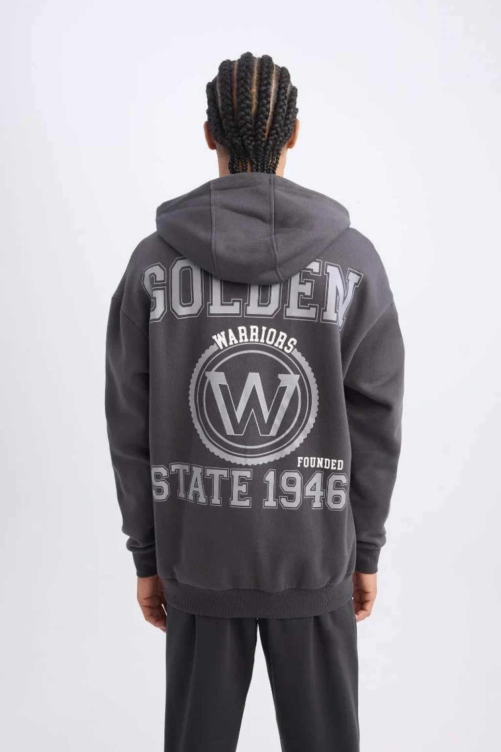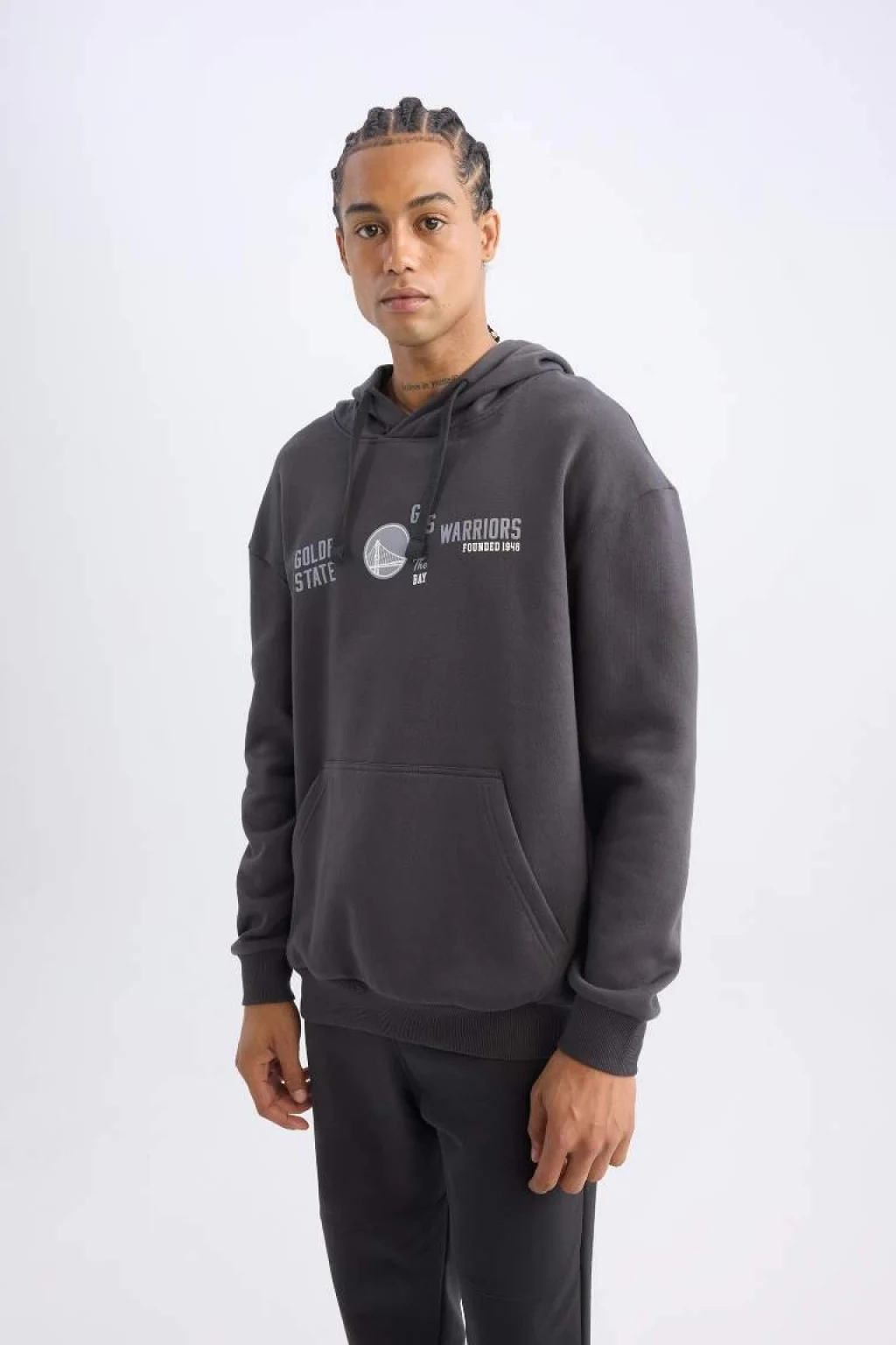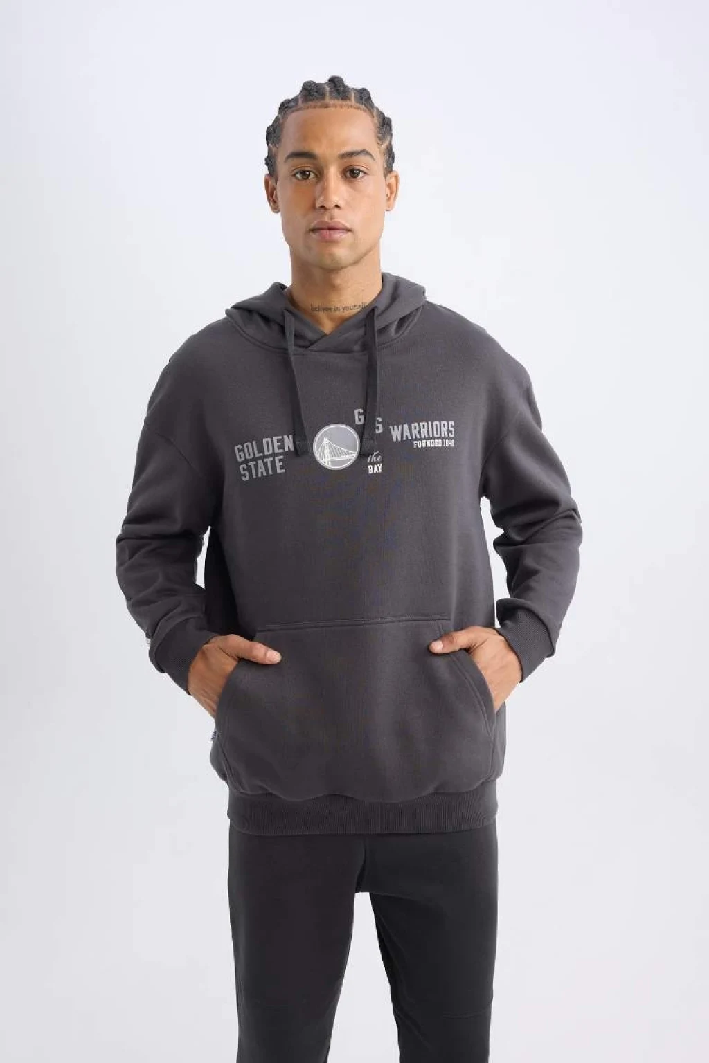 XSIDE Siyah Baskılı Oversize Kadın Kalın Hoodie
