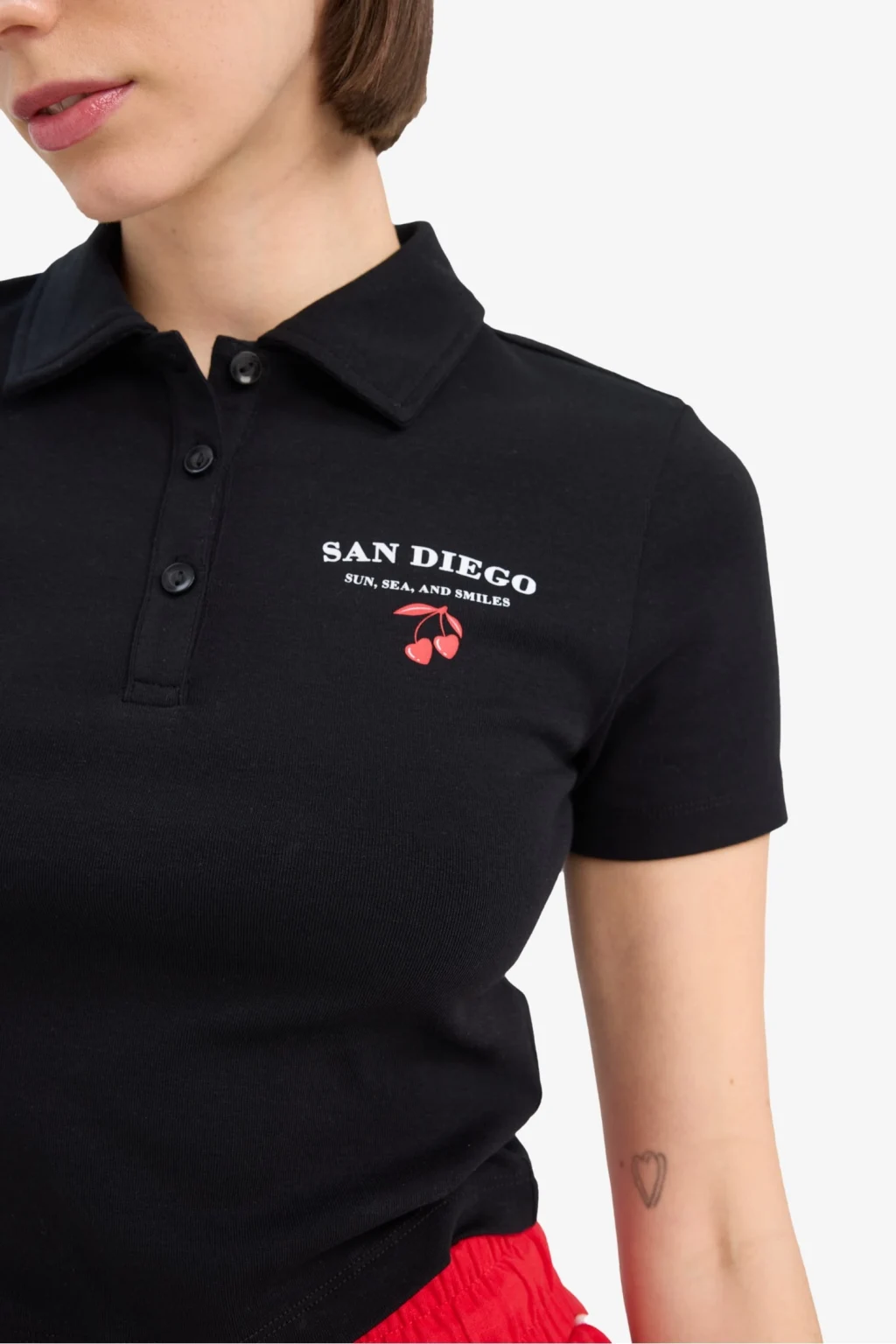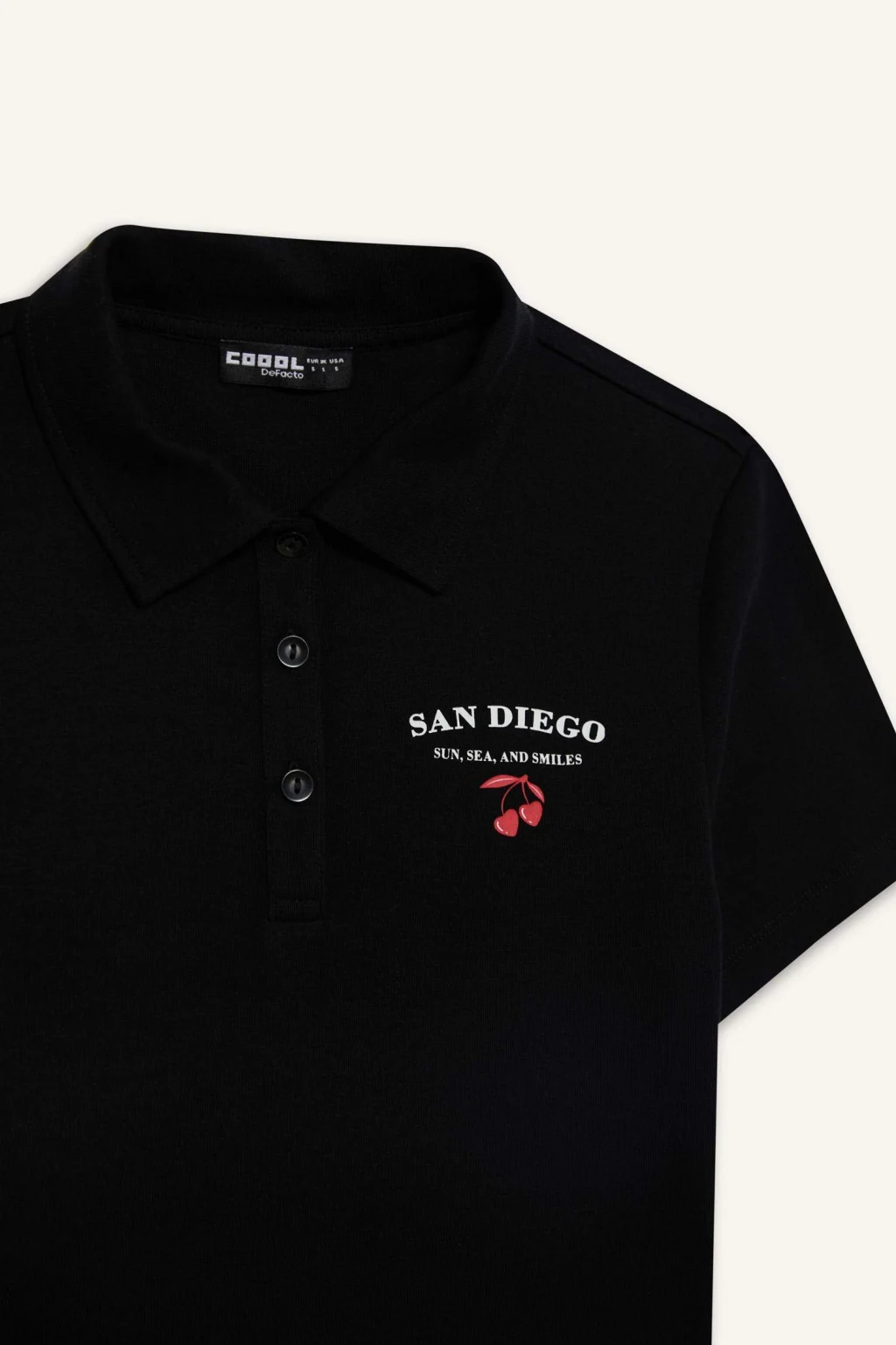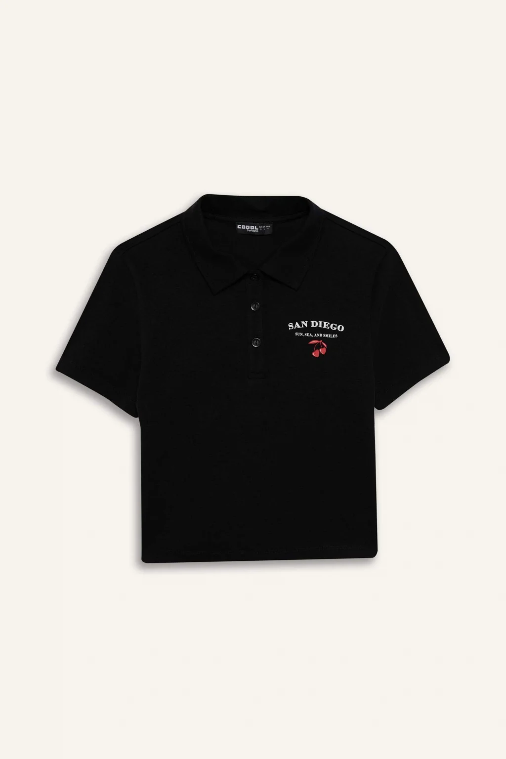 Bayanlar için Coool markasının siyah slogan desenli polo yaka kısa kollu tişörtü, ribana kumaştan üretilmiştir. Fitted kalıbıyla yetişkin örme giyim grubuna hitap eden bu temel parça, ilkbahar/yaz mevsim koşullarında şıklığı ve rahatlığı bir arada sunar.