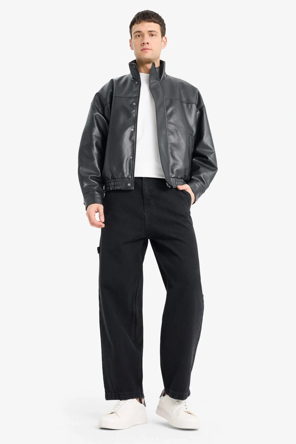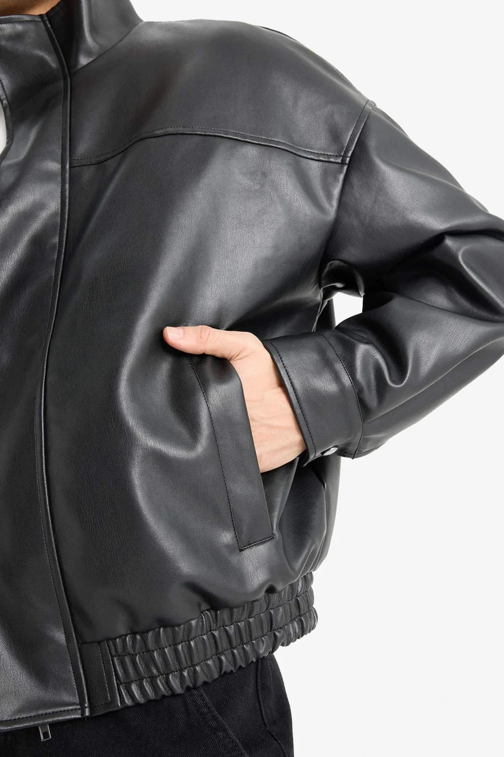 Su itici özelliğe sahip oversize geniş kalıp dik yaka suni deri mont, hem şık hem de fonksiyonel bir dış giyim parçasıdır. Modern tasarımı ve dayanıklı yapısıyla serin ve yağışlı havalarda stilinizi tamamlar.
