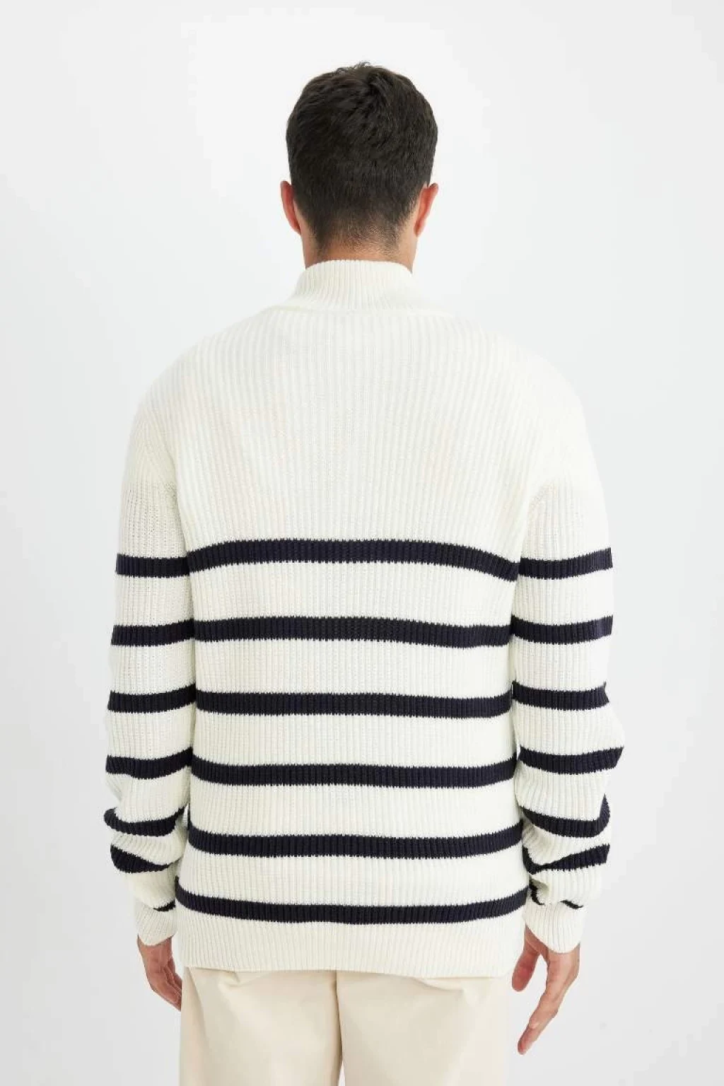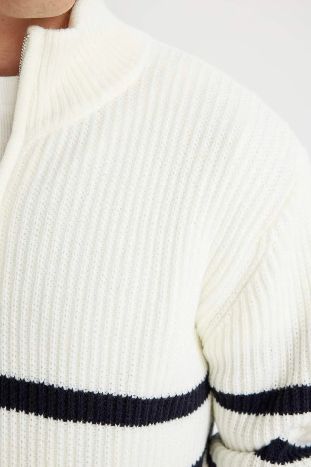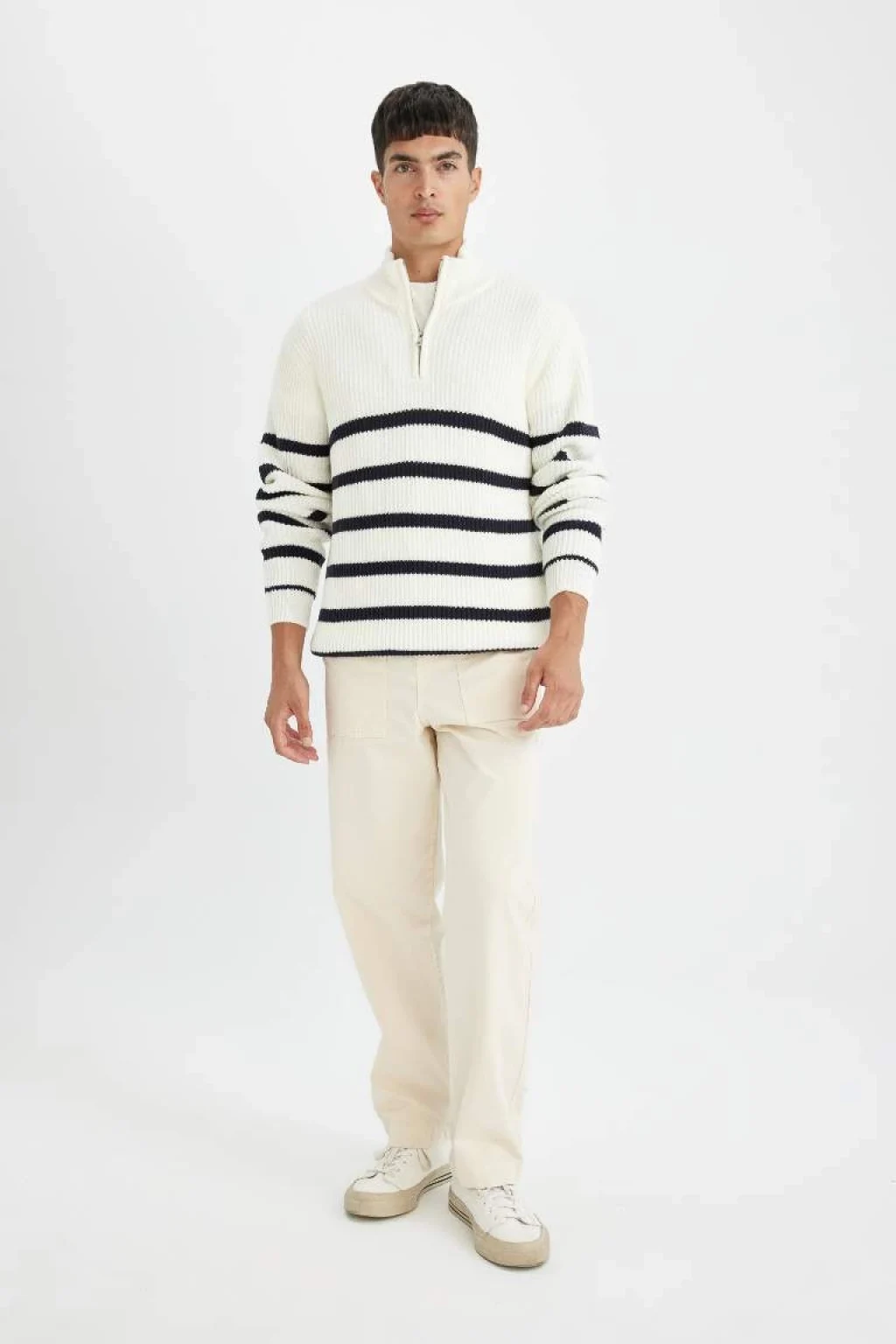 Şık ve konforlu Standart Fit Dik Yaka Yarım Fermuarlı Çizgili Triko Kazak ile tarzınızı tamamlayın. Yüksek kaliteli malzemelerle üretilmiş olan bu kazak, şıklığı ve rahatlığı bir arada sunuyor. Gardırobunuzun vazgeçilmezi olmaya aday!