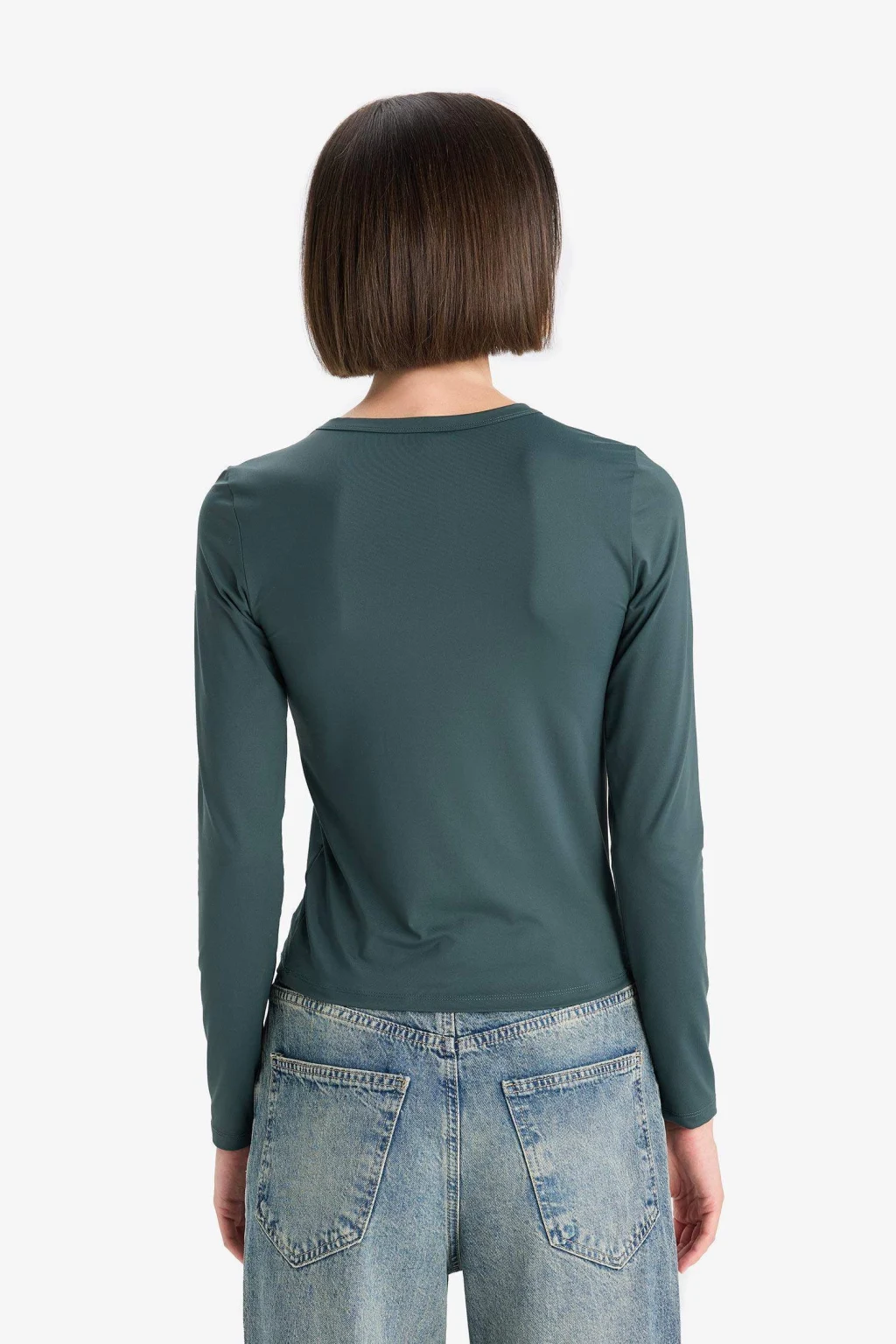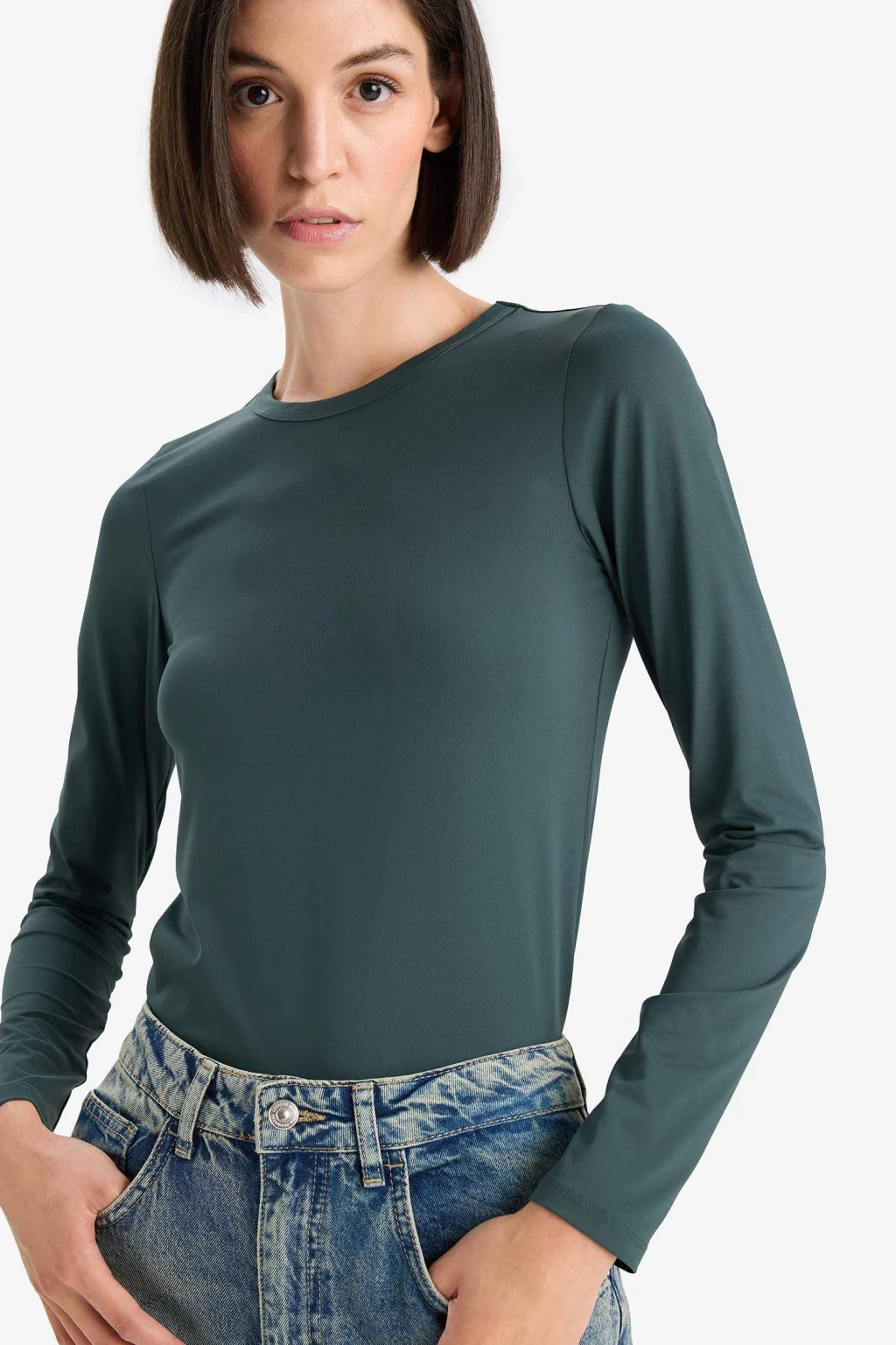 Slim fit dar kesimi ve bisiklet yaka tasarımıyla basic düz uzun kollu tişört, sade ve şık bir görünüm sunar. Esnek kumaşıyla rahat ve çok yönlü bir kullanım sağlar.