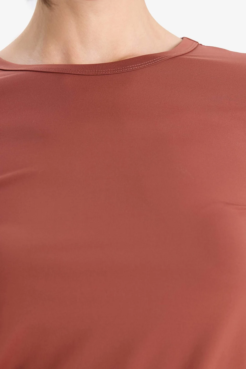 Defacto D3756 Bordo Slim Fit Dar Kesim Bisiklet Yaka Basic Düz Uzun Kollu Tişört