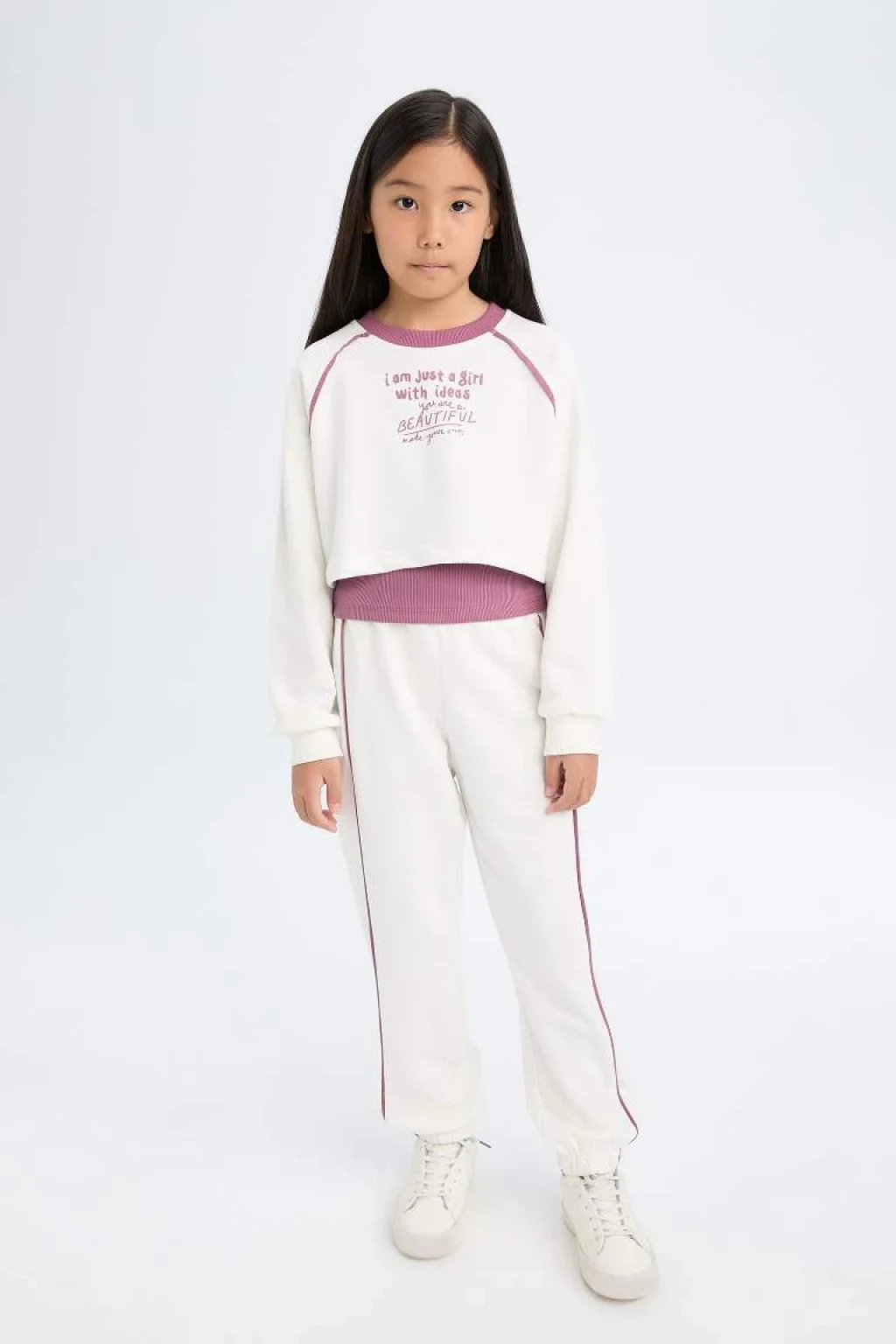 Kız Çocuk Baskılı Bisiklet Yaka Crop Sweatshirt, şıklığı ve rahatlığı bir arada sunar. Atlet, beli lastikli jogger eşofman altı ile kombinlenerek 3'lü takım oluşturur. Kaliteli kumaşı ve modern tasarımıyla her zaman tercih edilen bir seçenektir.