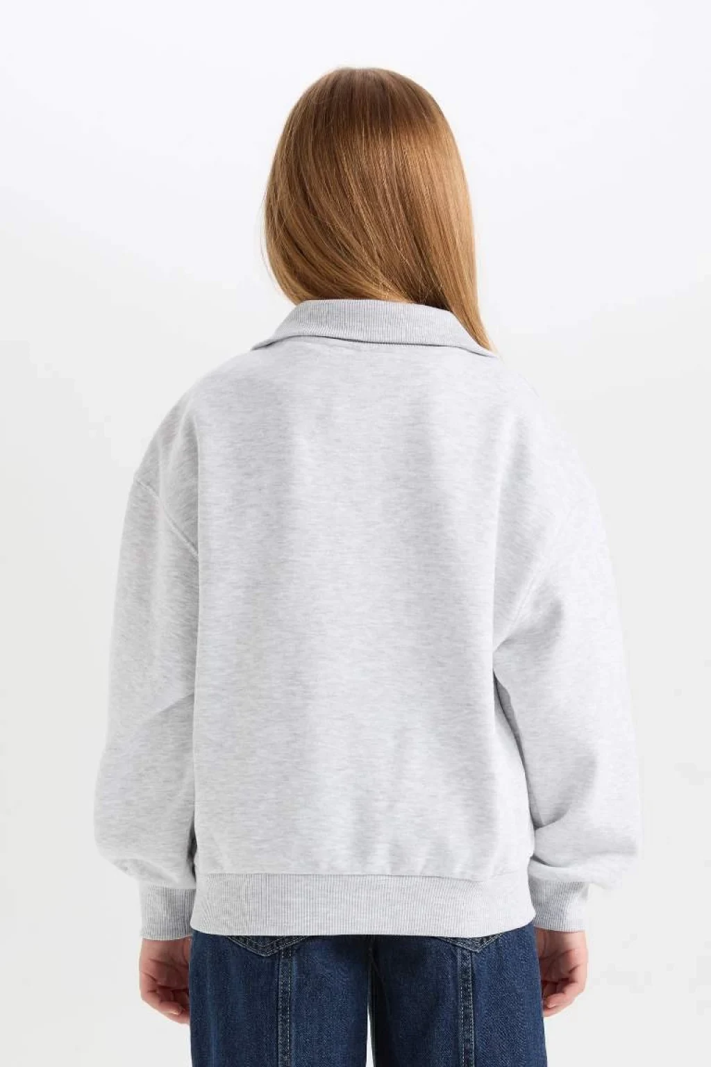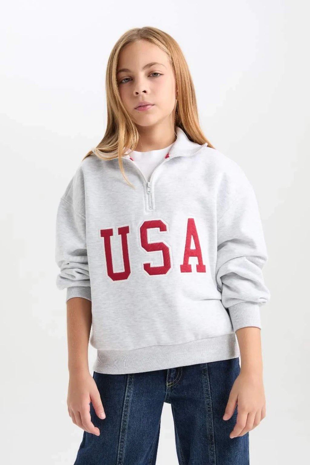 D4273 Yarım Fermuarlı Slogan Baskılı Sweatshirt