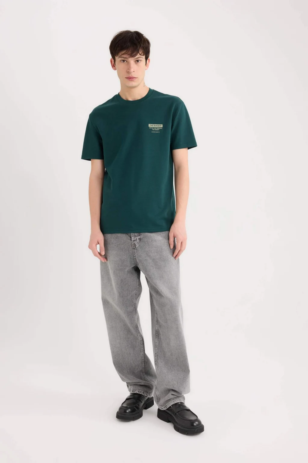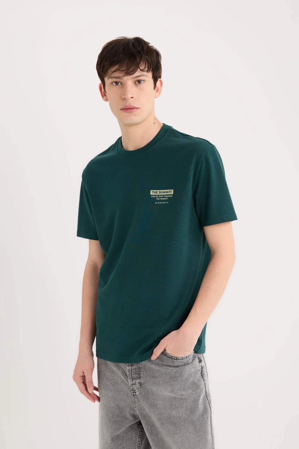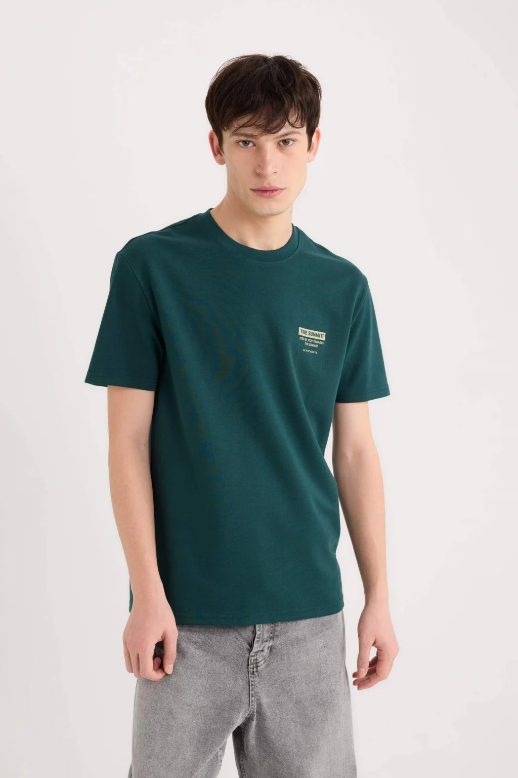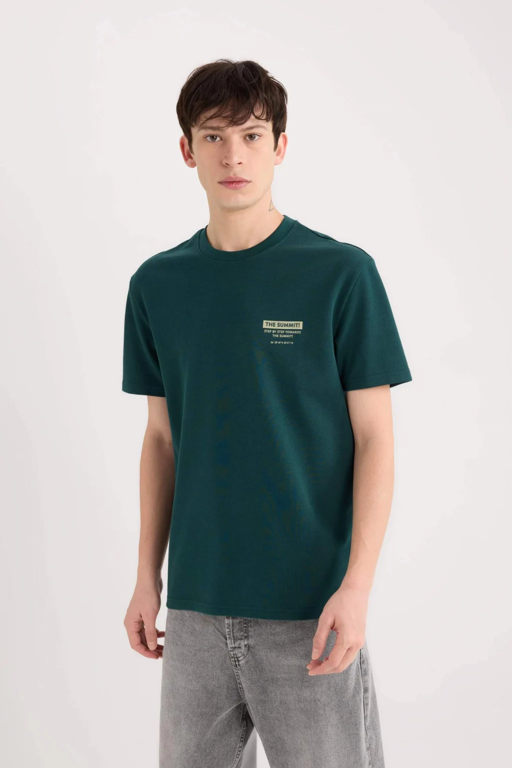Regular Fit Bisiklet Yaka Baskılı Kısa Kollu Ağır Kumaş Tişört, klasik kesimi ve şık baskısıyla rahat bir şıklık sunar. Ağır kumaşı, dayanıklılık ve uzun ömürlü kullanım sağlar. Günlük kombinler için ideal bir seçenek, hem rahat hem de şık bir görünüm sunar.