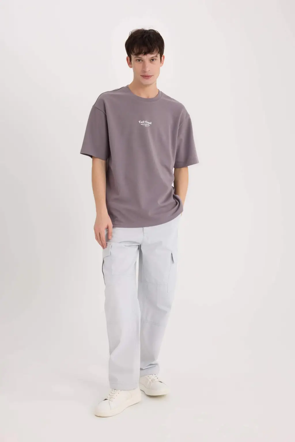 Defacto G3675AXKH260 Haki Loose Fit Polo Yaka Baskılı Uzun Kollu Tişört