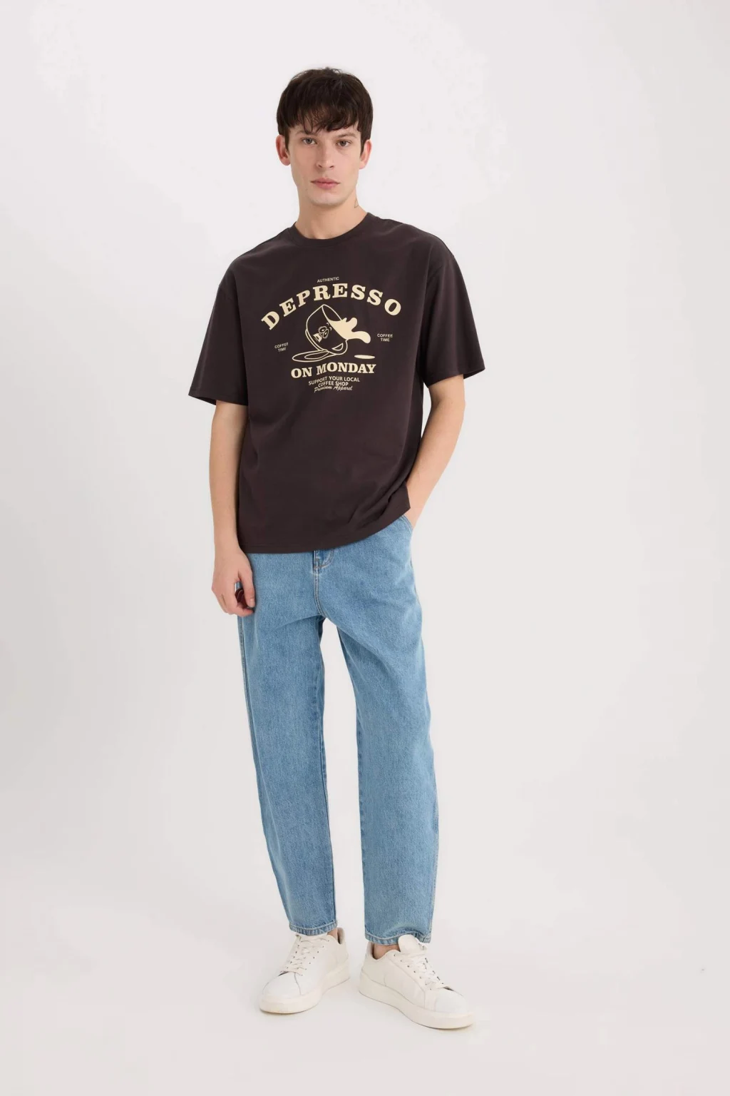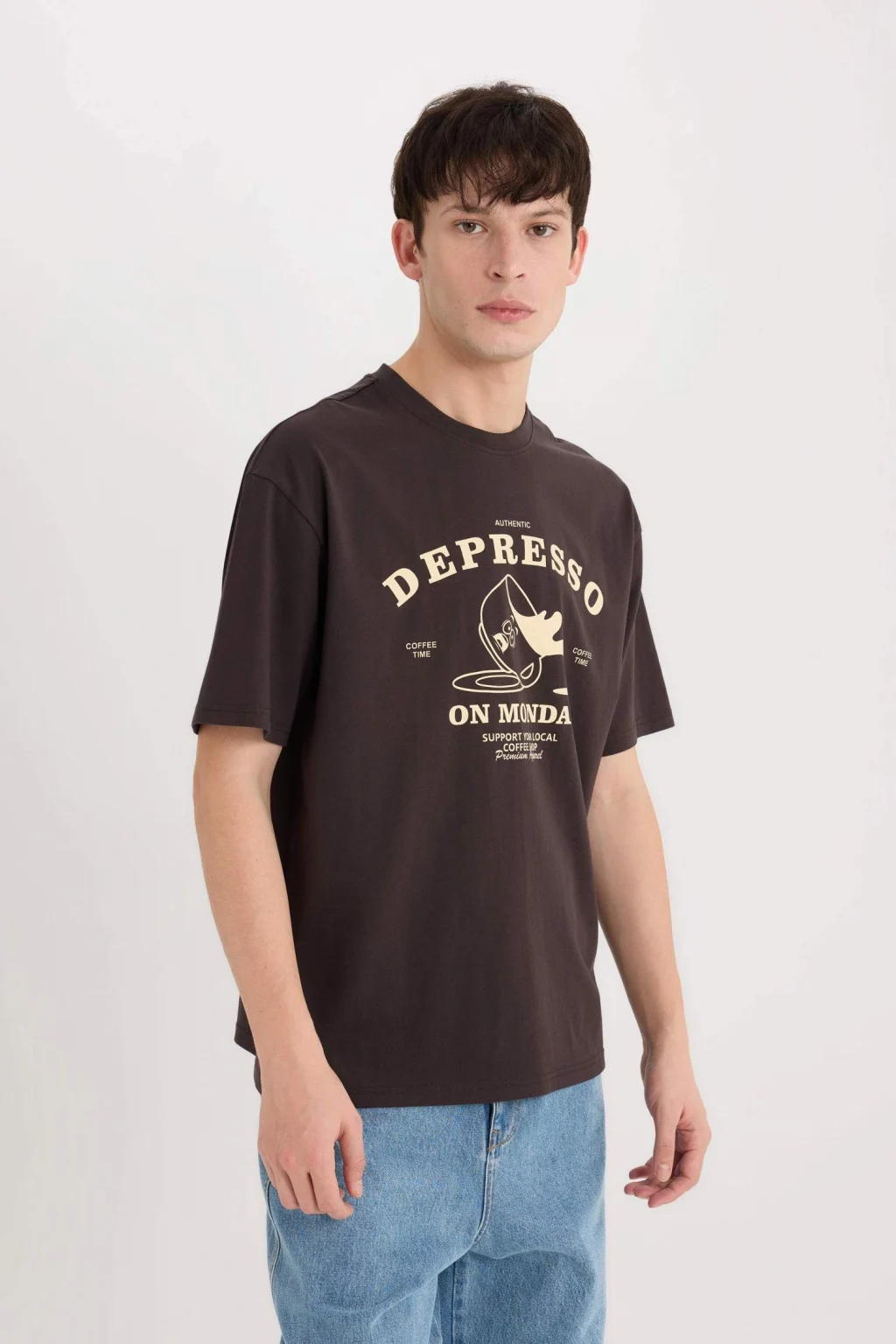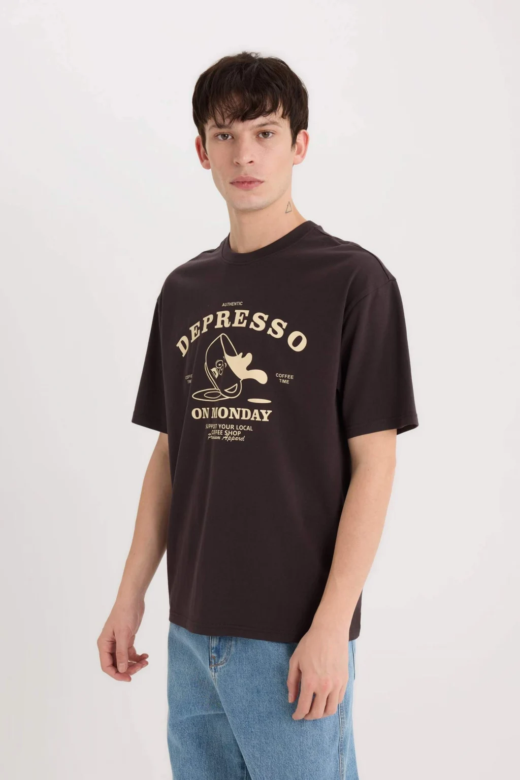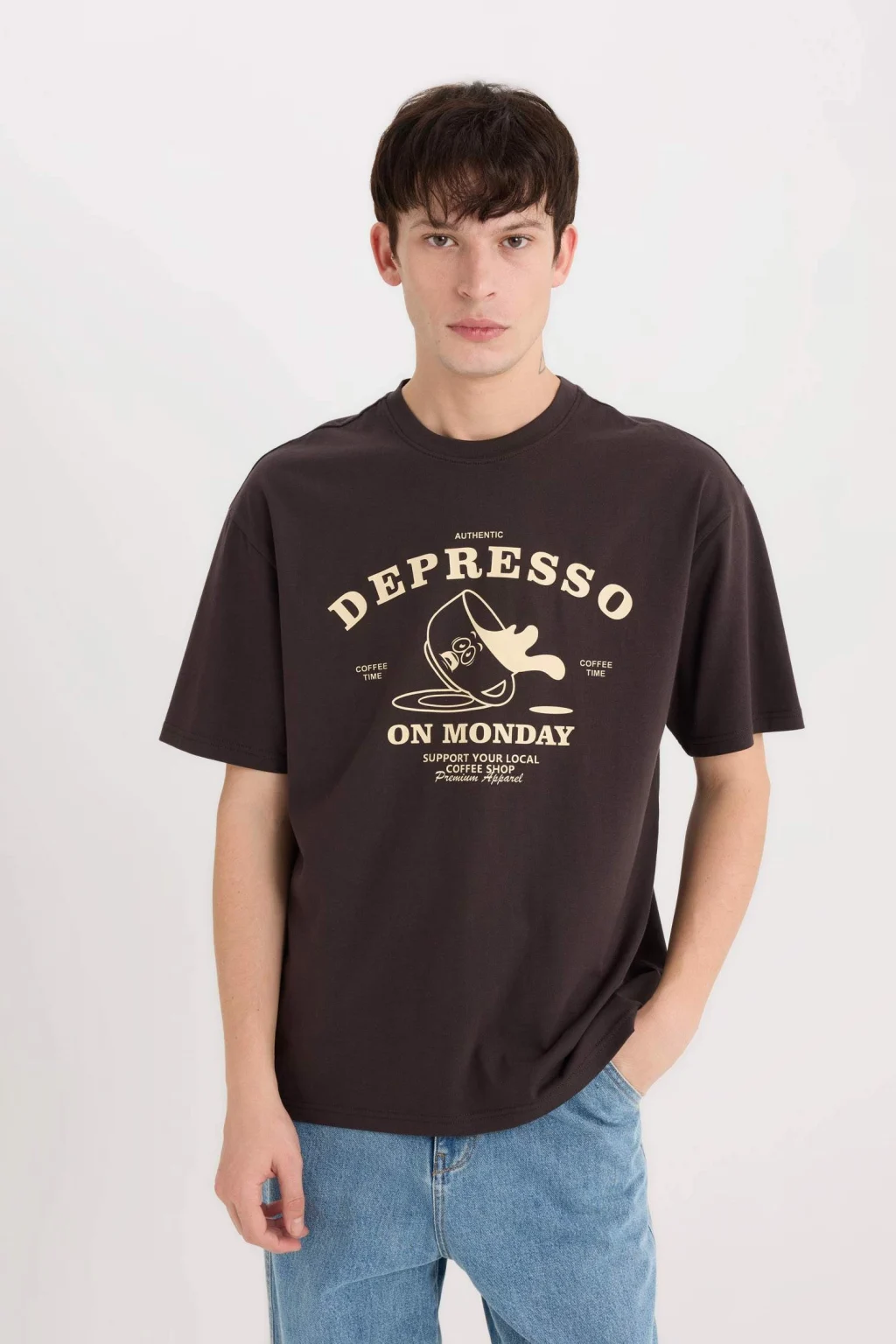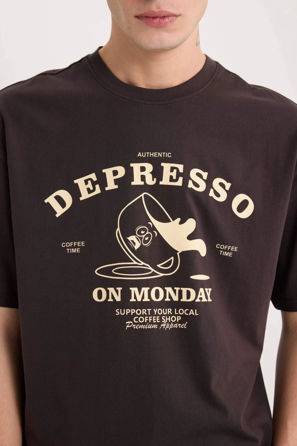 Yetişkin erkekler için özel olarak tasarlanmış Kahve renkli örme tişört. Kısa kollu ve baskılı desen temalı bu tişört, yemek temalı deseniyle dikkat çekiyor. Boxy fit kalıbıyla rahat ve şık bir görünüm sunuyor. Bisiklet yaka detayıyla da tarzınızı tamamlıyor. İlkbahar/Yaz sezonunda tercih edebileceğiniz bir parça.
