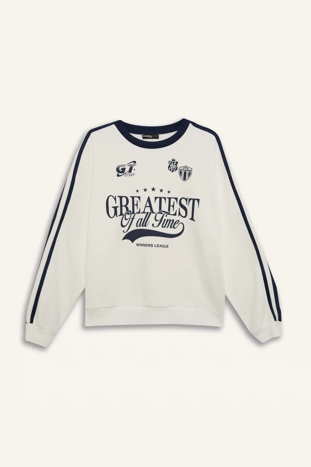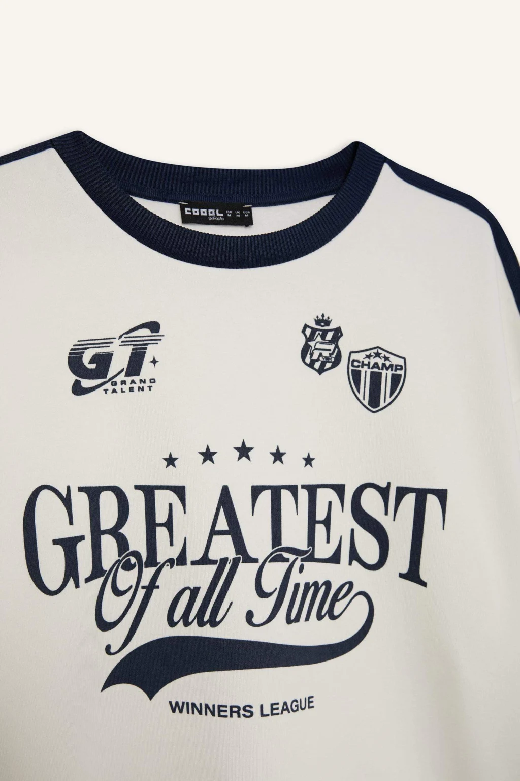 Coool markasına ait beyaz oversize geniş kalıplı baskılı sweatshirt, spor temalı deseni ve kalın kumaşıyla öne çıkıyor. Sürdürülebilir materyalden üretilen bu sweatshirt, örme giyim seven yetişkin kadınların sonbahar/kış gardıroplarına şıklık katmaya hazır. Bisiklet yaka detayıyla da dikkat çekiyor.