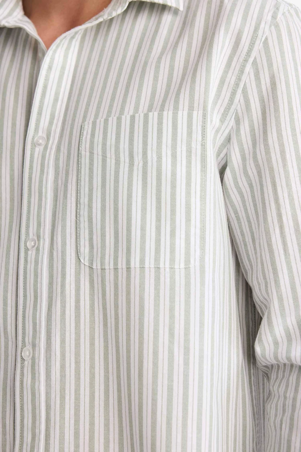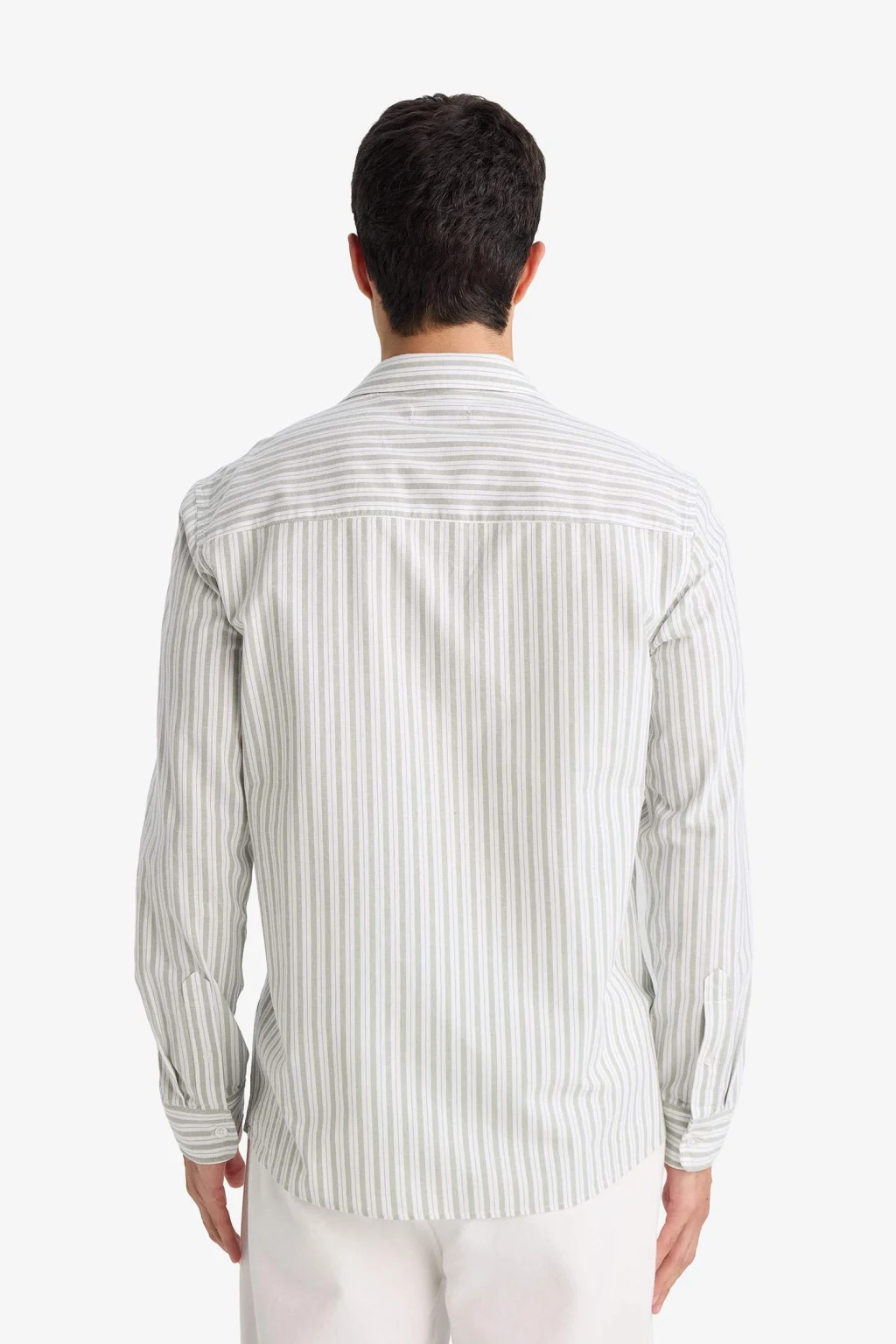 Regular Fit Polo Yaka Çizgili Oxford Uzun Kollu Gömlek, dayanıklı ve nefes alabilir oxford kumaşıyla gün boyu konfor sunar. Regular fit kesimi rahat bir kullanım sağlarken, çizgili deseni ve polo yaka detayı gömleğe klasik ve şık bir görünüm kazandırır. Günlük ve smart-casual kombinler için ideal bir parçadır.