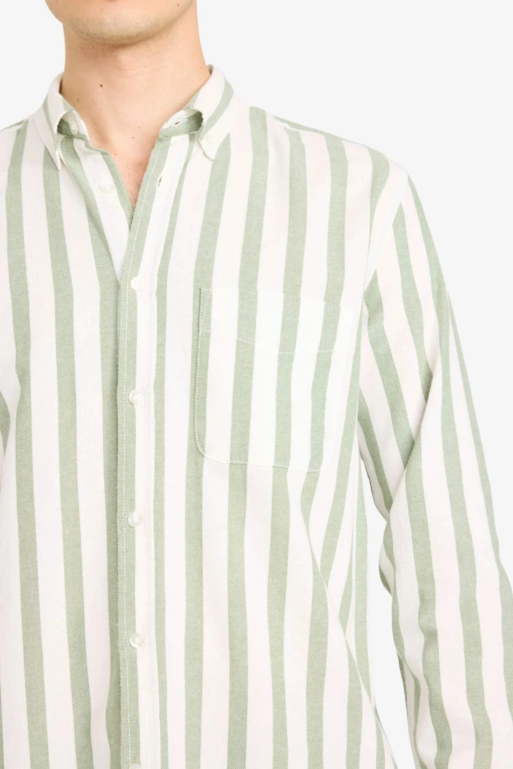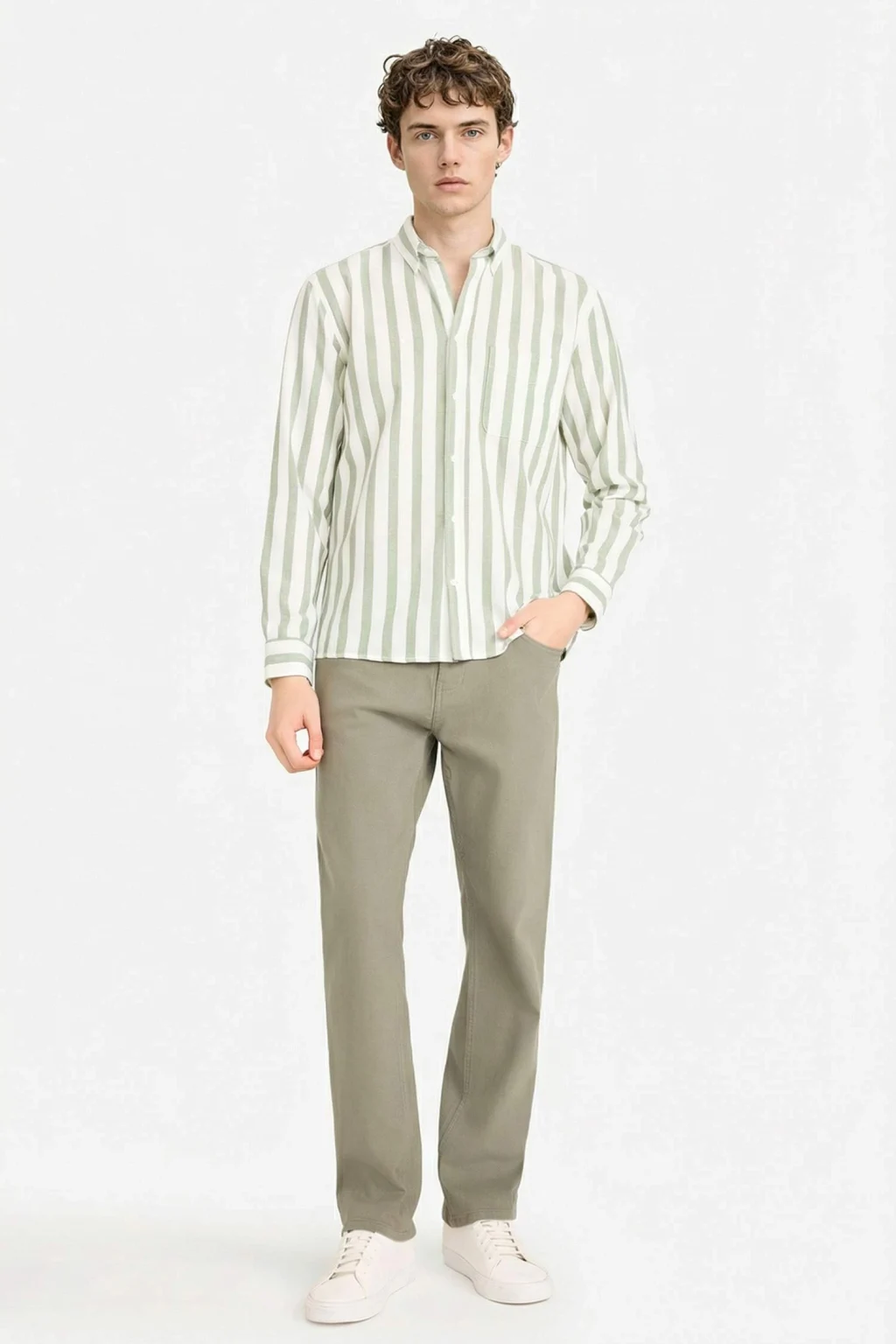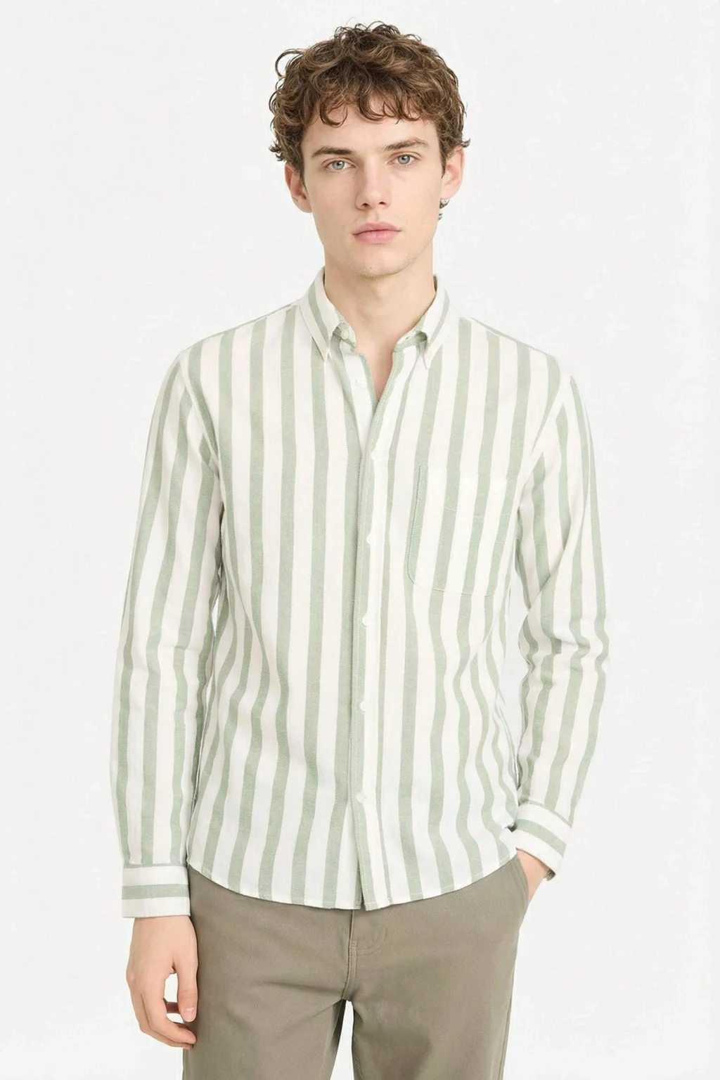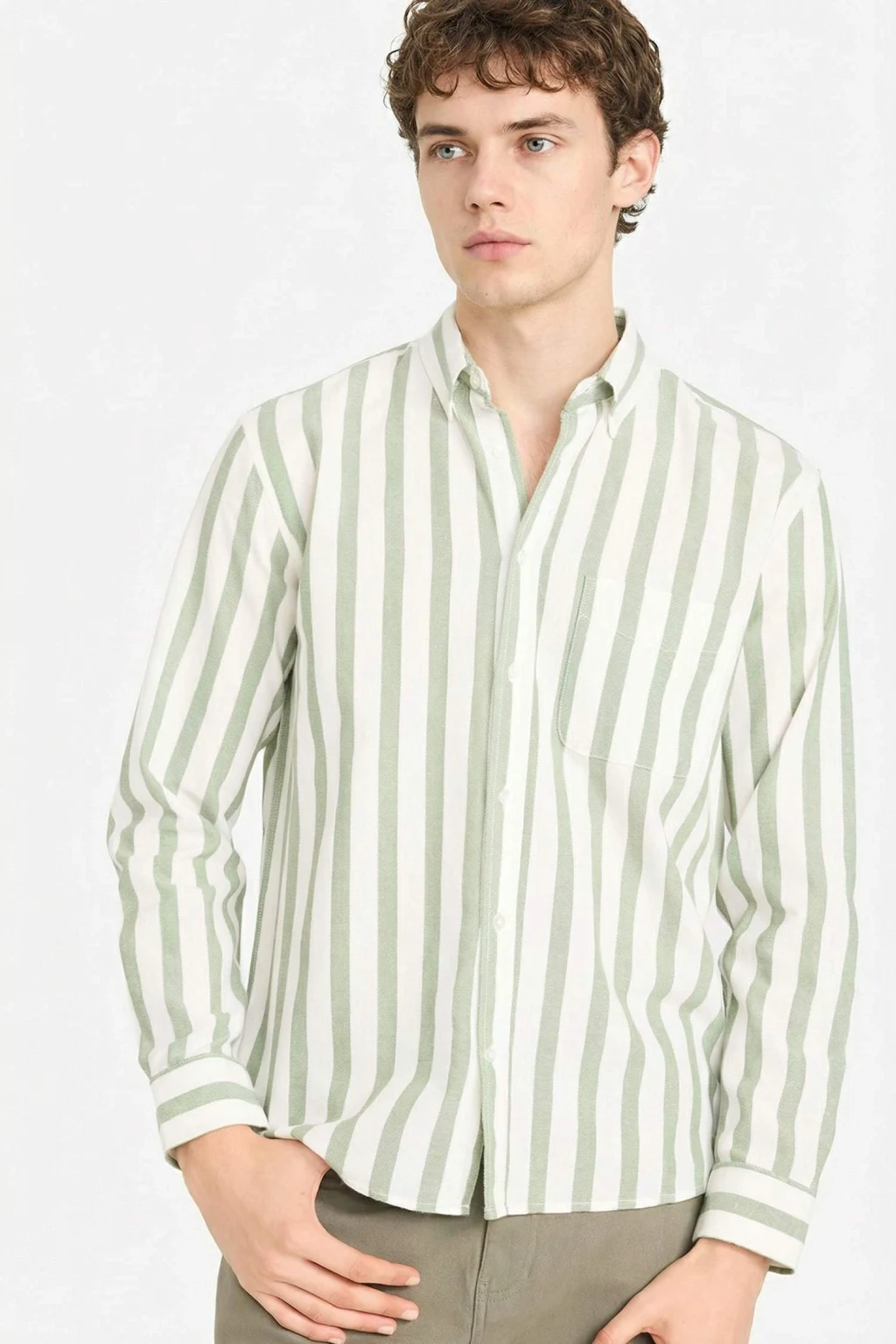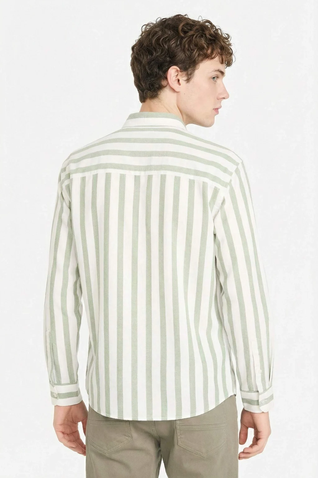 Defacto D6114AXGN460 Yeşil %100 Pamuk Çizgili Gömlek