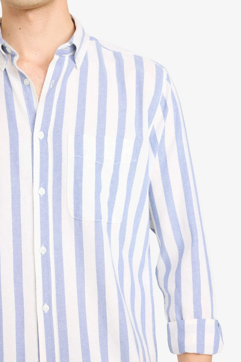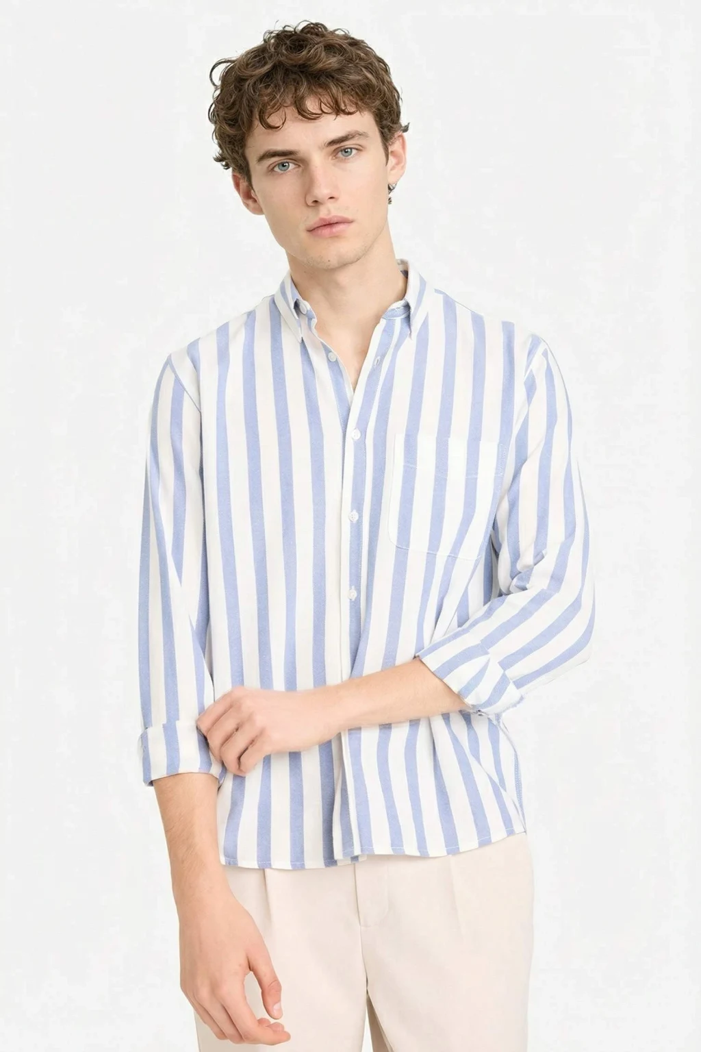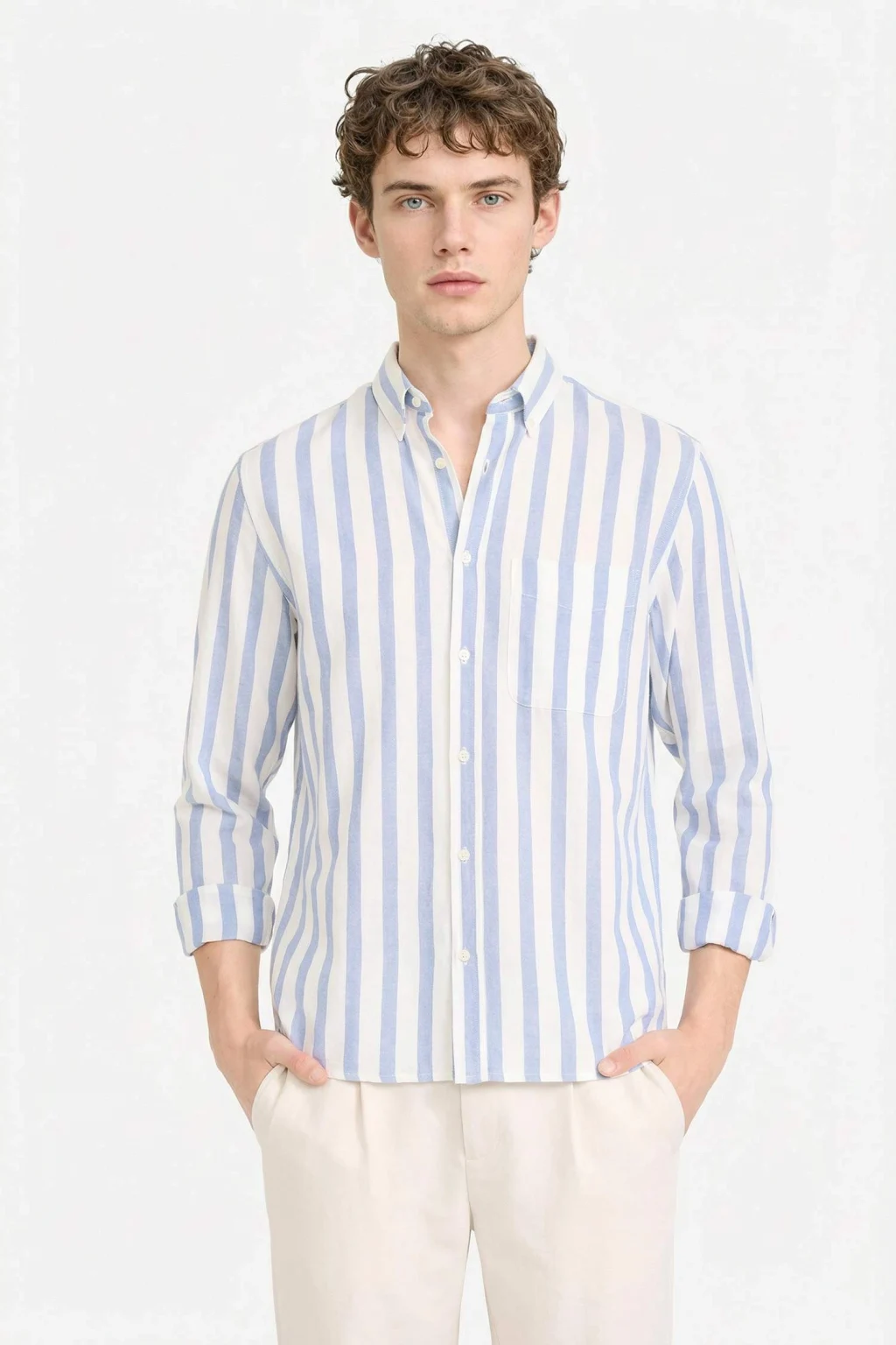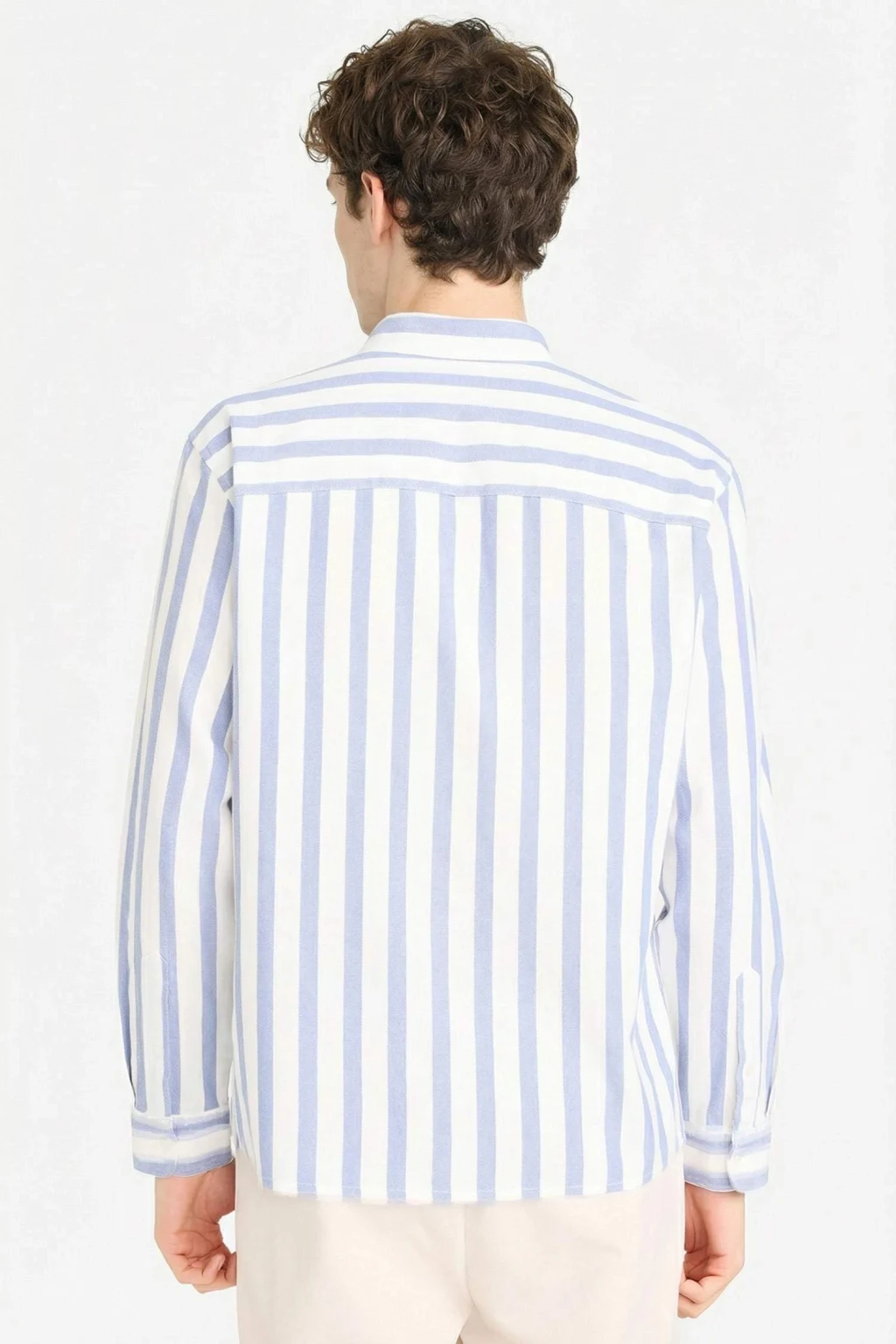 Defacto H3617AXBE177 Mavi Polo Yaka Çizgili Uzun Kollu Gömlek