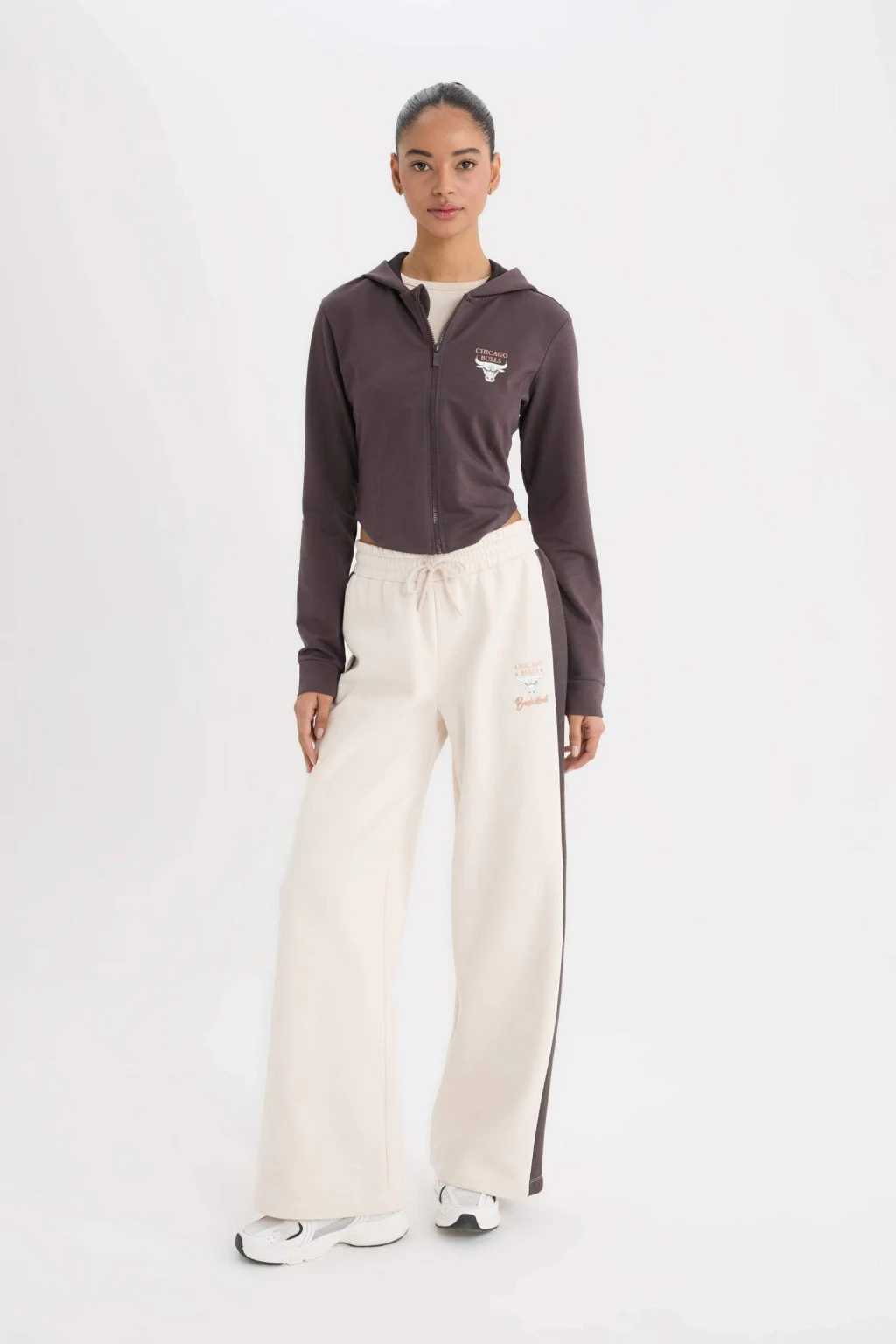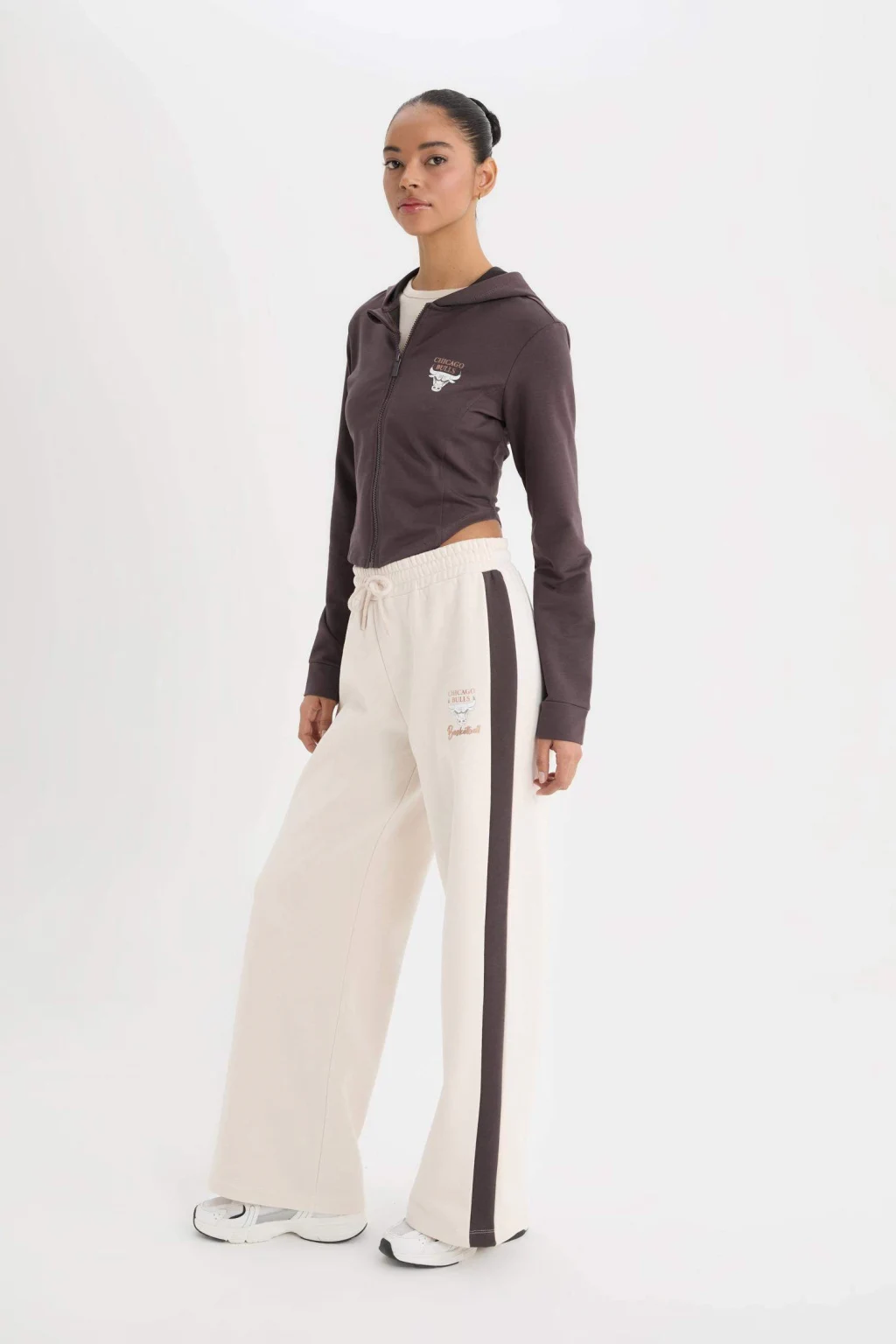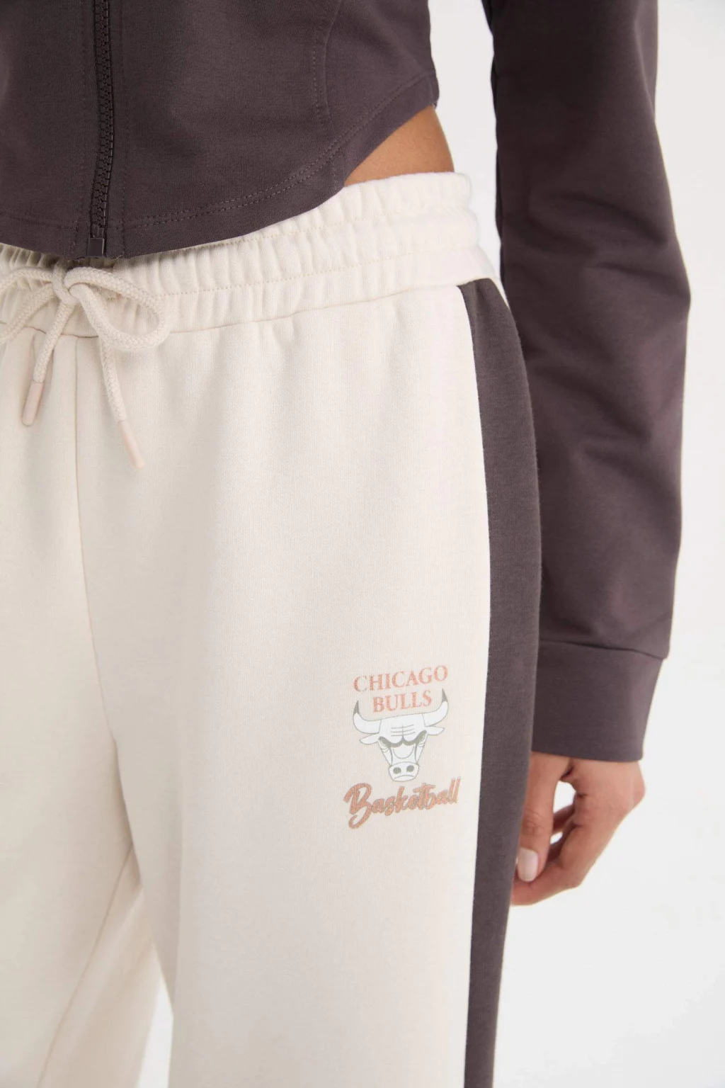 Yetişkinler için NBA Chicago Bulls lisanslı pamuklu geniş paça pantolon. Ekru renk ve sürdürülebilir malzeme ile günlük giyim için ideal. Standart boy ve ilkbahar/yaz mevsim koşullarına uygun. Kadınlar için sporcu yaşam tarzını yansıtan bir parça.