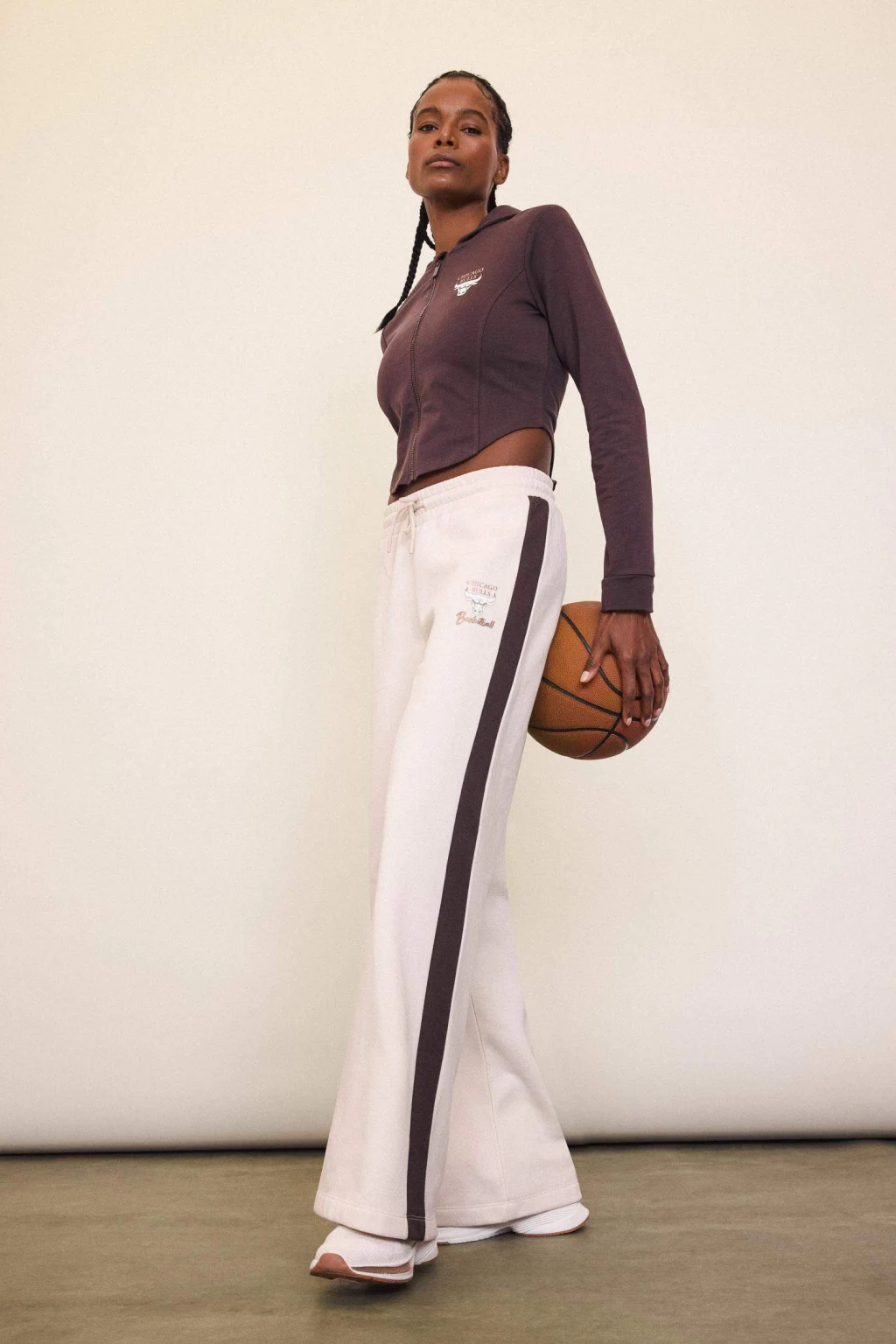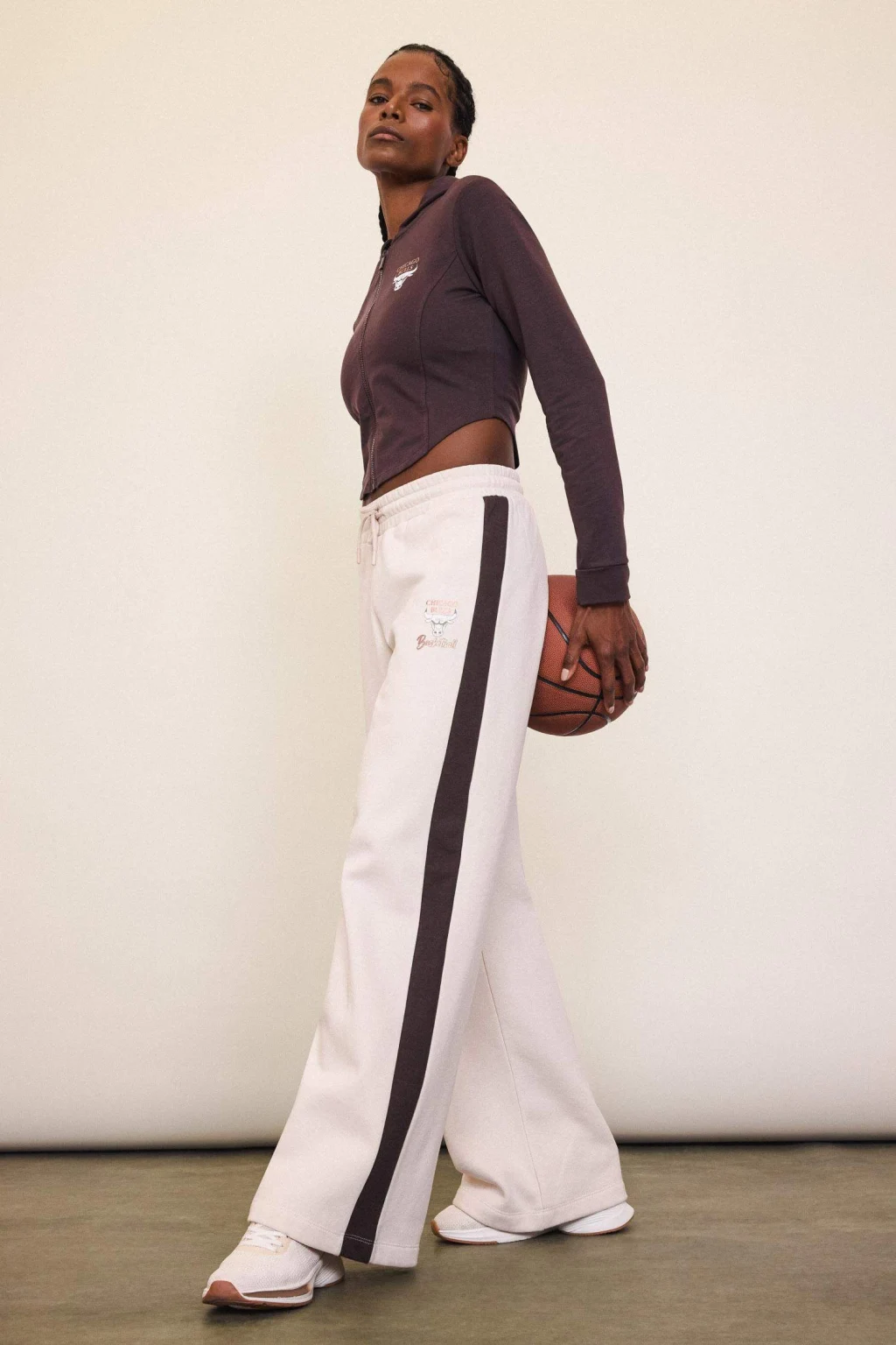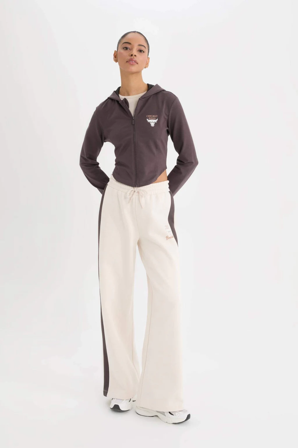 Yetişkinler için NBA Chicago Bulls lisanslı pamuklu geniş paça pantolon. Ekru renk ve sürdürülebilir malzeme ile günlük giyim için ideal. Standart boy ve ilkbahar/yaz mevsim koşullarına uygun. Kadınlar için sporcu yaşam tarzını yansıtan bir parça.