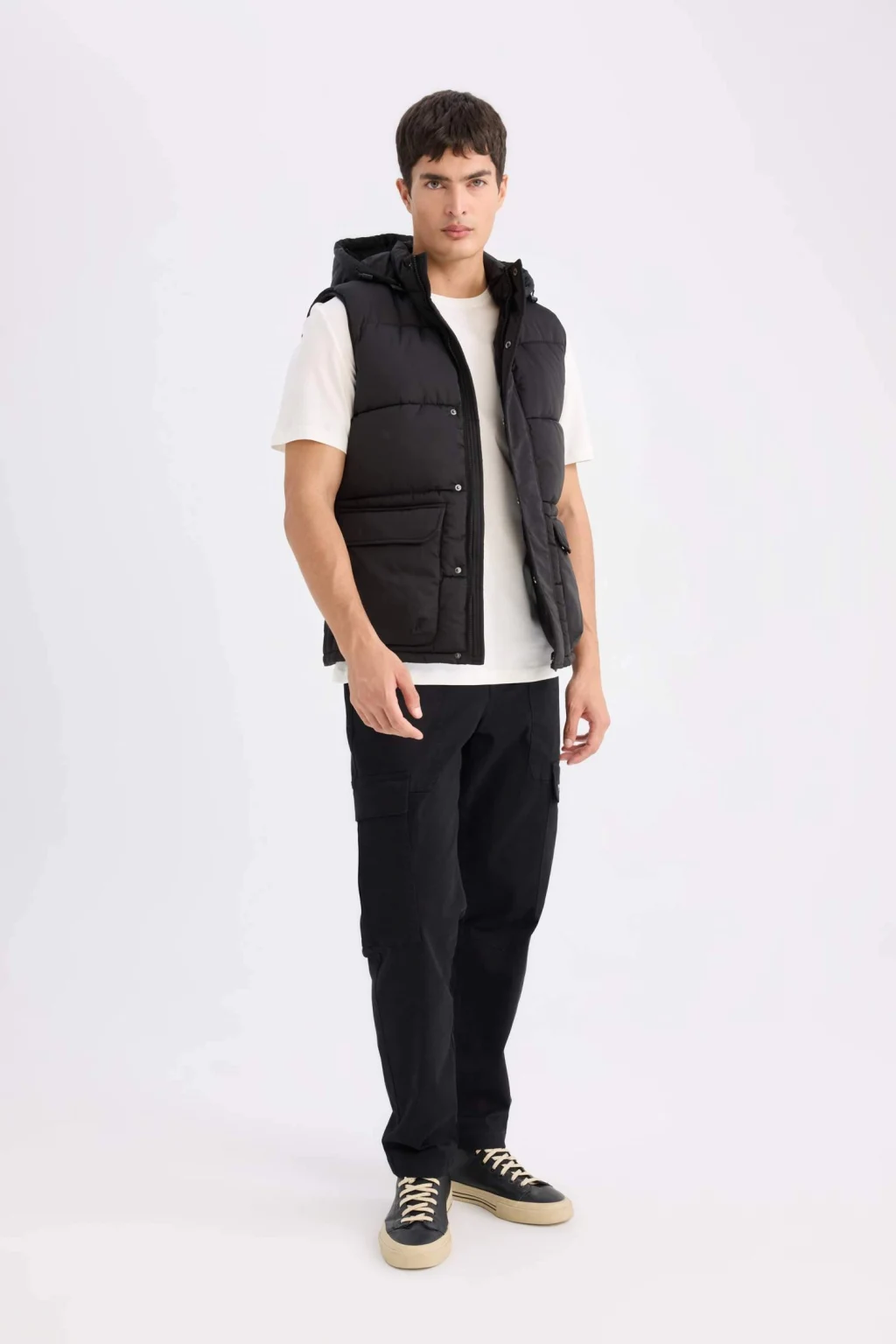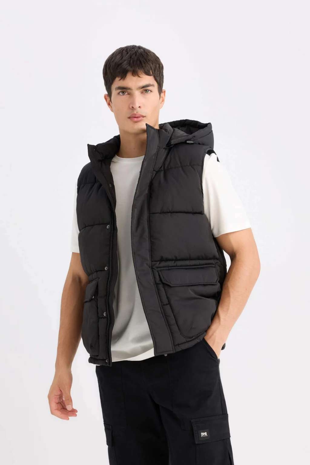Regular Fit Kapüşonlu Fermuarlı Cepli Şişme Yelek, rahat kesimi ve kapüşon detayı ile soğuk havalarda sıcak tutar. Fermuarlı cepler, pratiklik sağlar ve şişme tasarımı ekstra yalıtım sunar. Hem günlük kullanım hem de dış mekan aktiviteleri için ideal bir seçenek!