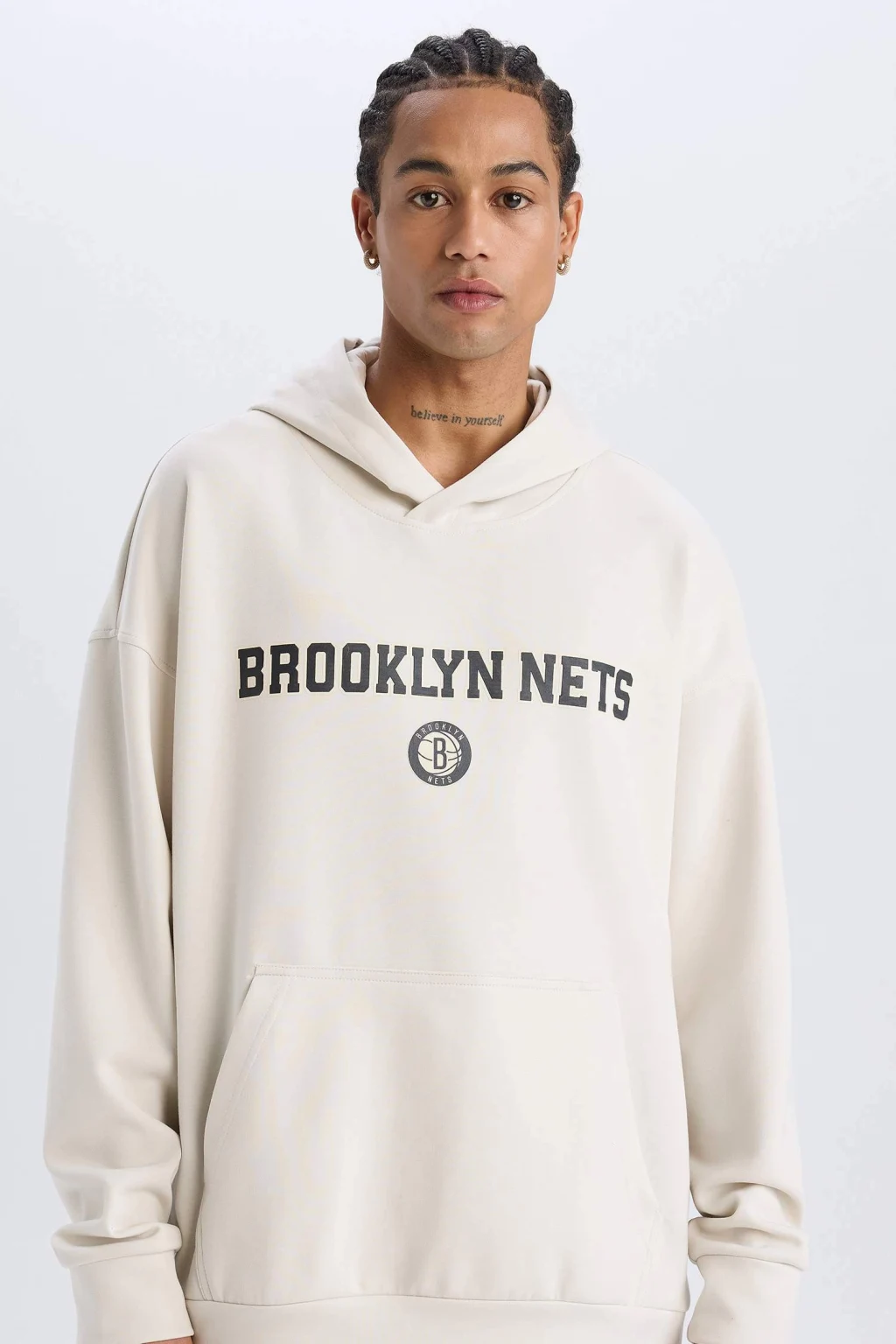 DeFactoFit NBA Brooklyn Nets Oversize Geniş Kalıp Kapüşonlu Skuba Dalgıç Kumaş Sporcu Sweatshirt, rahatlık ve stilin mükemmel birleşimi. Geniş kalıp tasarımı ve kapüşonu, ekstra konfor sunarken, skuba dalgıç kumaşı vücuda tam oturur ve esneklik sağlar. NBA Brooklyn Nets logosu, sportif şıklığınızı tamamlar.