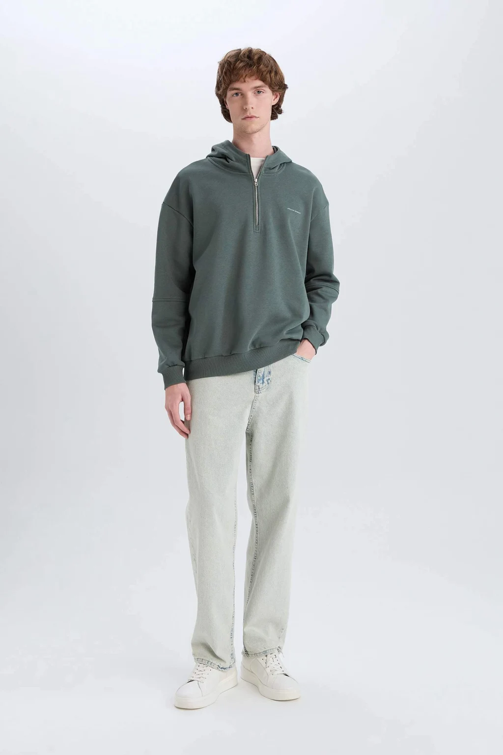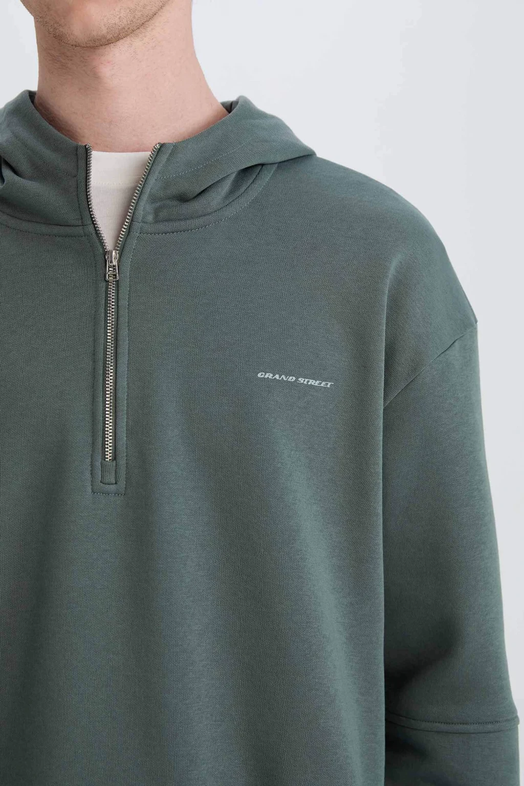 Rahat kesimi ve dikkat çekici baskısıyla öne çıkan Boxy Fit Kapüşonlu Yarım Fermuarlı Sweatshirt, sokak stiline modern bir hava katar. Yarım fermuar detayı ve kapüşonuyla fonksiyonel kullanım sunar.