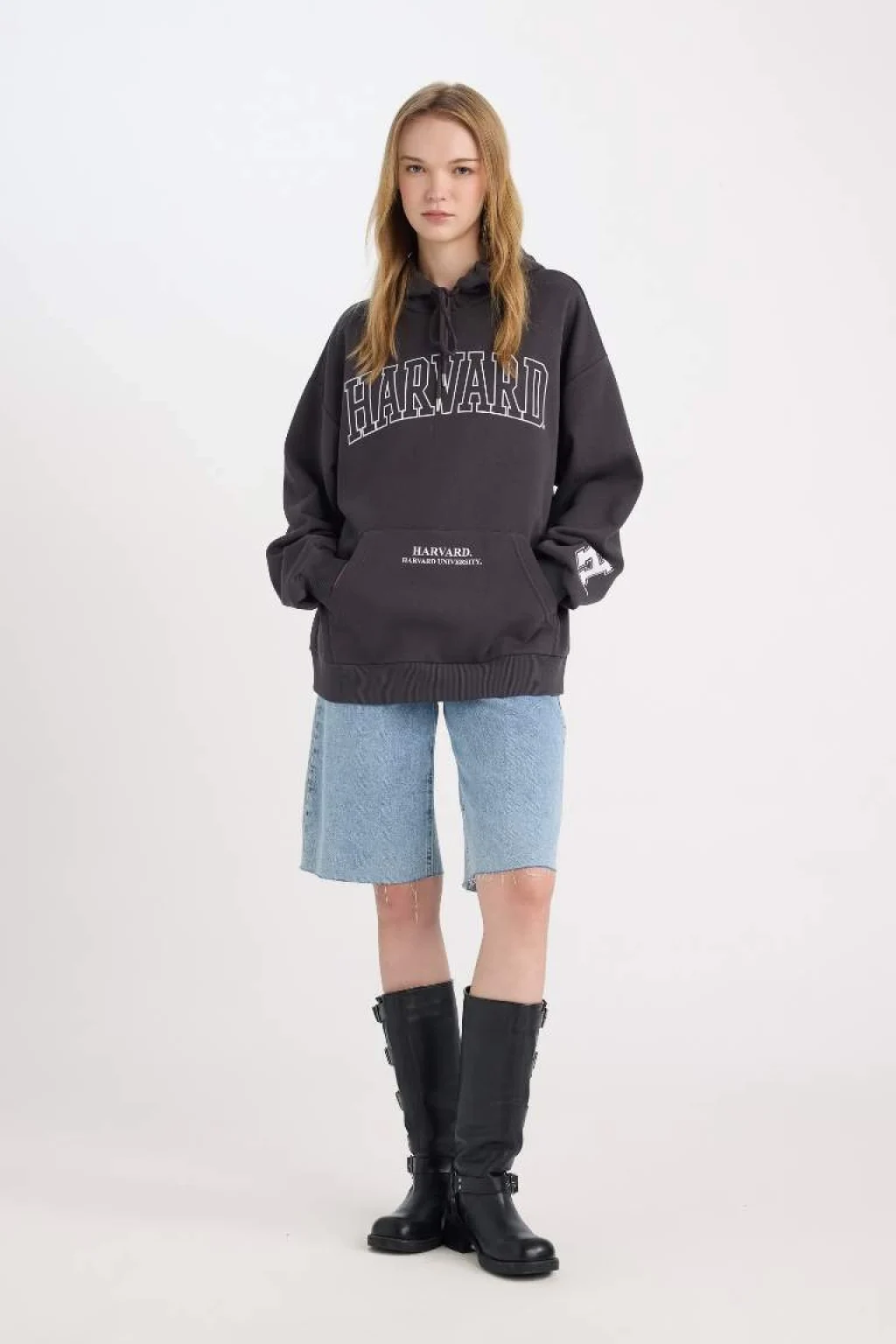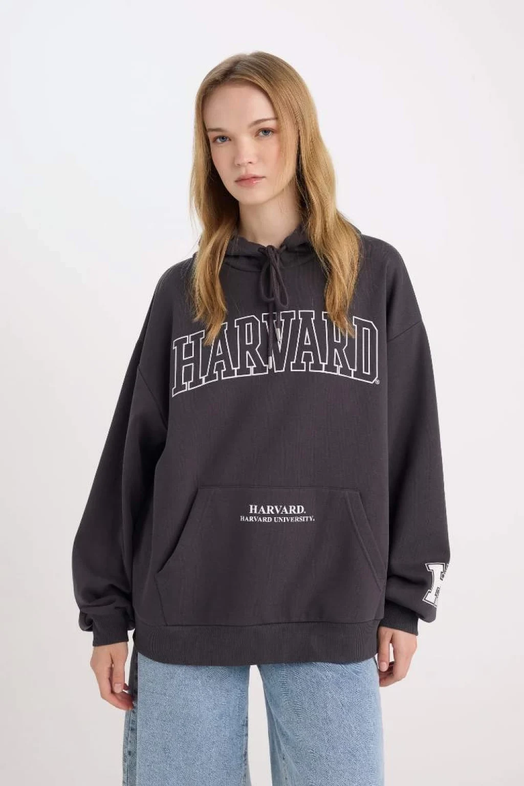 Kadın Antrasit Harvard University Oversize Fit Geniş Kalıp Kapüşonlu Baskılı Kalın Sweatshirt: Harvard Üniversitesi ruhunu taşıyan geniş kalıplı, kapüşonlu ve baskılı sweatshirt. Rahatlığı ve şıklığı bir arada sunar. Soğuk günlerde tarzınızdan ödün vermeden sizi sıcacık tutar.