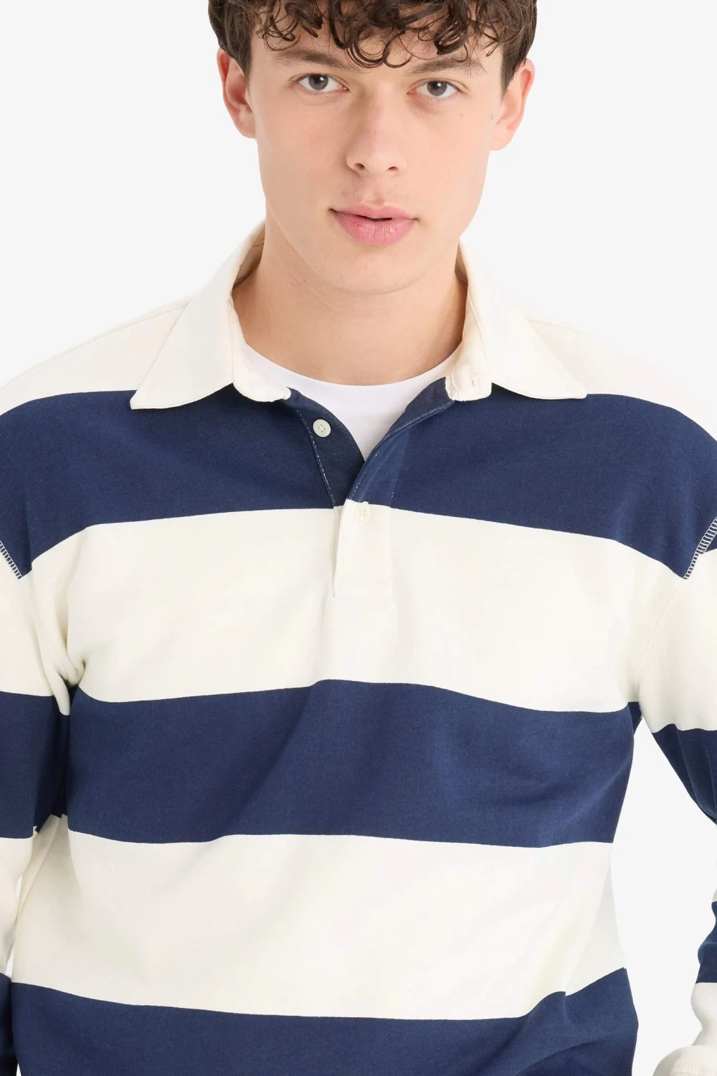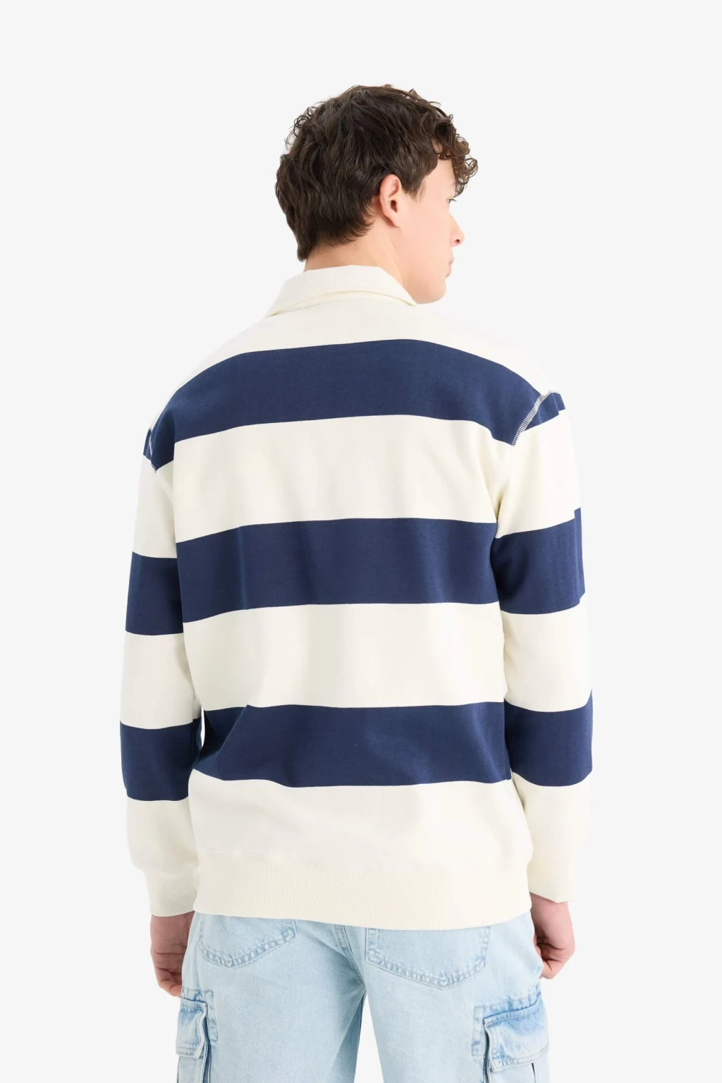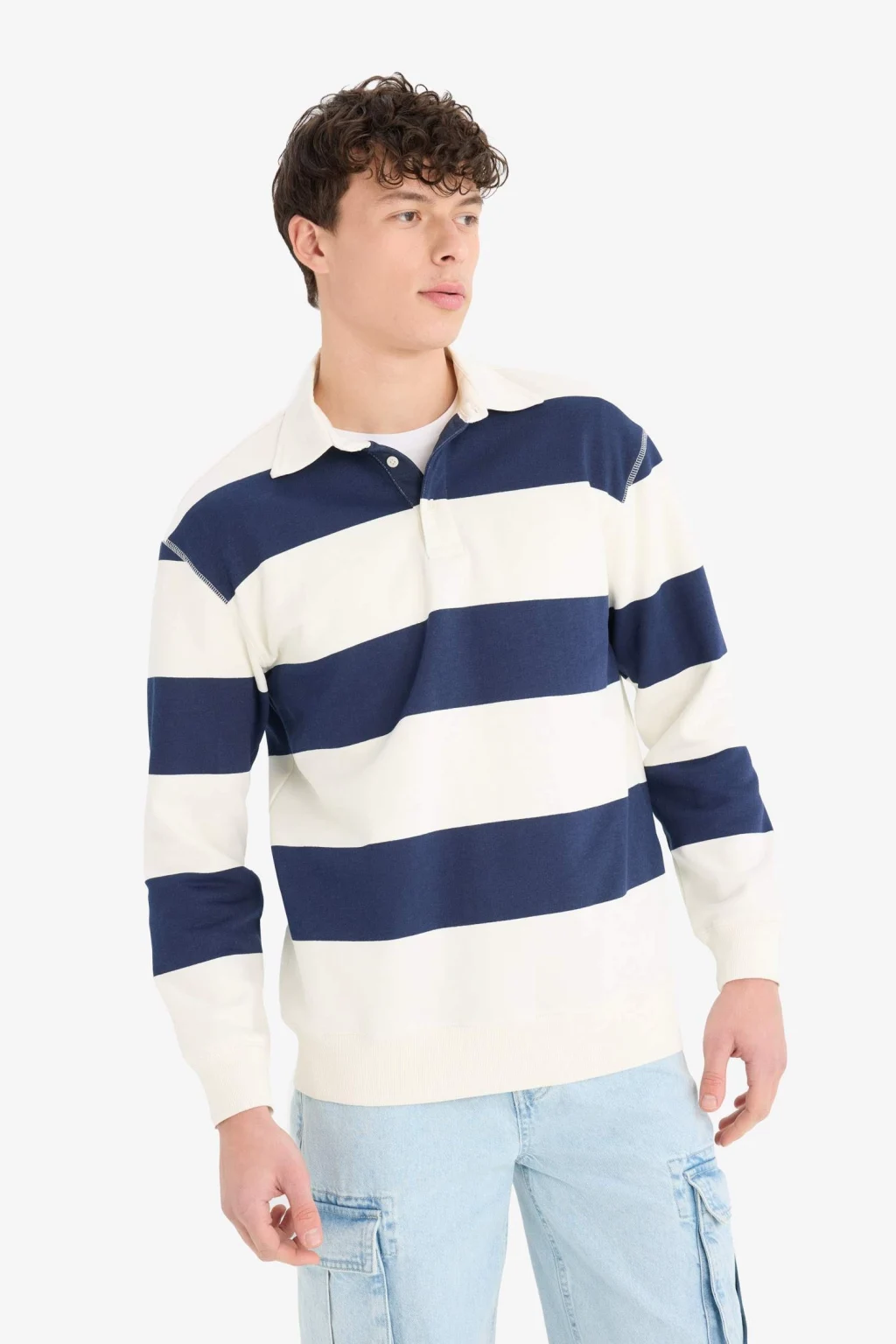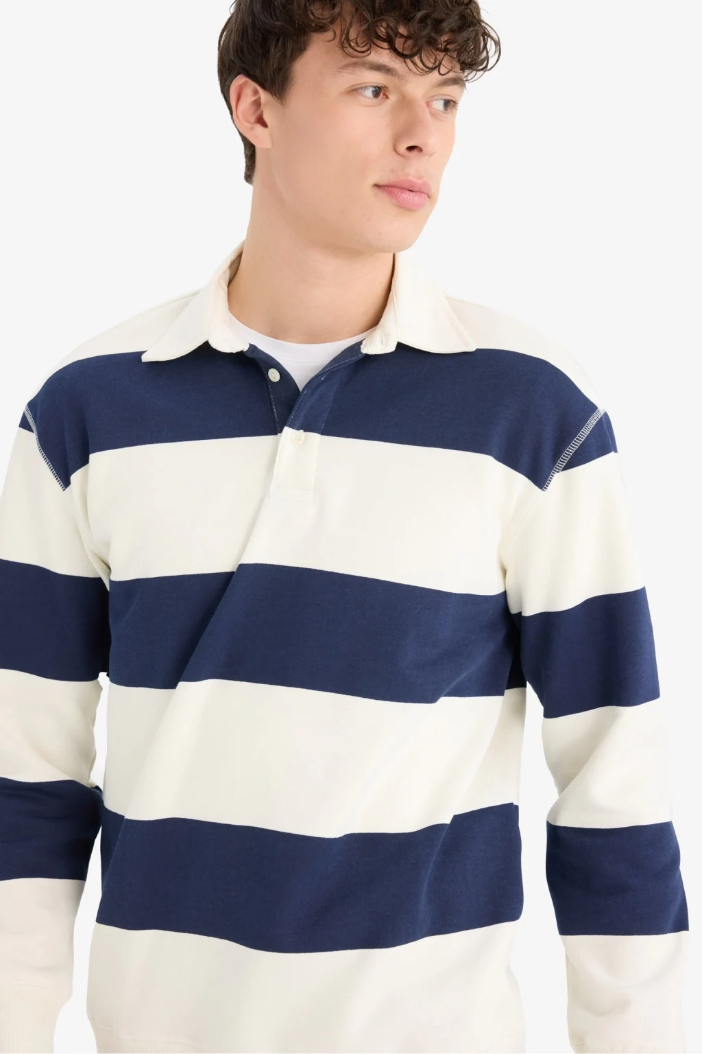 Relax Fit Polo Yaka Çizgili Kalın Sweatshirt, şık çizgili tasarımı ve rahat kesimiyle soğuk havalarda rahatlık ve stil sunar. Kalın kumaşı, sizi sıcak tutarken, polo yaka detayları ise şıklığı artırır. Hem günlük kullanım hem de rahat kombinler için ideal bir seçenek.