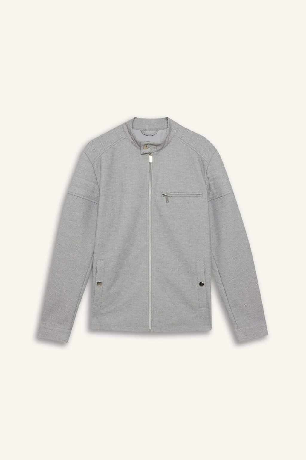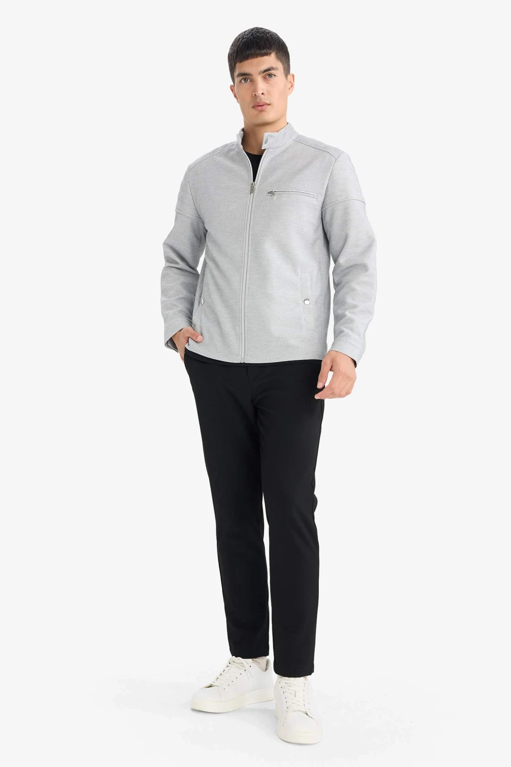 Defacto D7534AXGR221 Gri Slim Fit Dar Kesim Dik Yaka Astarlı Fermuarlı Cepli Mevsimlik Baharlık Mont