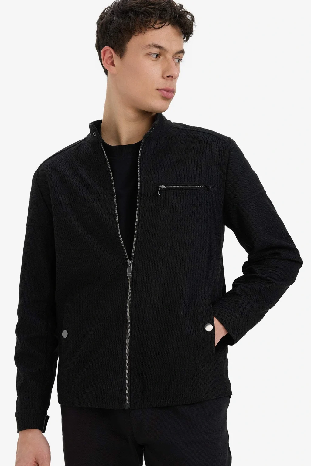 Defacto D7534AXBK27 Siyah Slim Fit Dar Kesim Dik Yaka Astarlı Fermuarlı Cepli Mevsimlik Baharlık Mont