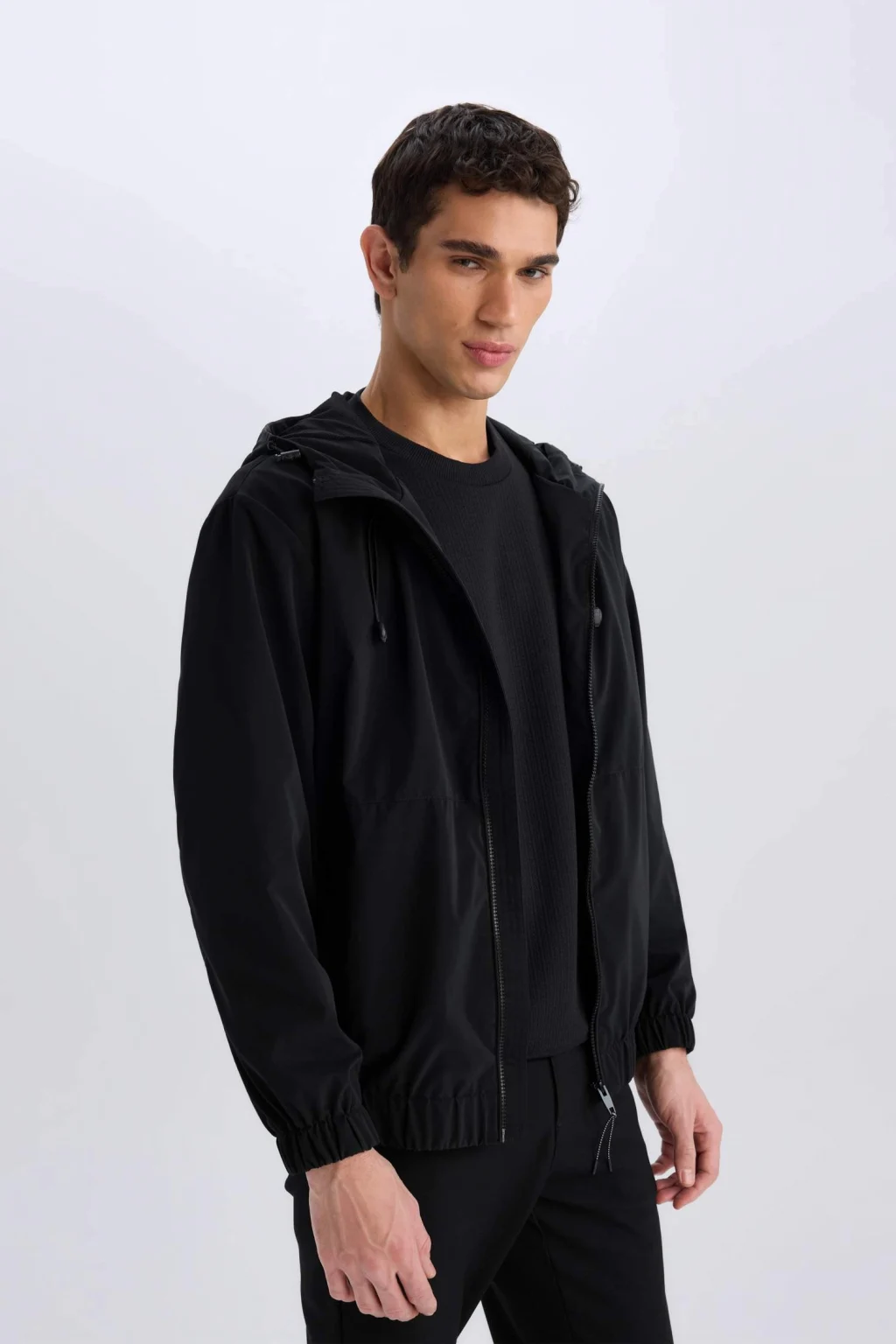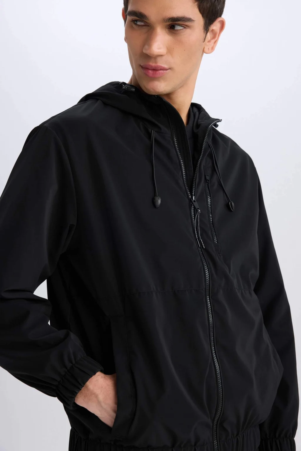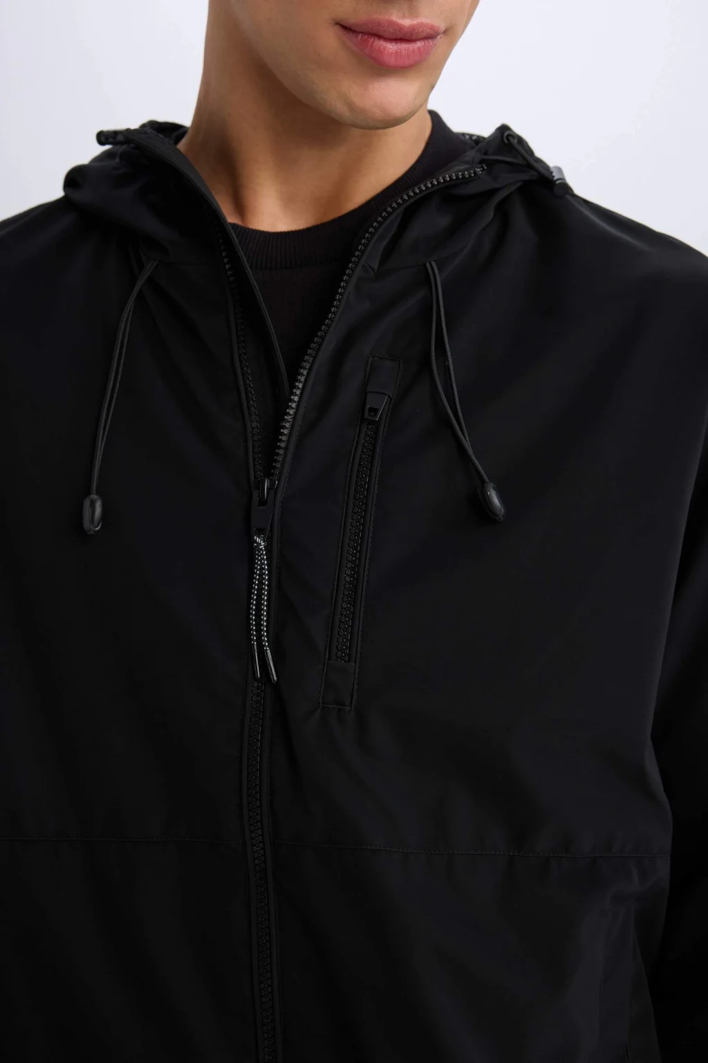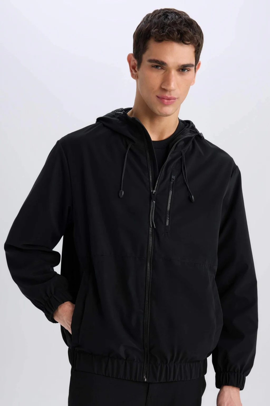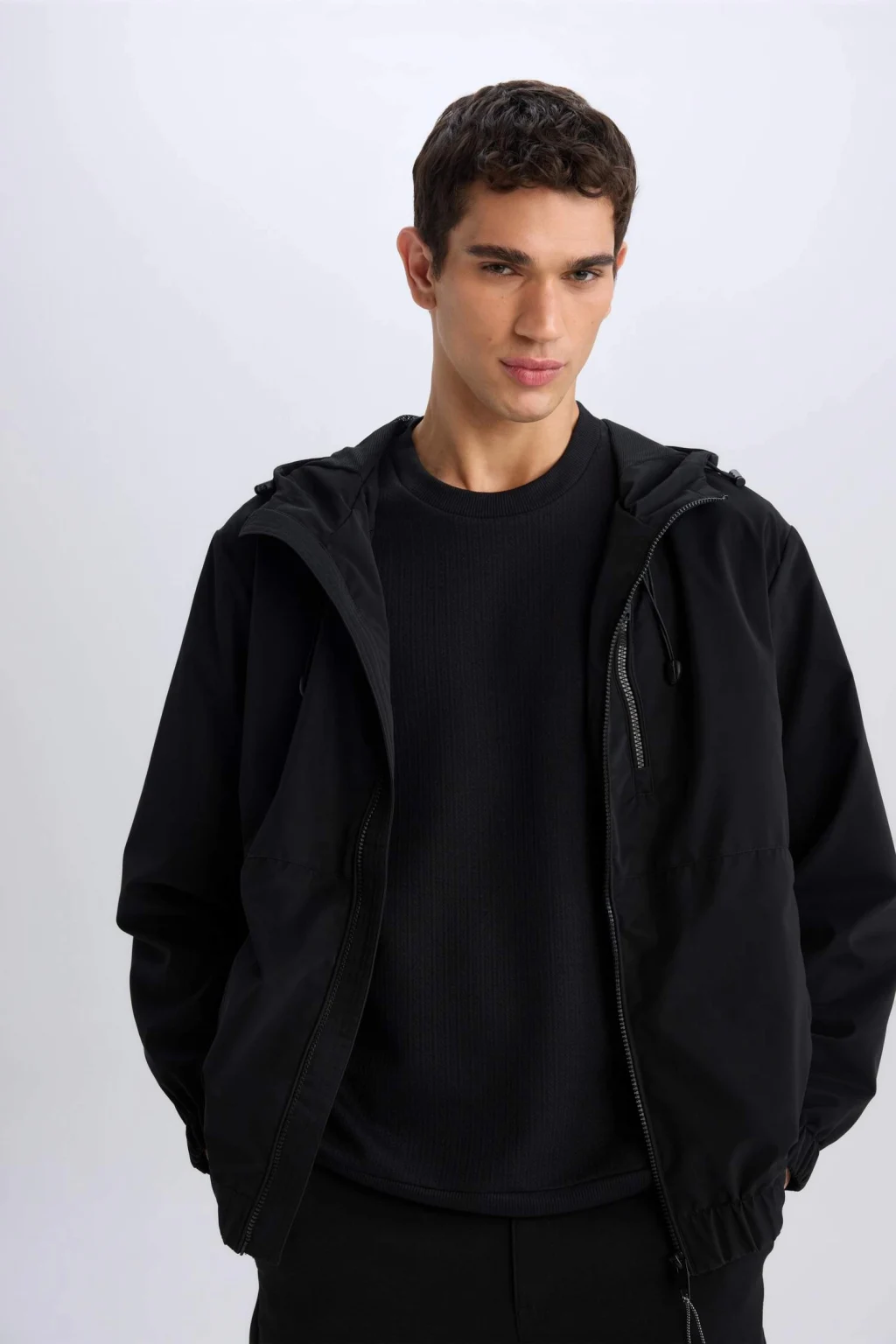 Defacto E9491AXBK81 Siyah Defactofit Su İtici Rüzgar Geçirmez Regular Fit Kapüşonlu Fermuarlı Cepli Kışlık Mont