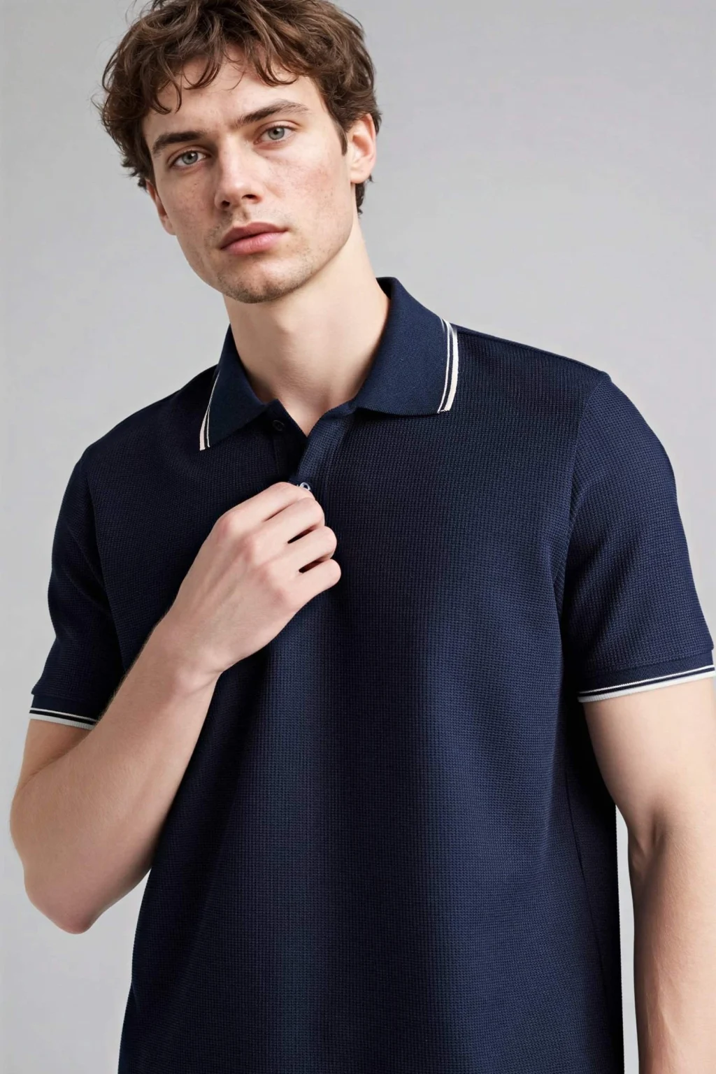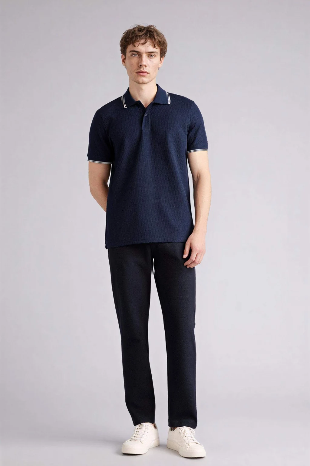 Defacto F9769AXIN269 İndigo Nefes Alabilen Polo Tişört