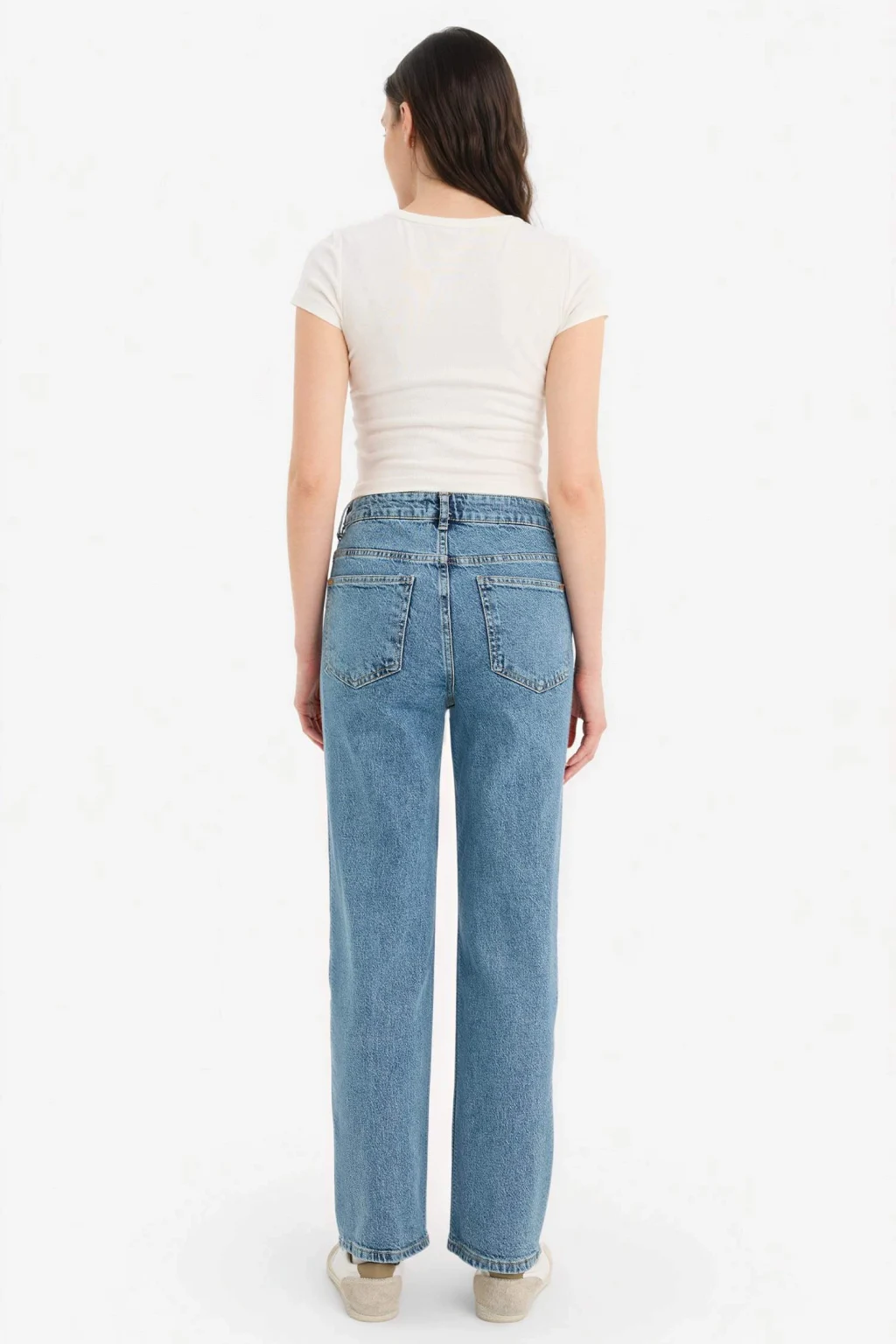 Defacto G8852AXNM34 Mavi %100 Pamuk Straıght Wıde Yüksek Bel Jean Pantolon