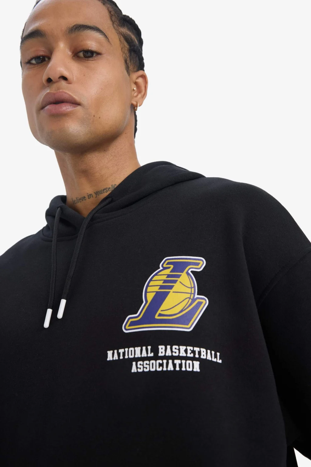 DeFactoFit NBA Los Angeles Lakers Oversize Geniş Kalıp Kapüşonlu Kalın Sweatshirt, şıklığı ve rahatlığı bir arada sunuyor. NBA'nin efsanevi Los Angeles Lakers tasarımıyla, sıcak tutan kalın kumaşı ve oversize kesimiyle günlük stilinize spor bir dokunuş katın.