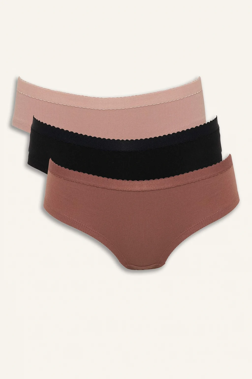 Yumuşak ribana kumaşıyla gün boyu konfor sunan 3’lü hipster külot seti, sade ve kullanışlı tasarımıyla öne çıkar. Günlük kullanım için ideal, rahat ve şık bir iç giyim alternatifi.