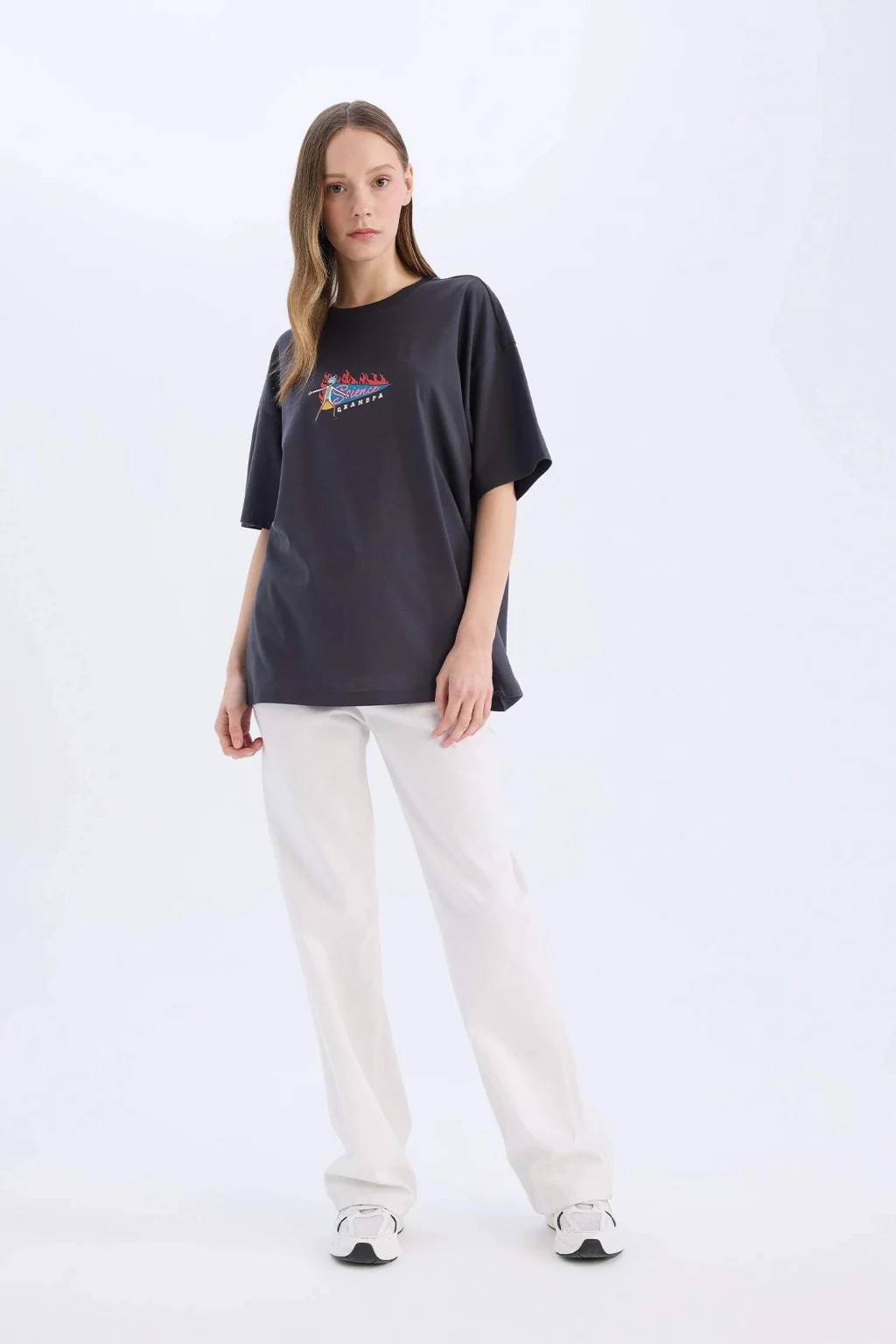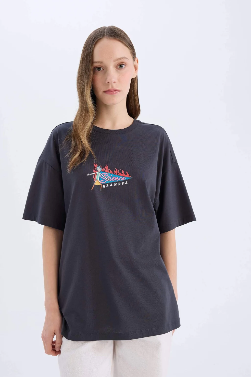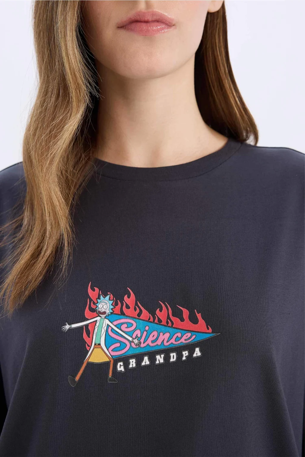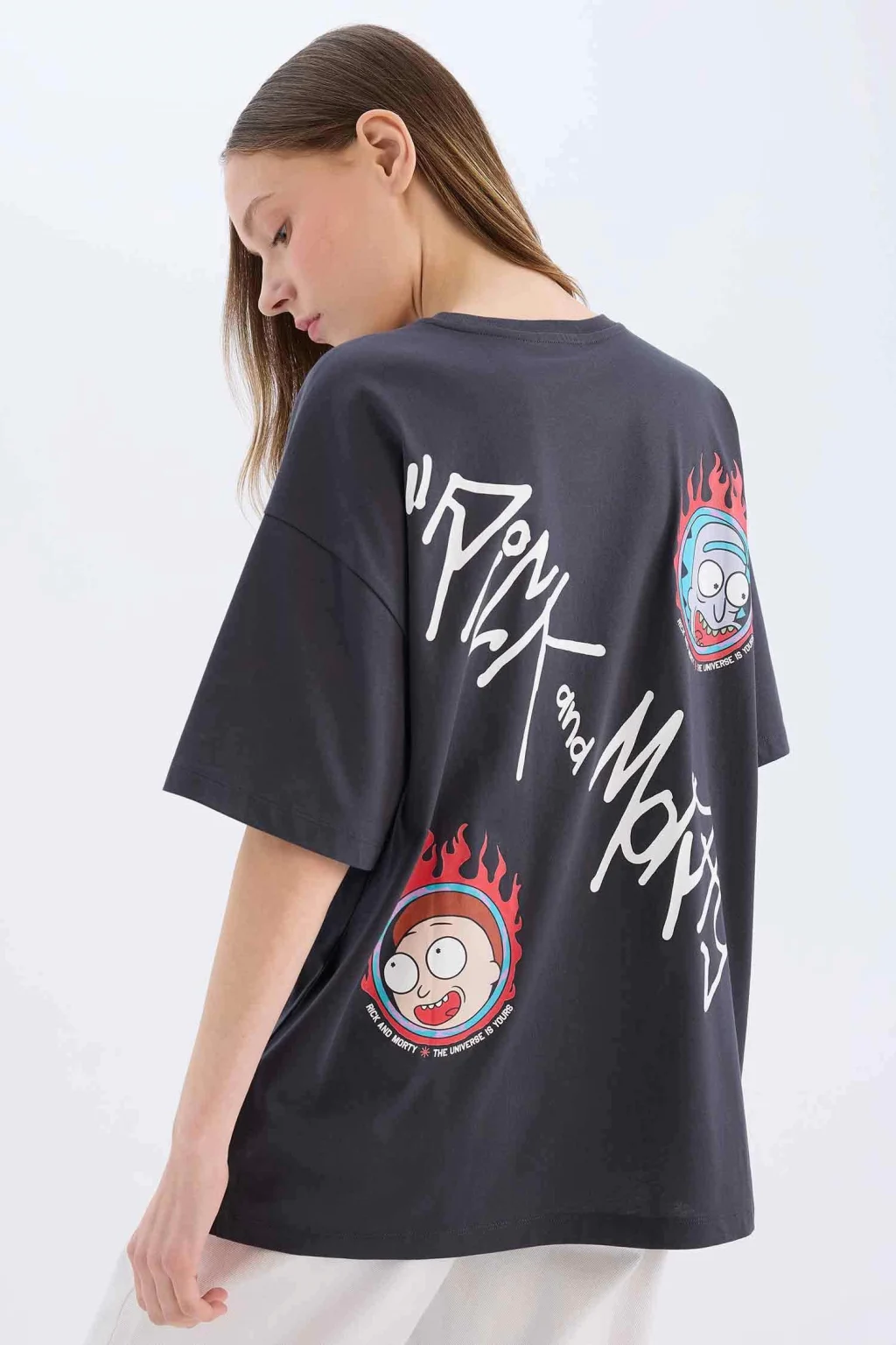 Yetişkinler için örme kadın kısa kollu tişört, oversize geniş kalıpta. Rick and Morty lisanslı, Coool markasıyla antrasit renk seçeneği. Sürdürülebilir malzemeden İlkbahar/Yaz için ideal. Bisiklet yakalı ve baskılı deseniyle tarzınızı yansıtın.