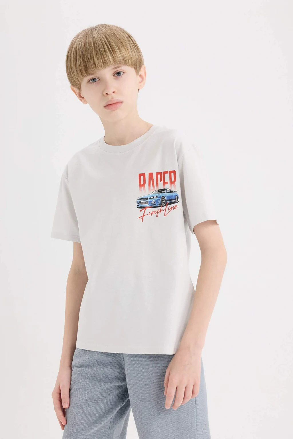 Erkek çocuklar için bisiklet yaka sırt baskılı kısa kollu tişört, enerjik bir tasarıma sahip. Sırtındaki şık baskı detayı, tişörtü dikkat çekici kılar ve yumuşak kumaşı ile günlük kullanımda rahatlık sağlar. Hem şık hem de konforlu bir seçenek!