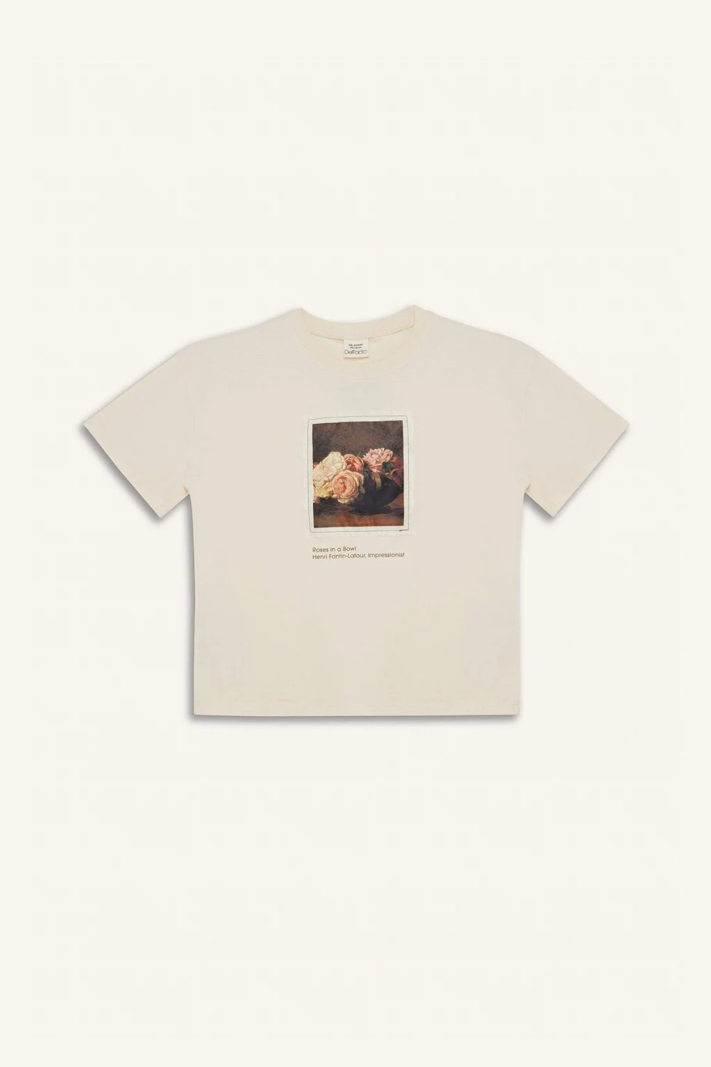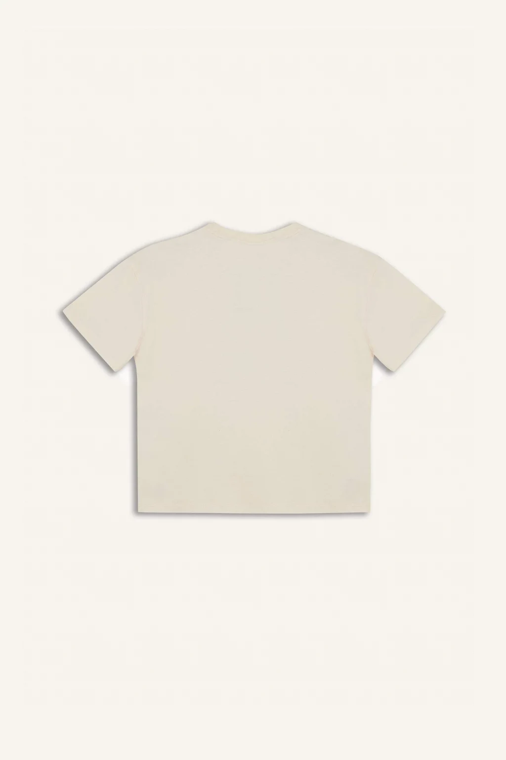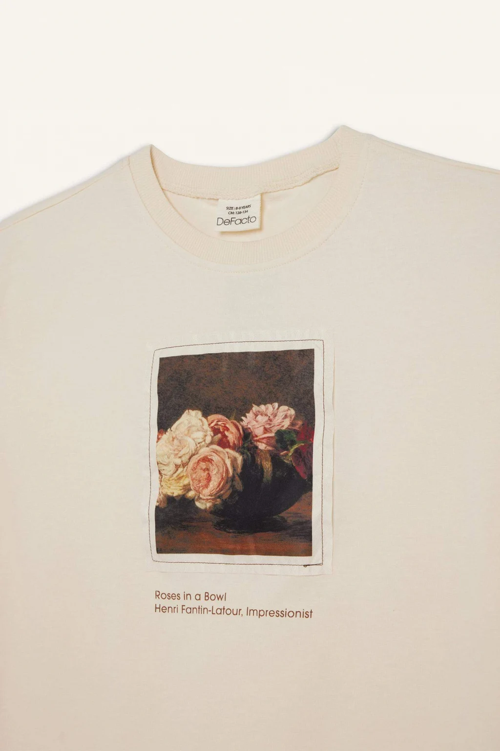 Oversize kalıbı ve şık baskı detayıyla öne çıkan tişört, kız çocuklara hem rahatlık hem de stil sunar. Bisiklet yaka tasarımıyla günlük kombinler için ideal bir parçadır.