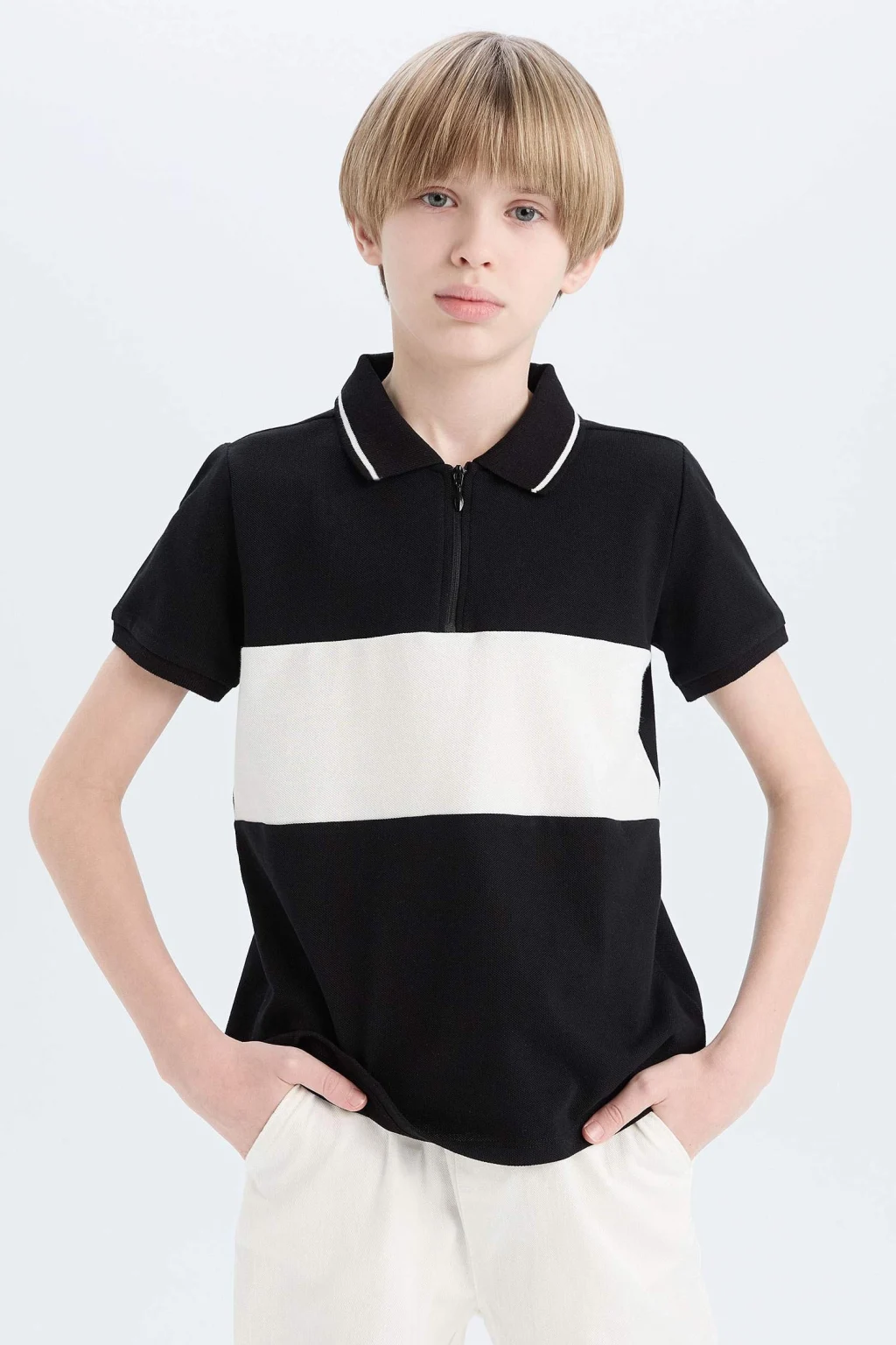 Erkek çocuklar için renk bloklu tasarımıyla dikkat çeken bu kısa kollu polo tişört, hem şık hem de rahat bir seçenek sunar. Pike kumaşı sayesinde ferah bir kullanım sağlar, sıcak günler için ideal bir tercih olur.