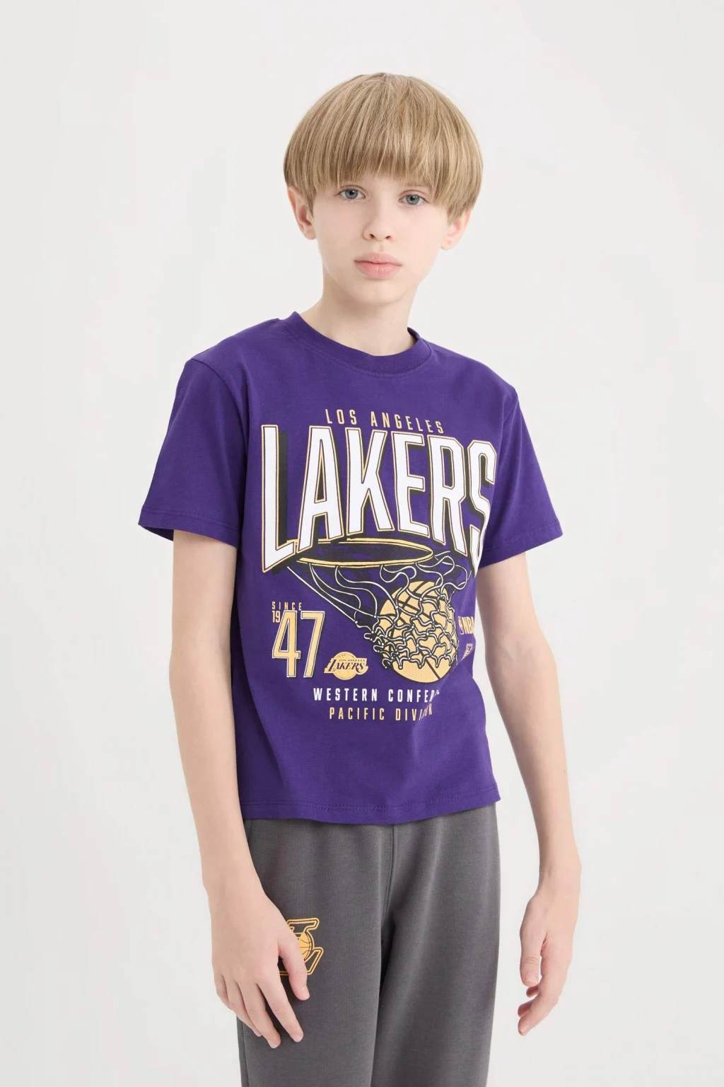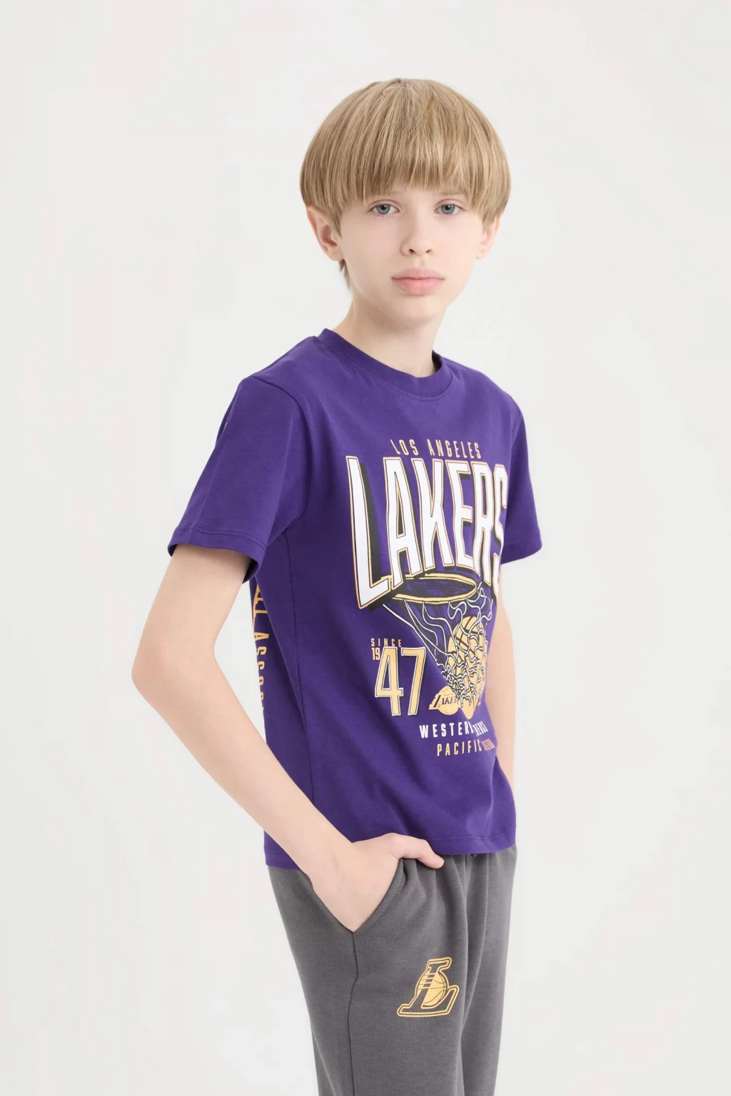 NBA Los Angeles Lakers New Regular Fit kısa kollu tişört, genç basketbol severler için mükemmel bir tercih. Modern ve rahat kesimiyle gün boyu konfor sunarken, Los Angeles Lakers logosu tişörte dinamik bir hava katıyor. Hem günlük kullanım hem de spor aktiviteleri için ideal olan bu tişört, stil sahibi küçük fanlar için vazgeçilmez.