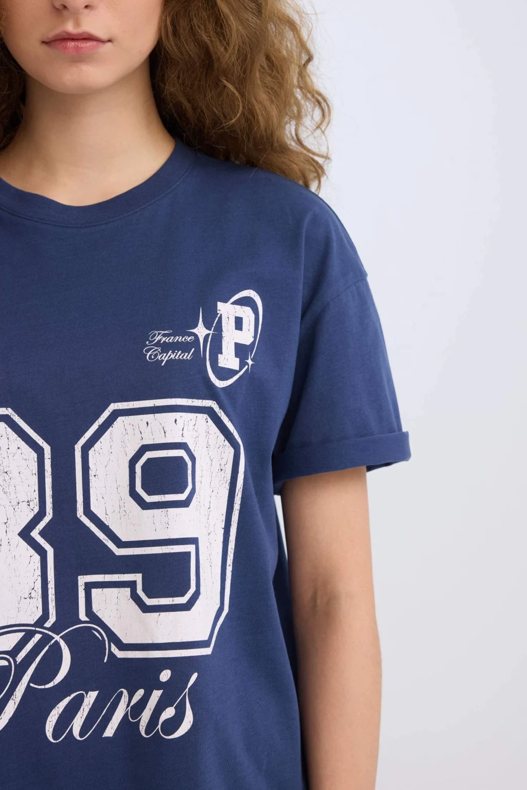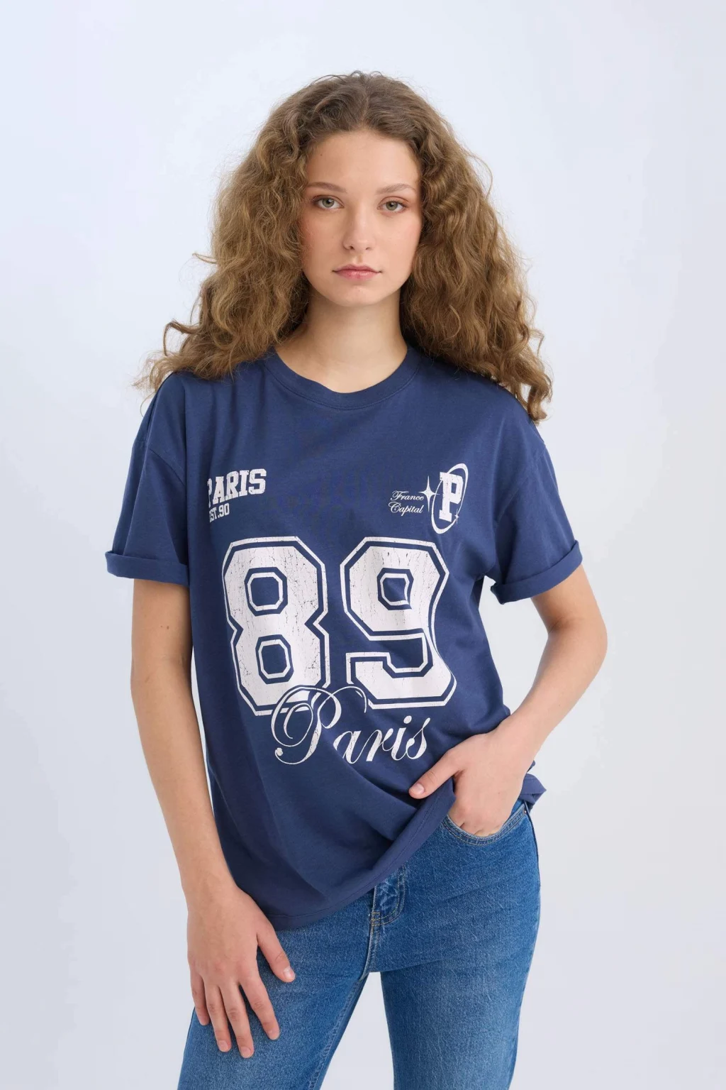 Yetişkin kadınlar için özel olarak tasarlanan bu sürdürülebilir İndigo tişört, spor desen temasıyla öne çıkıyor. Oversize geniş kalıbı ve düşük omuz detayıyla rahat ve şık bir görünüm sunuyor. Bisiklet yaka ve ribanalı yaka detaylarıyla tamamlanan bu kısa kollu tişört, yaz mevsimine uygun bir seçenek.