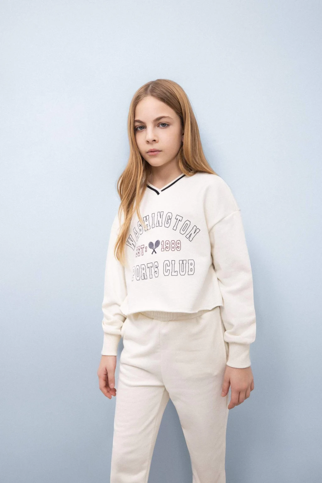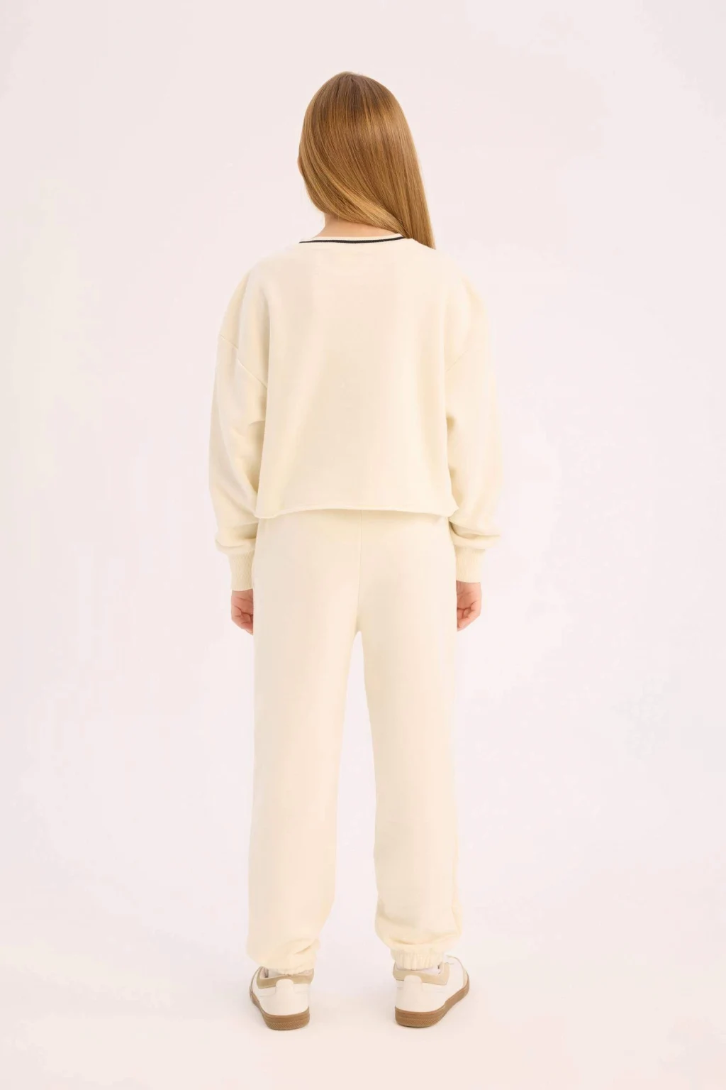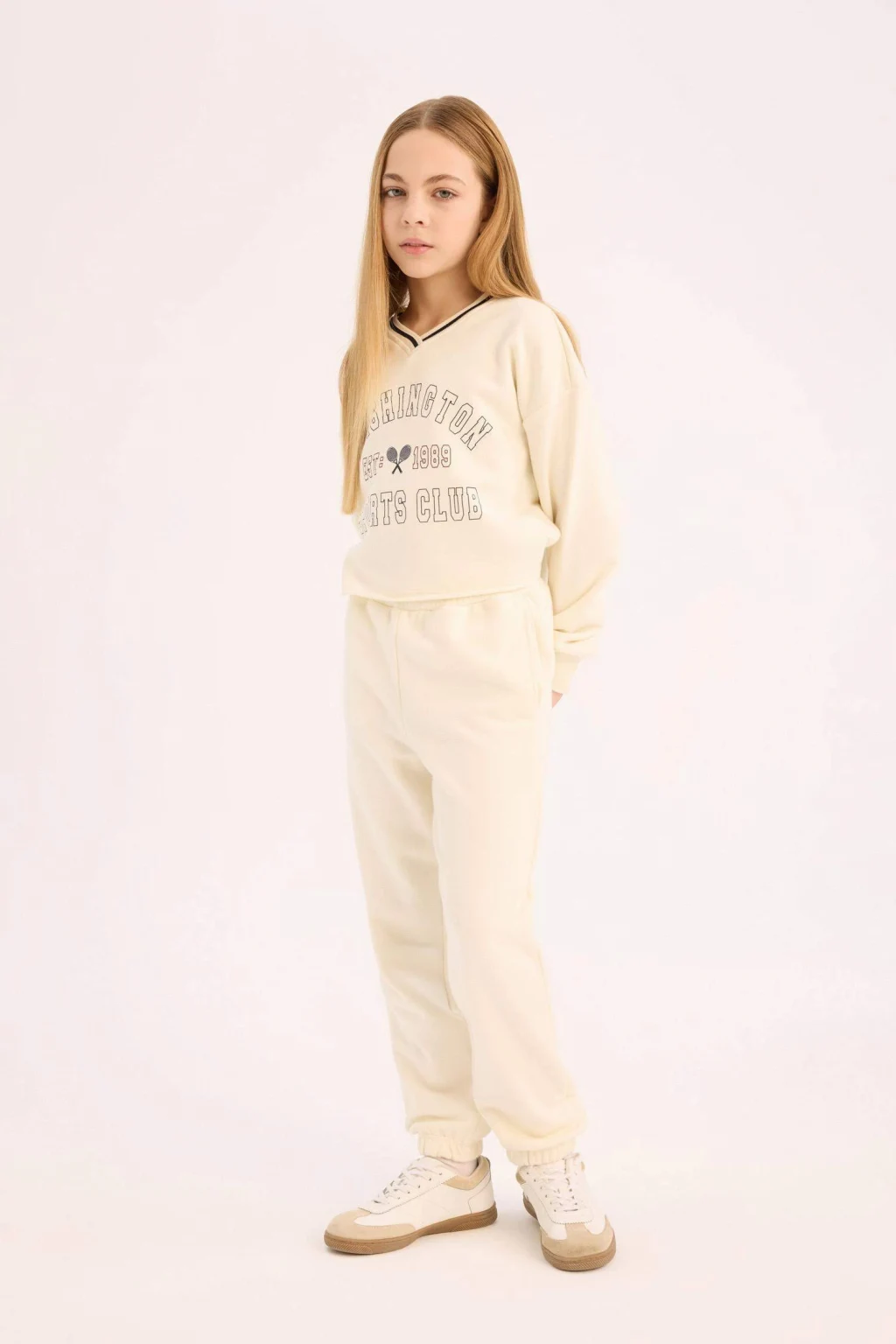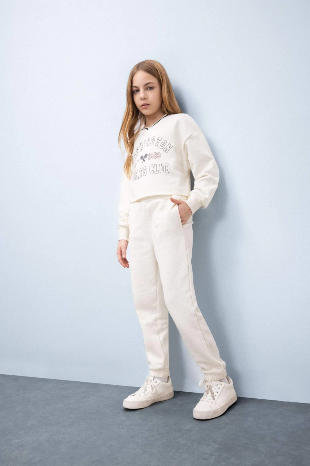 Kız çocukları için tasarlanmış bu 2'li takım, baskılı sweatshirt ve beli paçası lastikli eşofman altı ile şıklığı ve rahatlığı bir arada sunar. Hem spor hem de günlük kullanım için ideal olan bu takım, hareket özgürlüğü sağlar ve enerjik bir görünüm sunar.