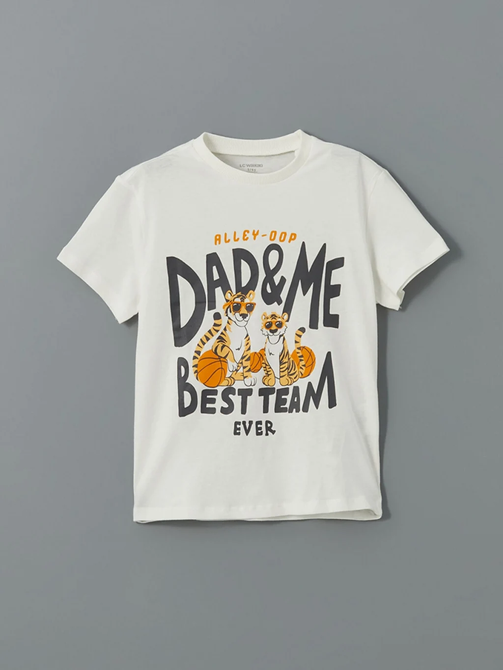 Bisiklet yaka ve kısa kollu erkek çocuk tişört, %100 pamuklu penye kumaştan üretilmiştir. Önü yazı ve desen baskılıdır.