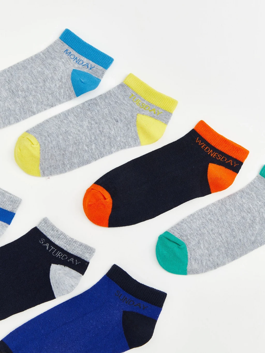 Erkek çocuk için tasarlanmış, yedi çift patik çoraptan oluşan pakettir. Her bir çorap üzerinde haftanın günleri baskısı bulunur.