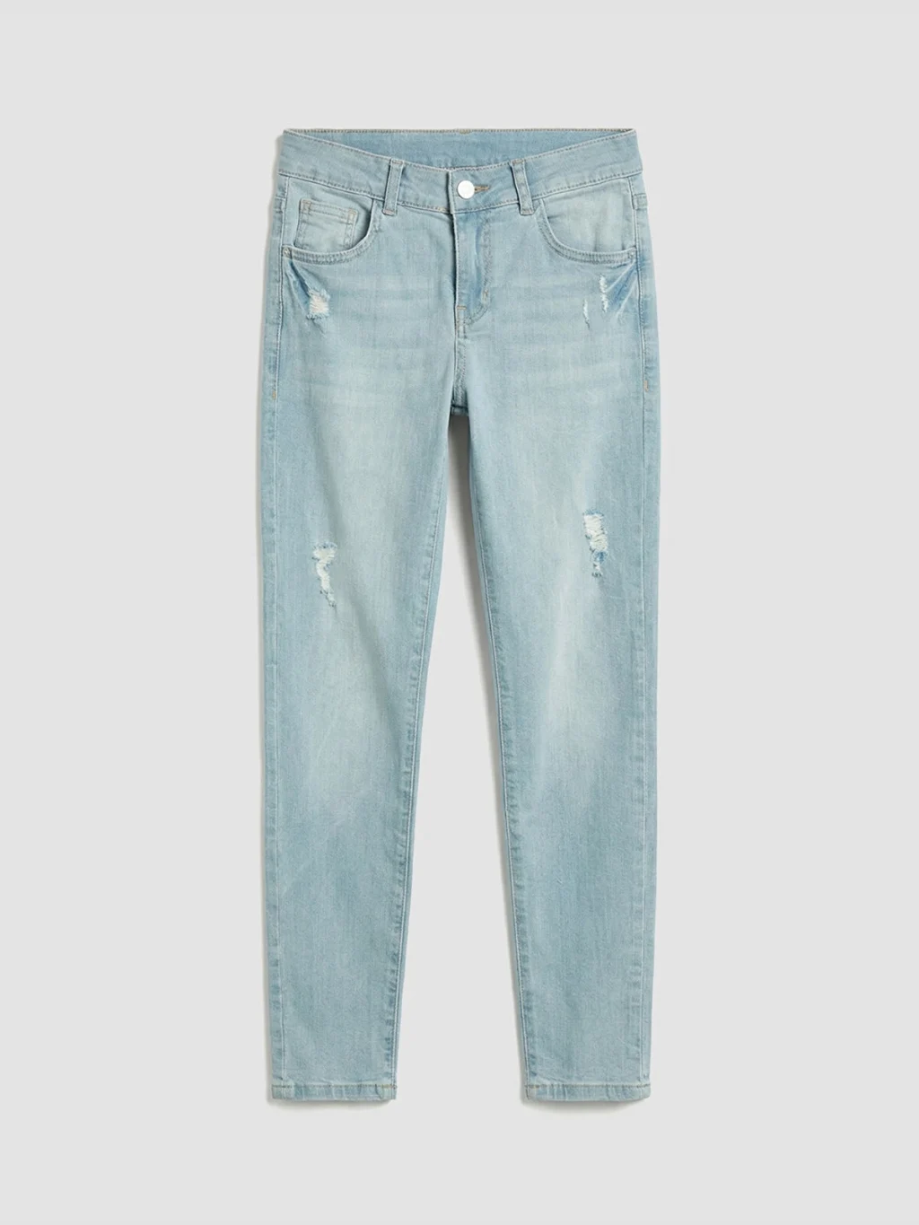 Ekstra dar kalıplı erkek çocuk jean pantolon, pamuklu denim kumaştan üretilmiştir. Beş cepli tasarıma sahip olup fermuar ve düğme kapamalıdır.