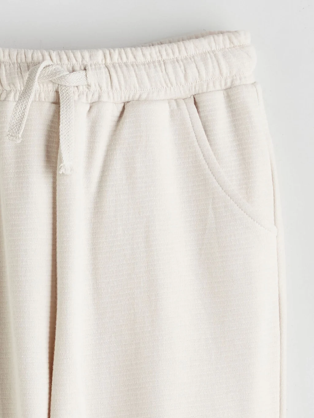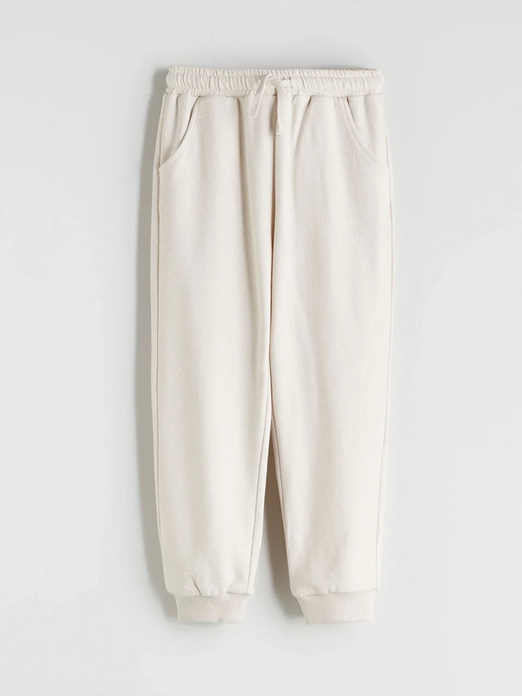 Erkek çocuk takım, 2 iplik kumaştan üretilmiştir. Bilekleri, alt kısmı ribanalı sweatshirt ve jogger eşofman altından oluşur.