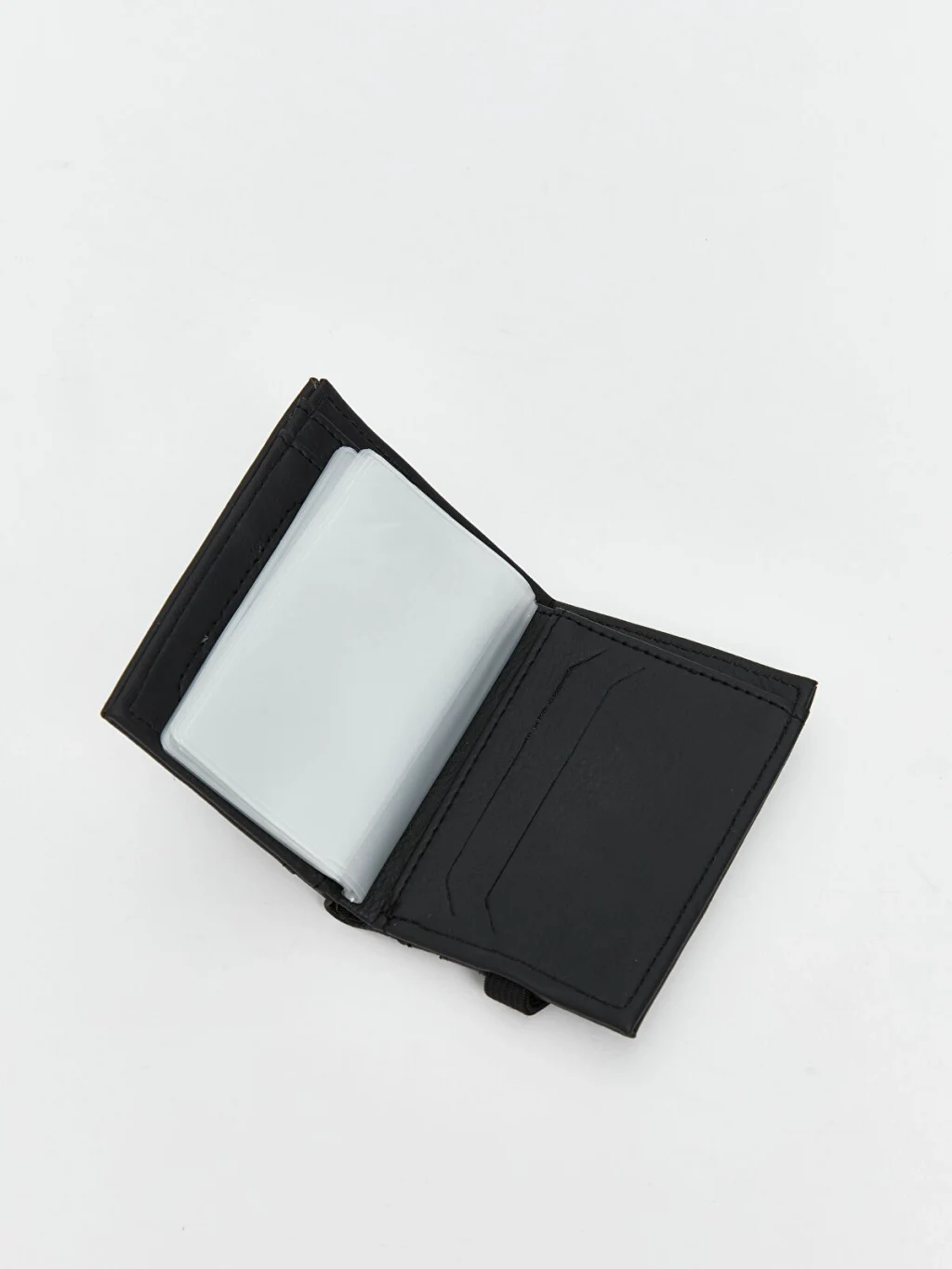 Farklı dokulara sahip yüzeylerden oluşan erkek kartlık, çoklu kart bölmelerine ve lastik bant detayına sahiptir.