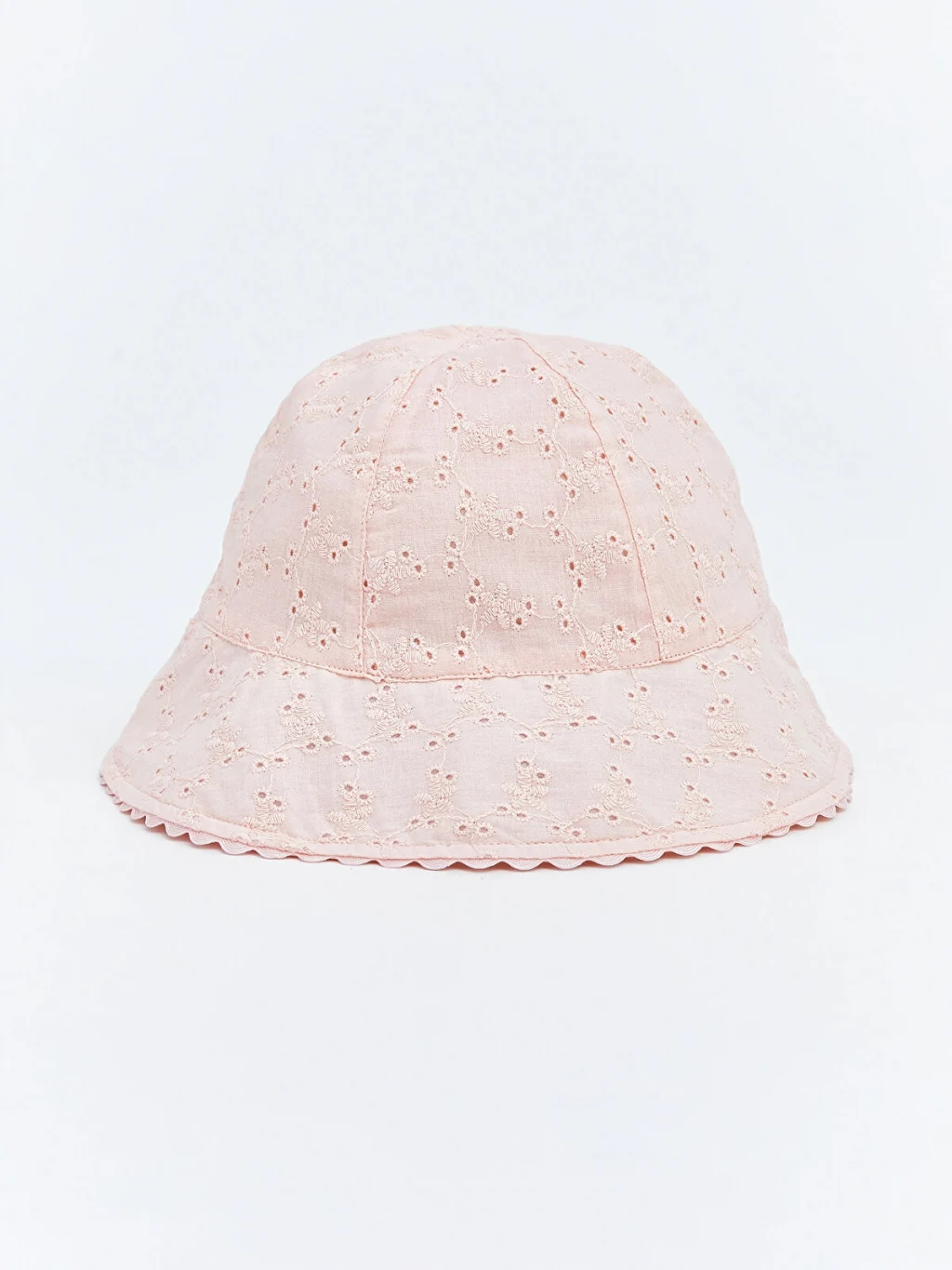 LCW baby Pembe Çiçek Nakışlı Kız Bebek Bucket Şapka
