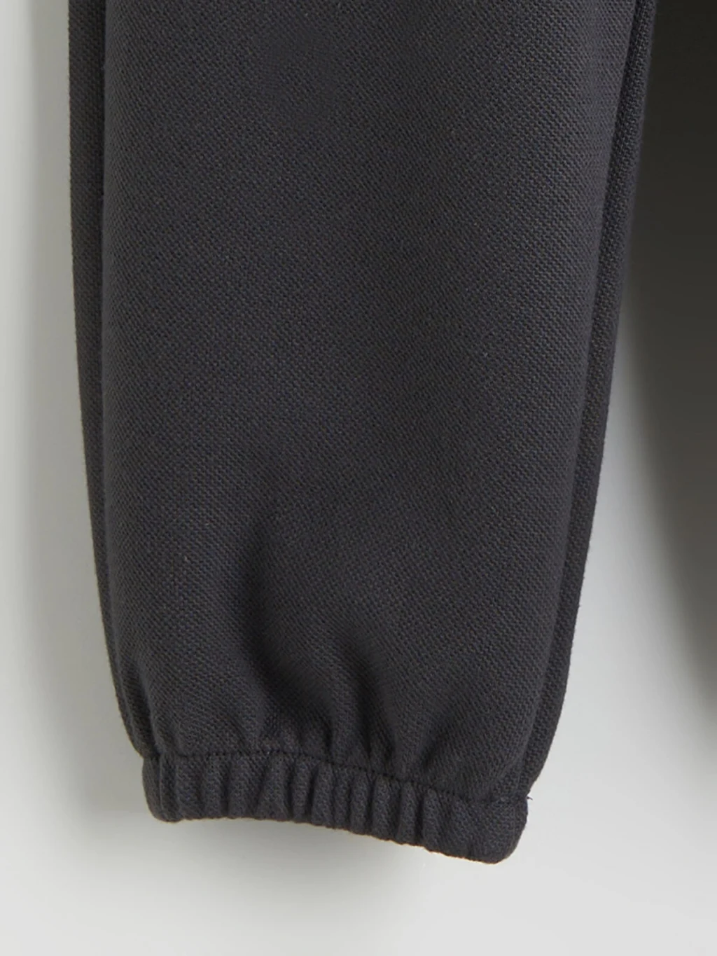 Beli lastikli ve ayarlanabilir bağcıklı erkek çocuk eşofman altı, pike kumaştan üretilmiştir. Önde iki adet cebi bulunur, paçaları lastiklidir.