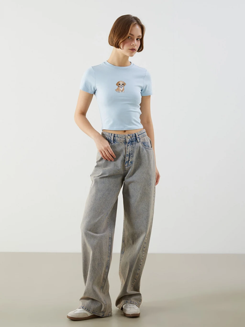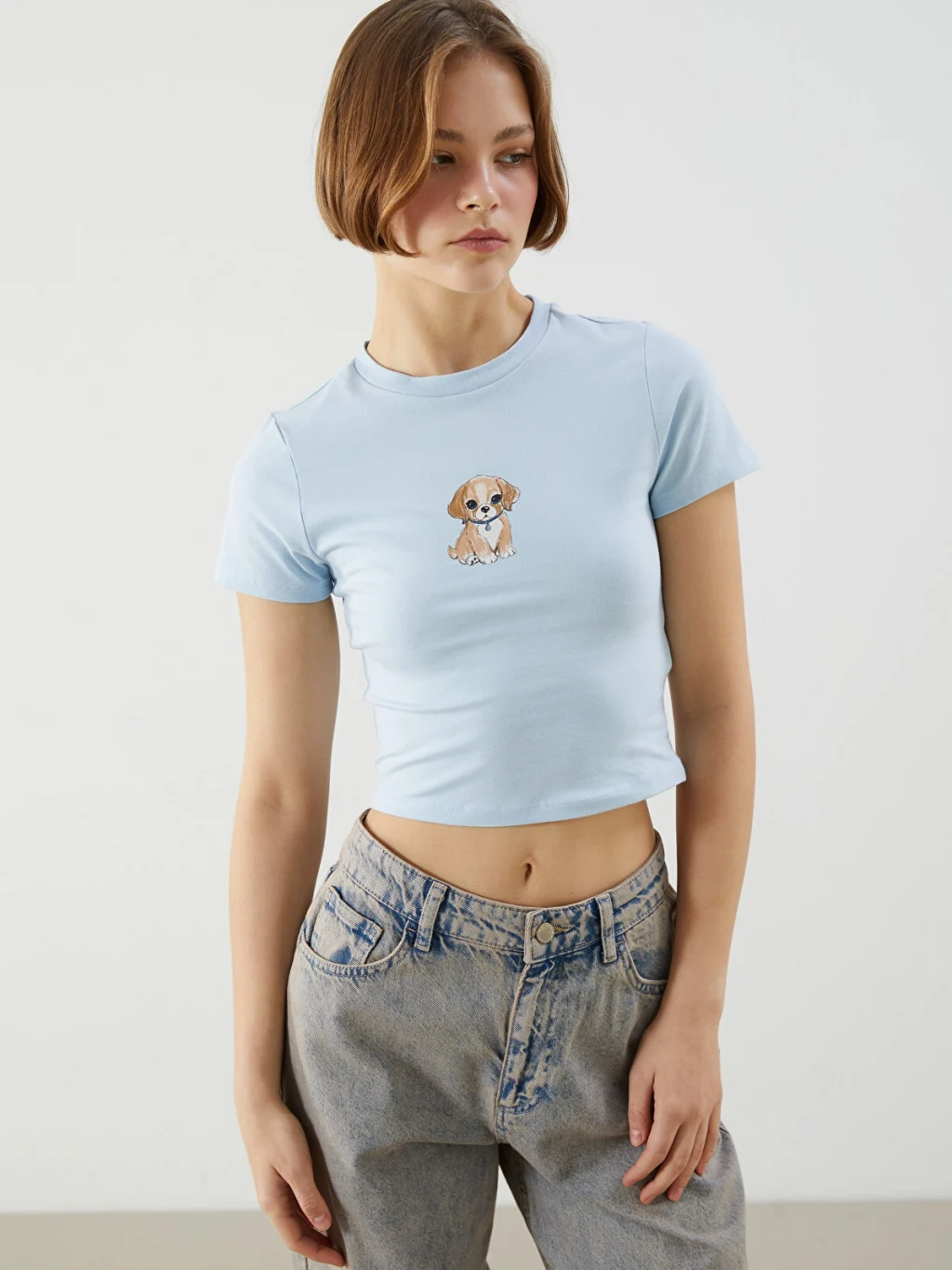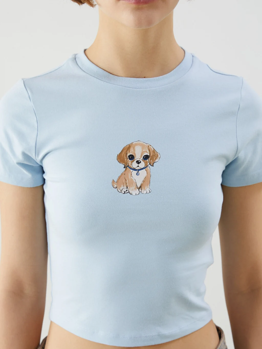 %100 pamuklu kumaştan, ön kısmında baskı detaylı crop.